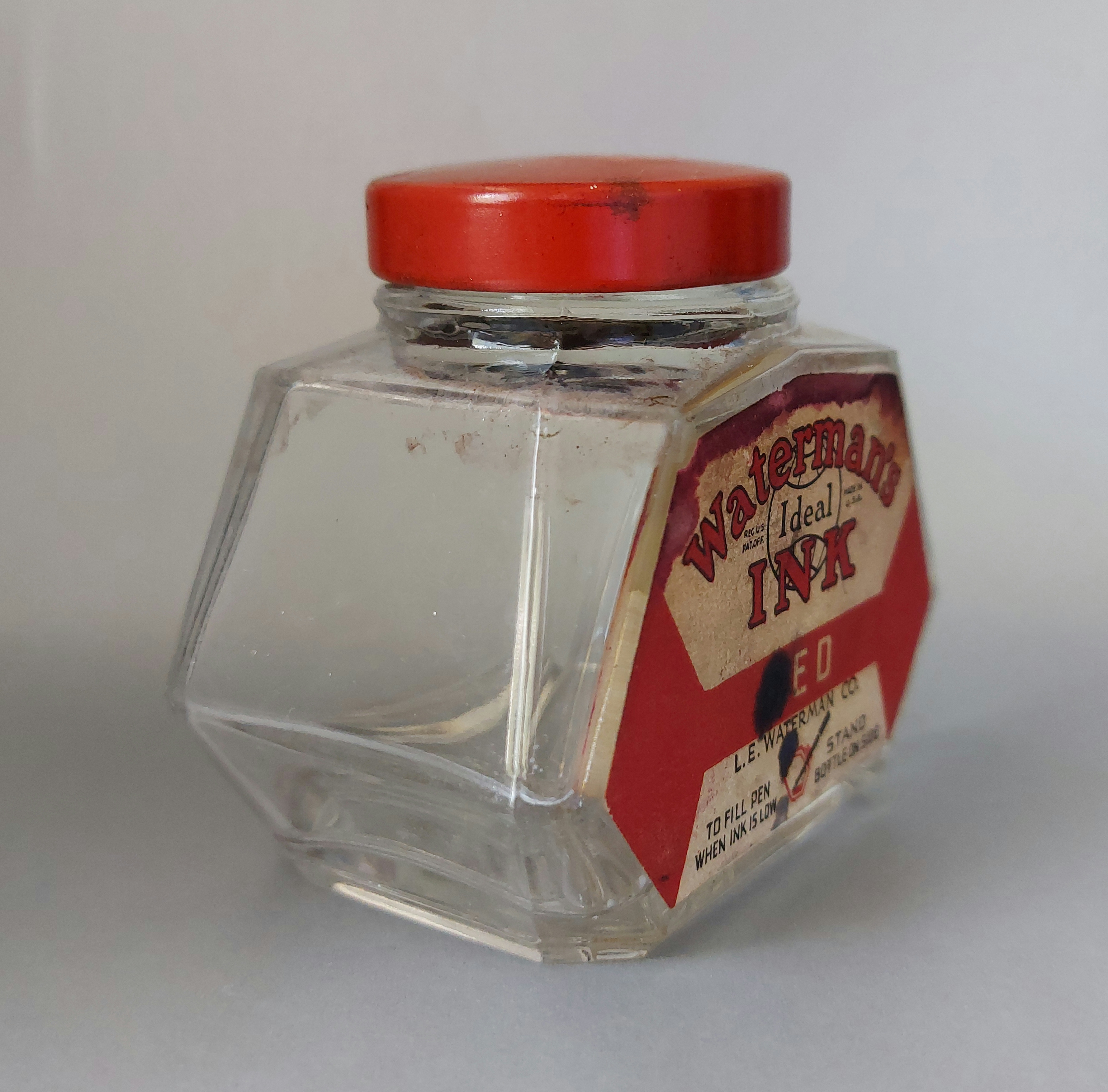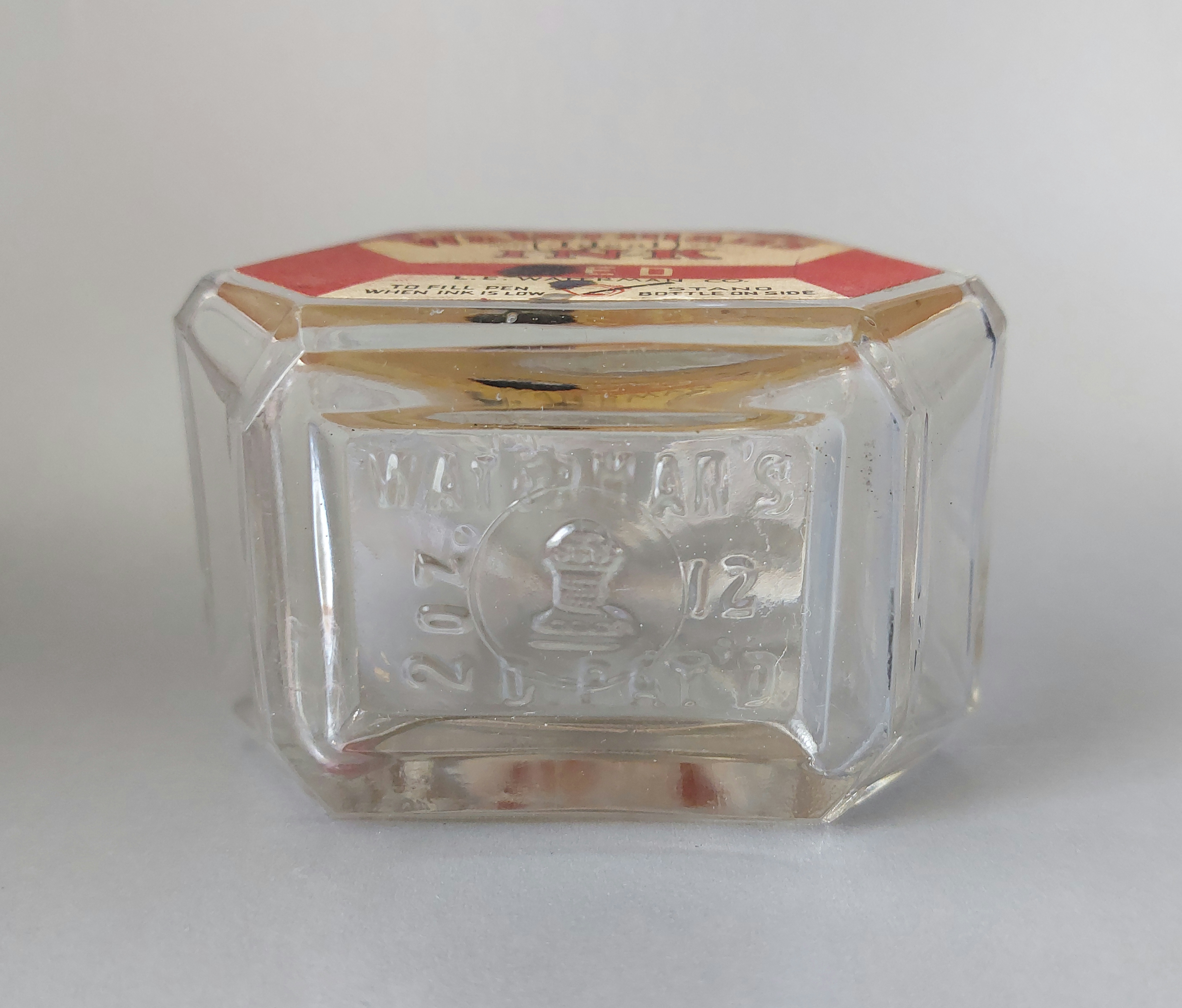 WATERMAN’S “TIP-FILL” bottle, No.572, design di Theodore J. PIAZZOLI (1935), produzione USA, 1936.