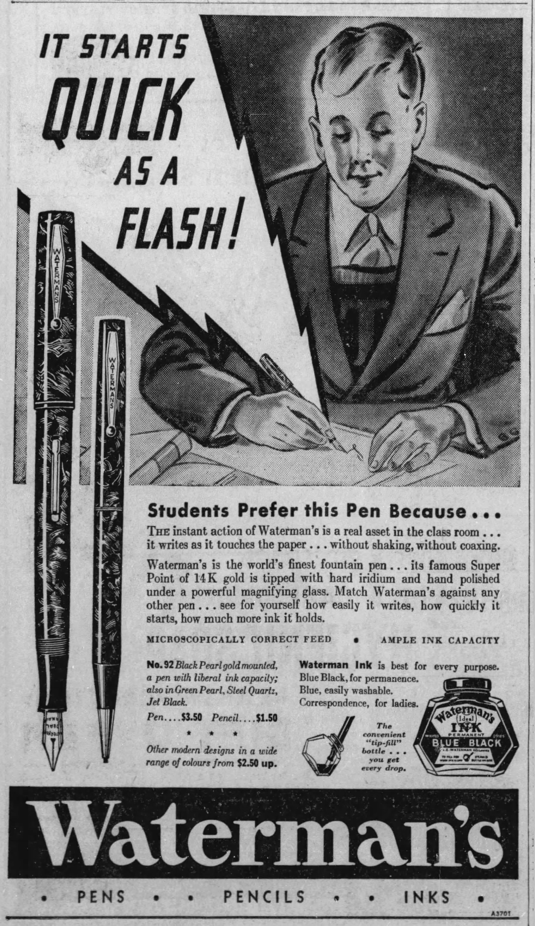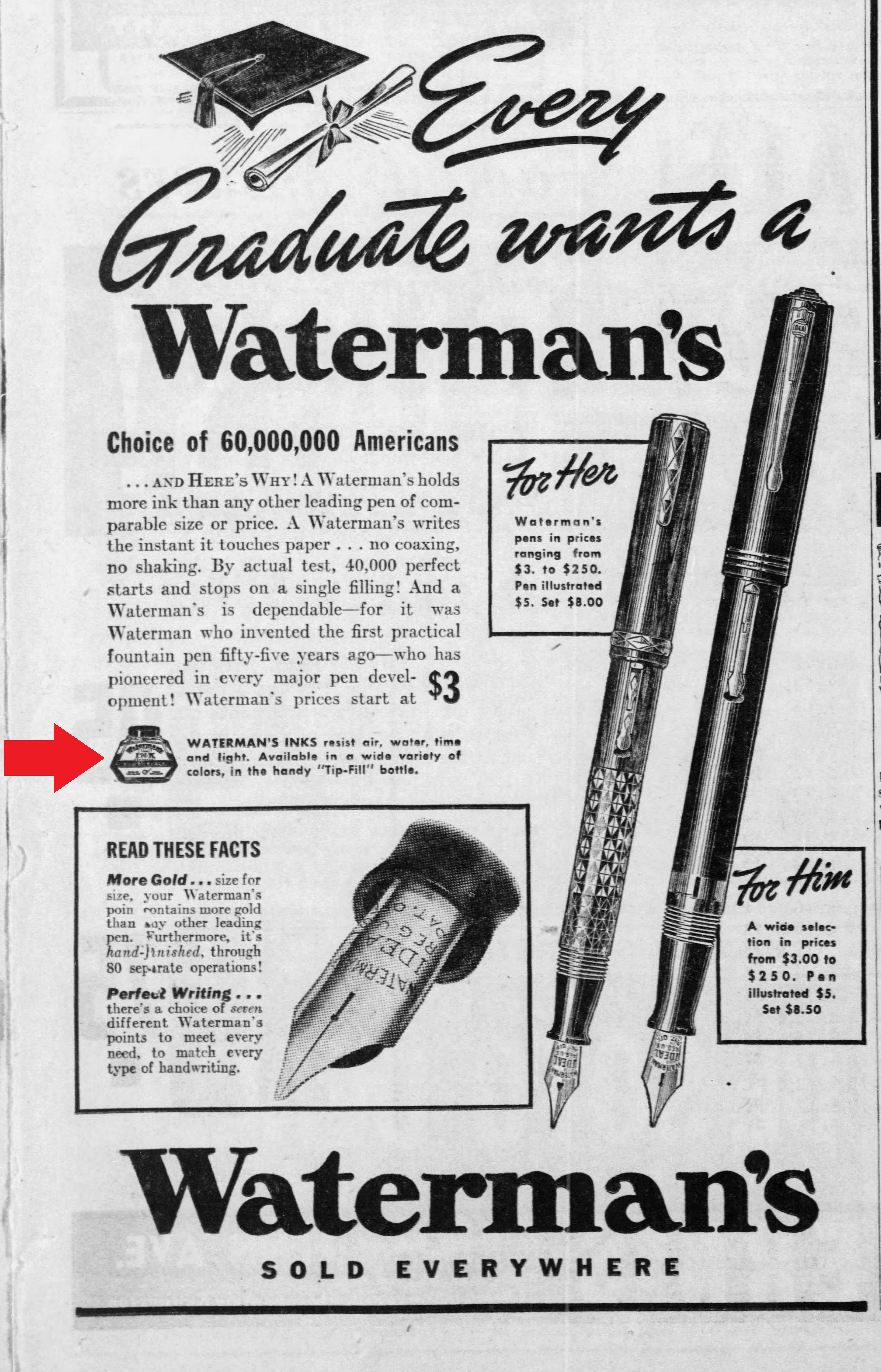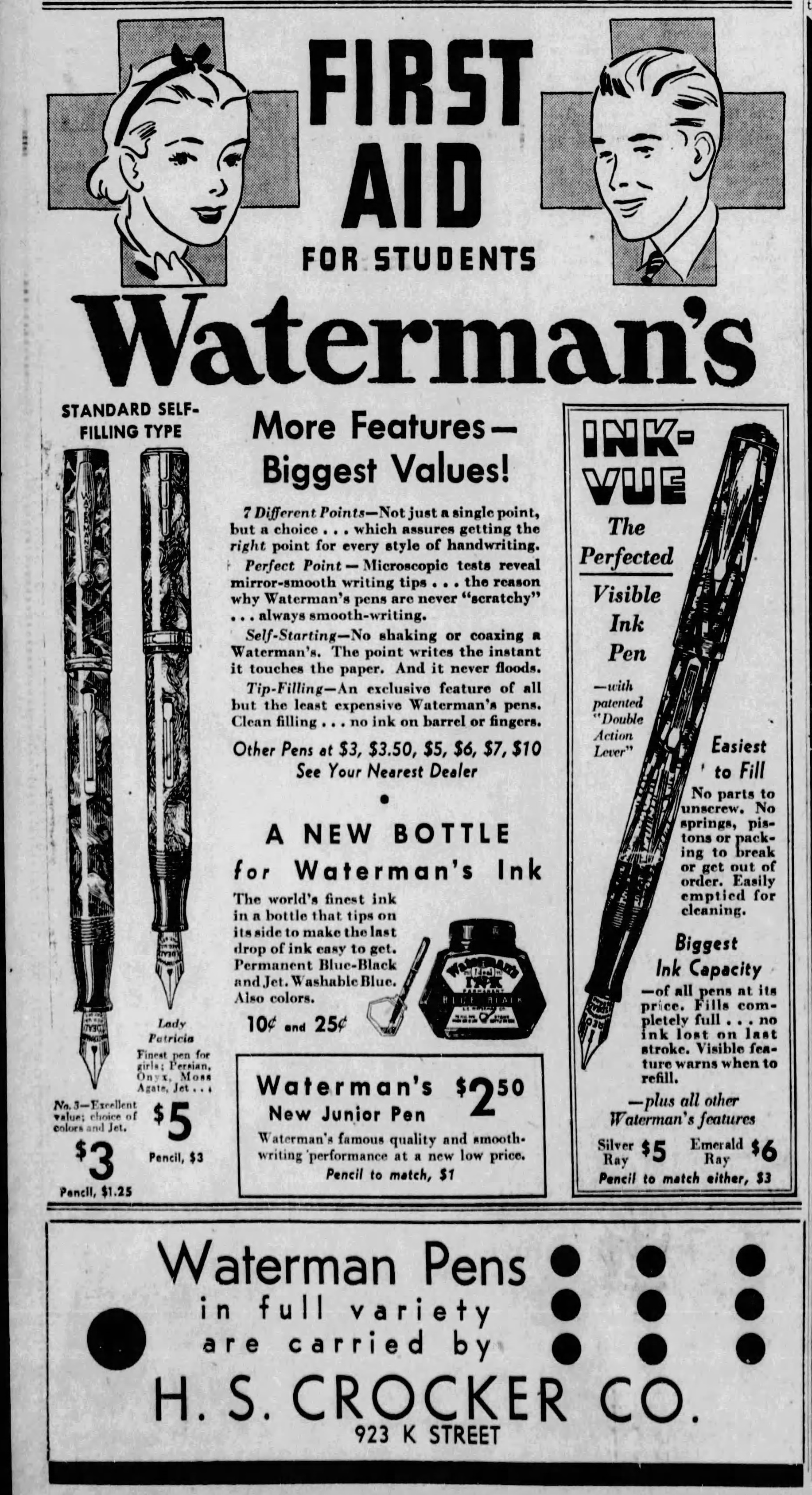 e venduto al prezzo di 10cents di dollaro a flacone, risultando così il più economico del gruppo dei “nuovi” calamai. The_Sacramento_Bee_Mon__Aug_24__1936