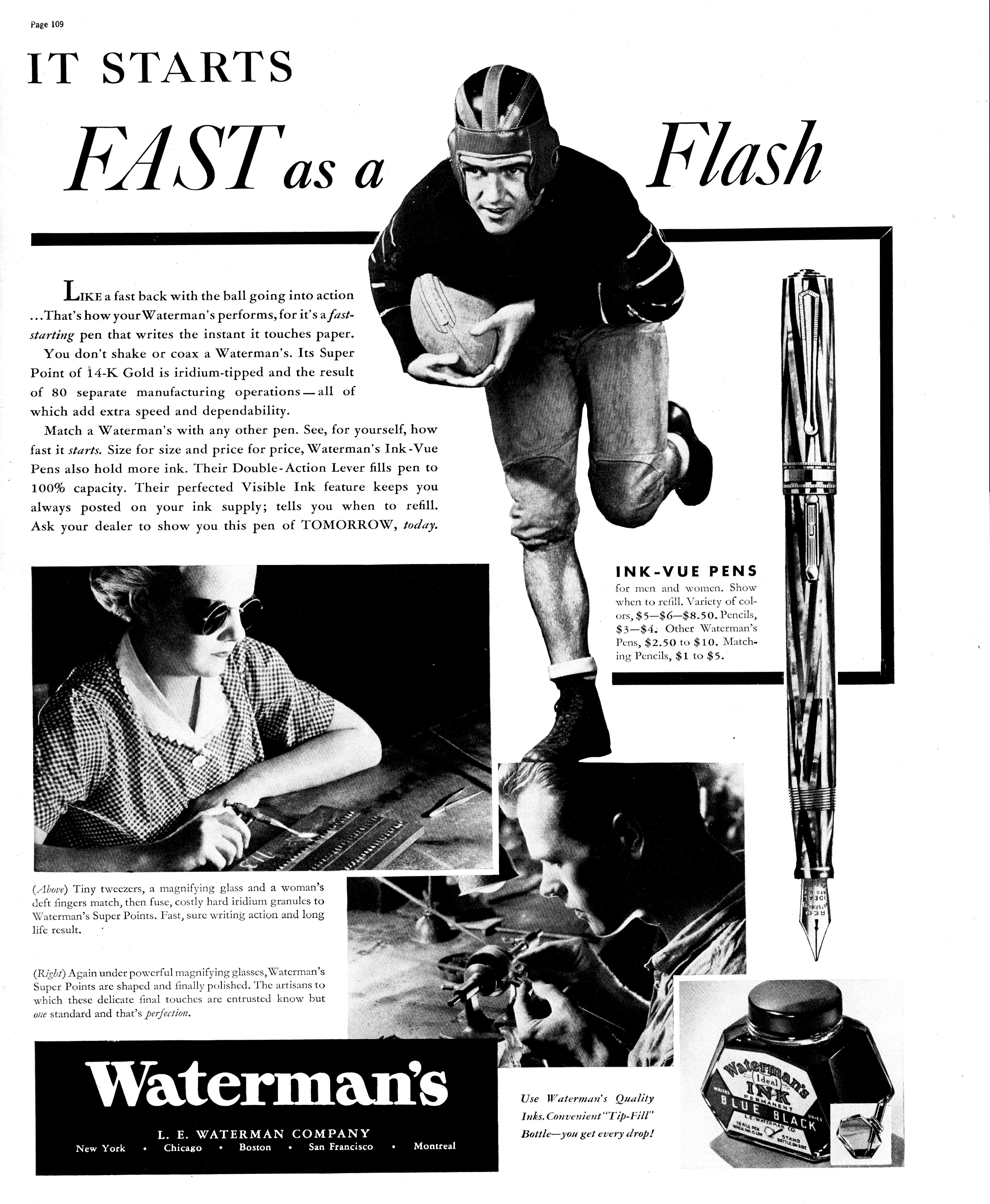 I) Lo stato dell’arte dei calamai Waterman’s negli USA nell’anno 1936