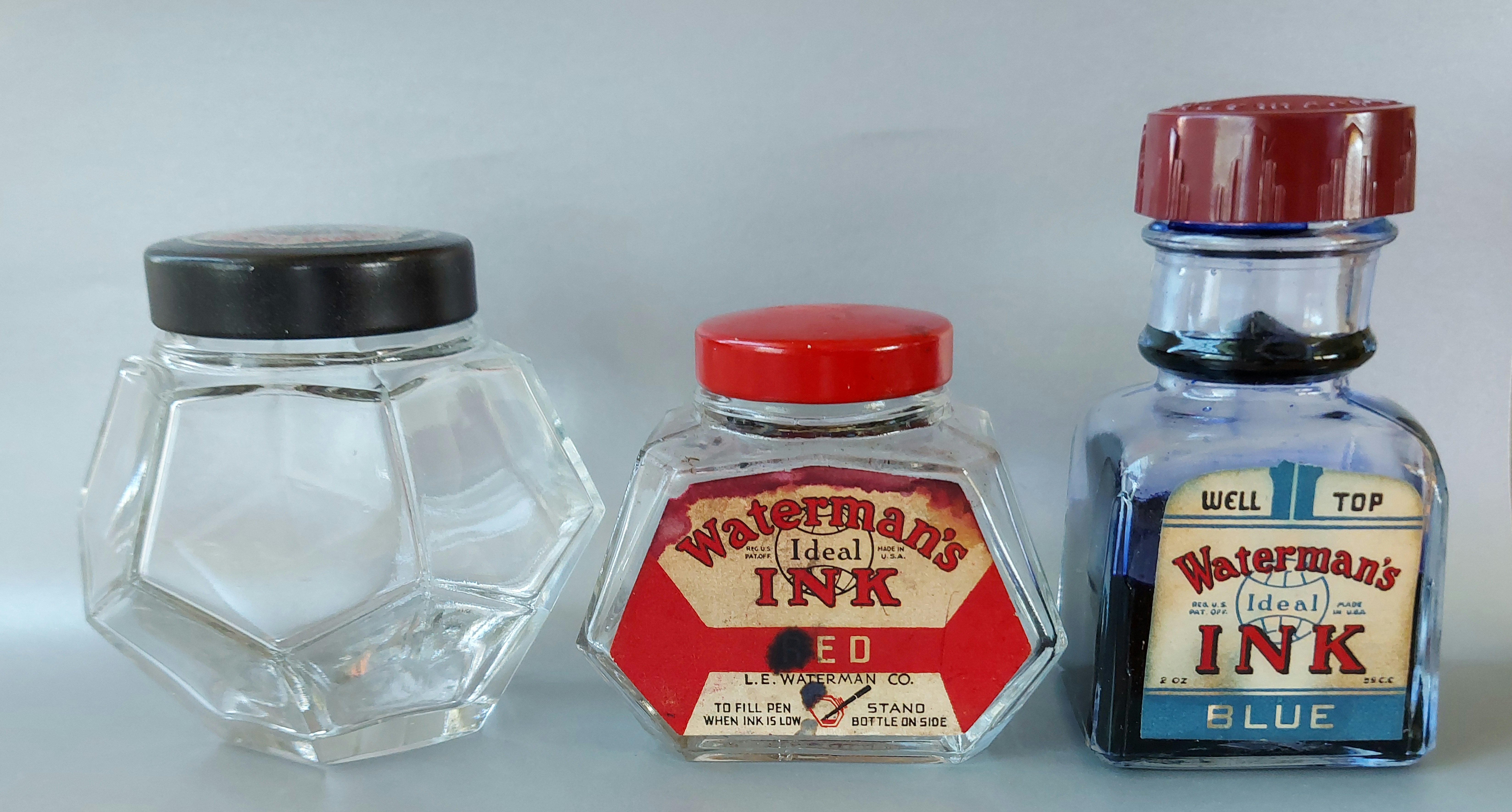 Ad essa ho voluto aggiungere una a mio avviso indispensabile se pur breve trattazione della bottiglia francese che è la diretta progenitrice delle boccette Waterman che tutti abbiamo in casa oggi.