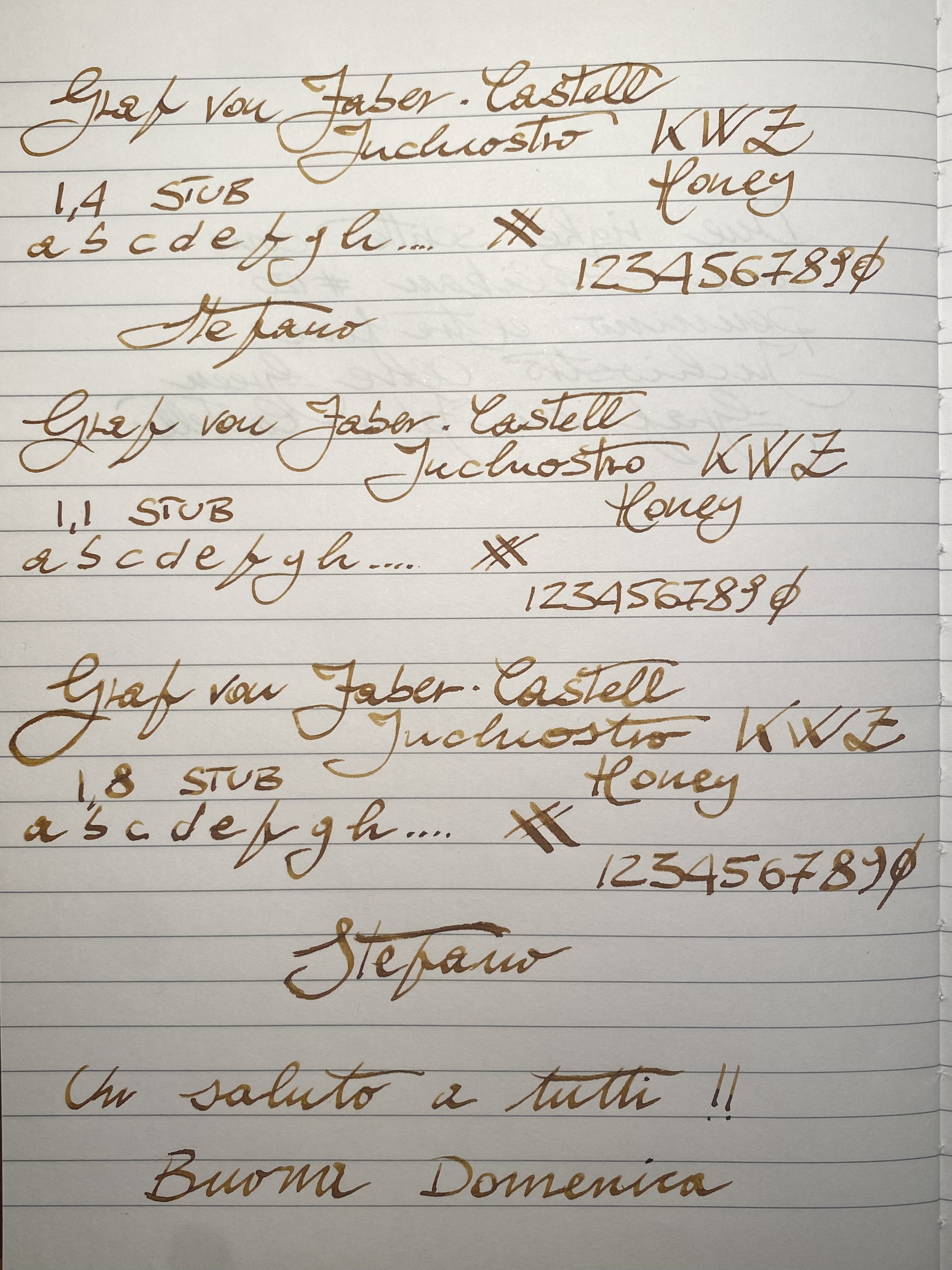 Il jowo 1,1 #6 in questo caso nella versione marchiata s&s è il più largo tra gli 1,1 ed è quello più abbondante come flusso, lascia parecchio inchiostro nella parte curva delle lettere e ha un leggero feedback.
