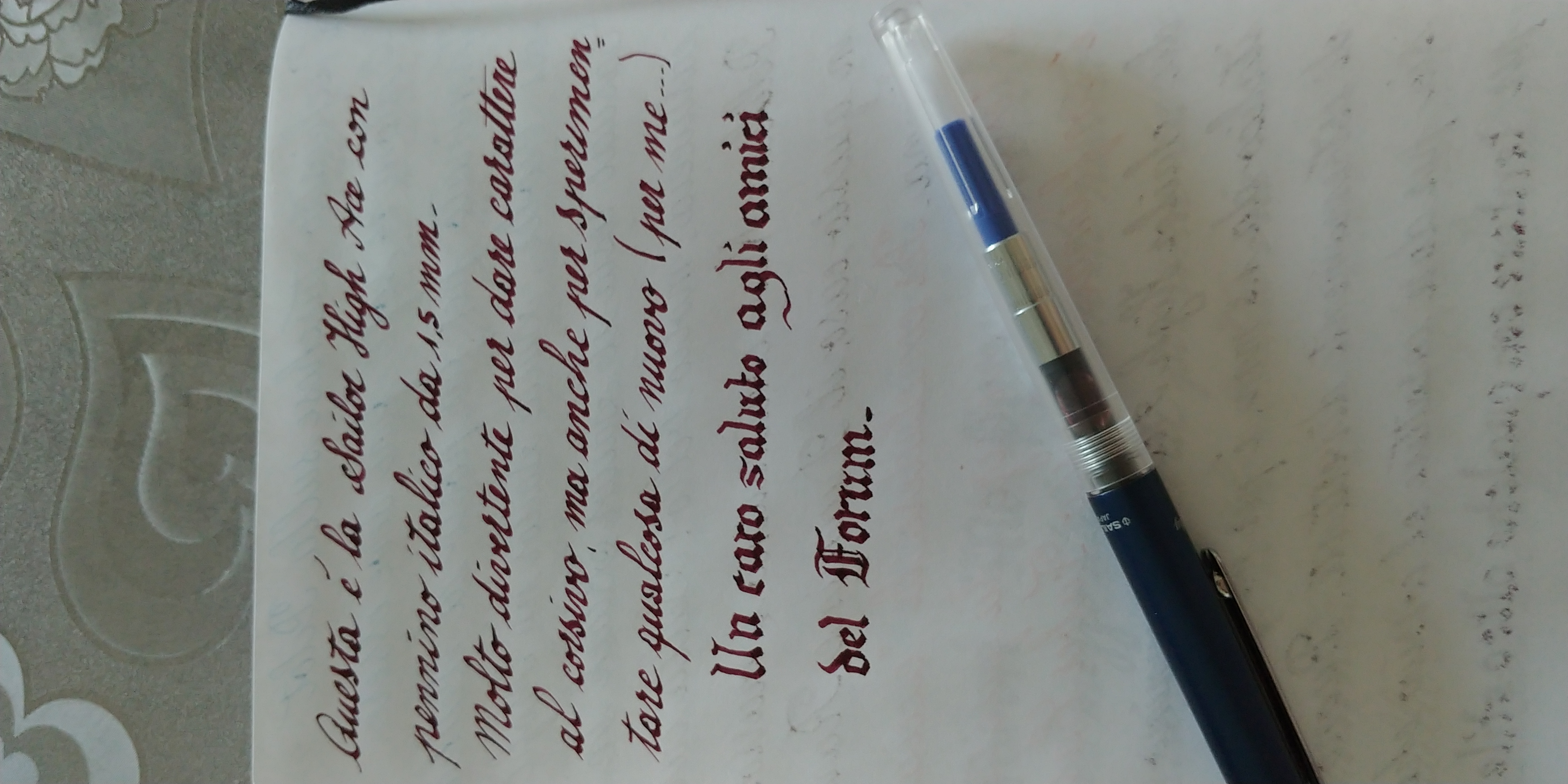Twsbi 1,1: un pennino jowo ma di misura #5, molto più garbato del #6 di cui sopra. Flusso regolare, bella variazione di tratto, non rigido, piacevole da usare, da subito confidenza.