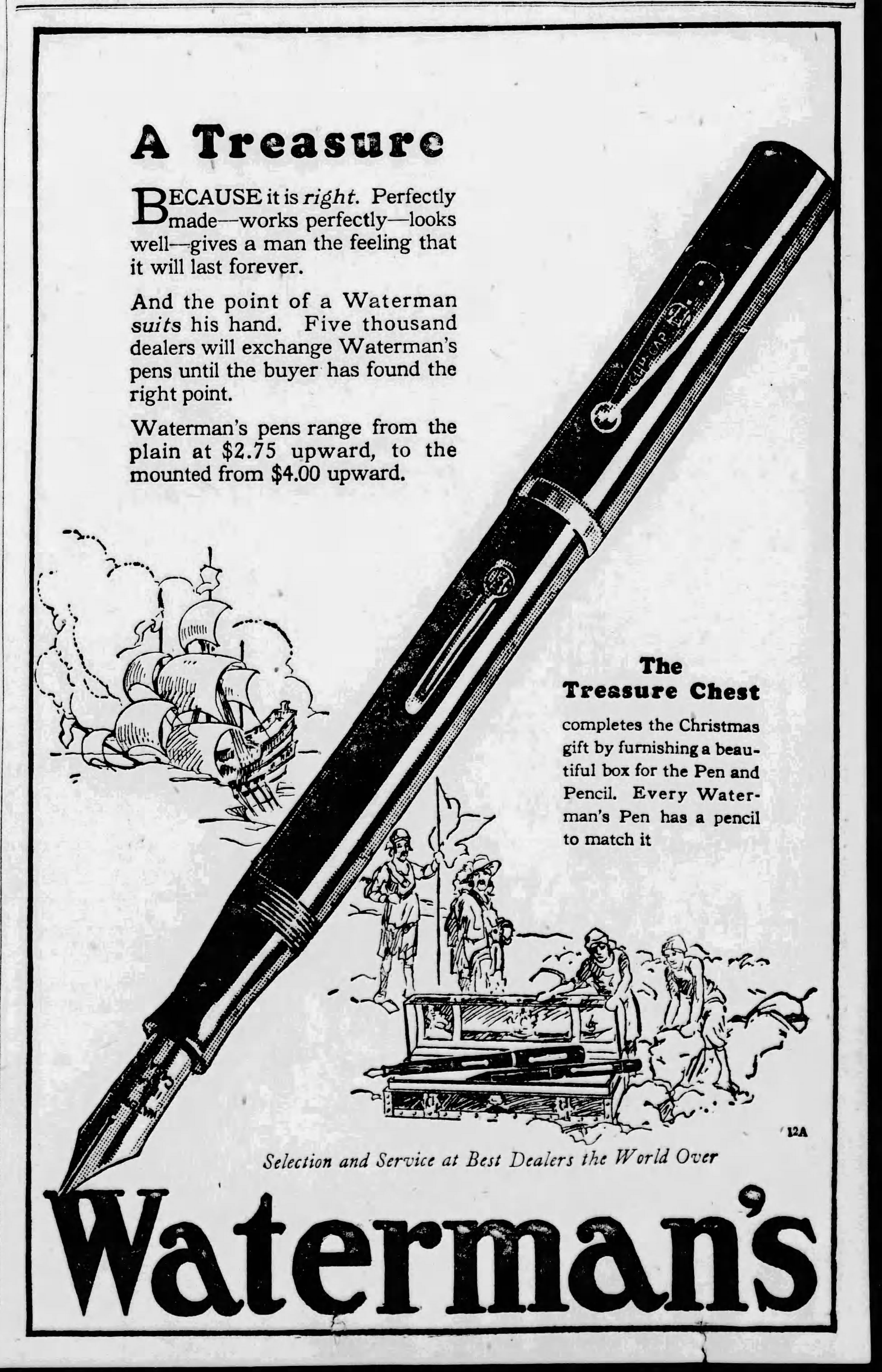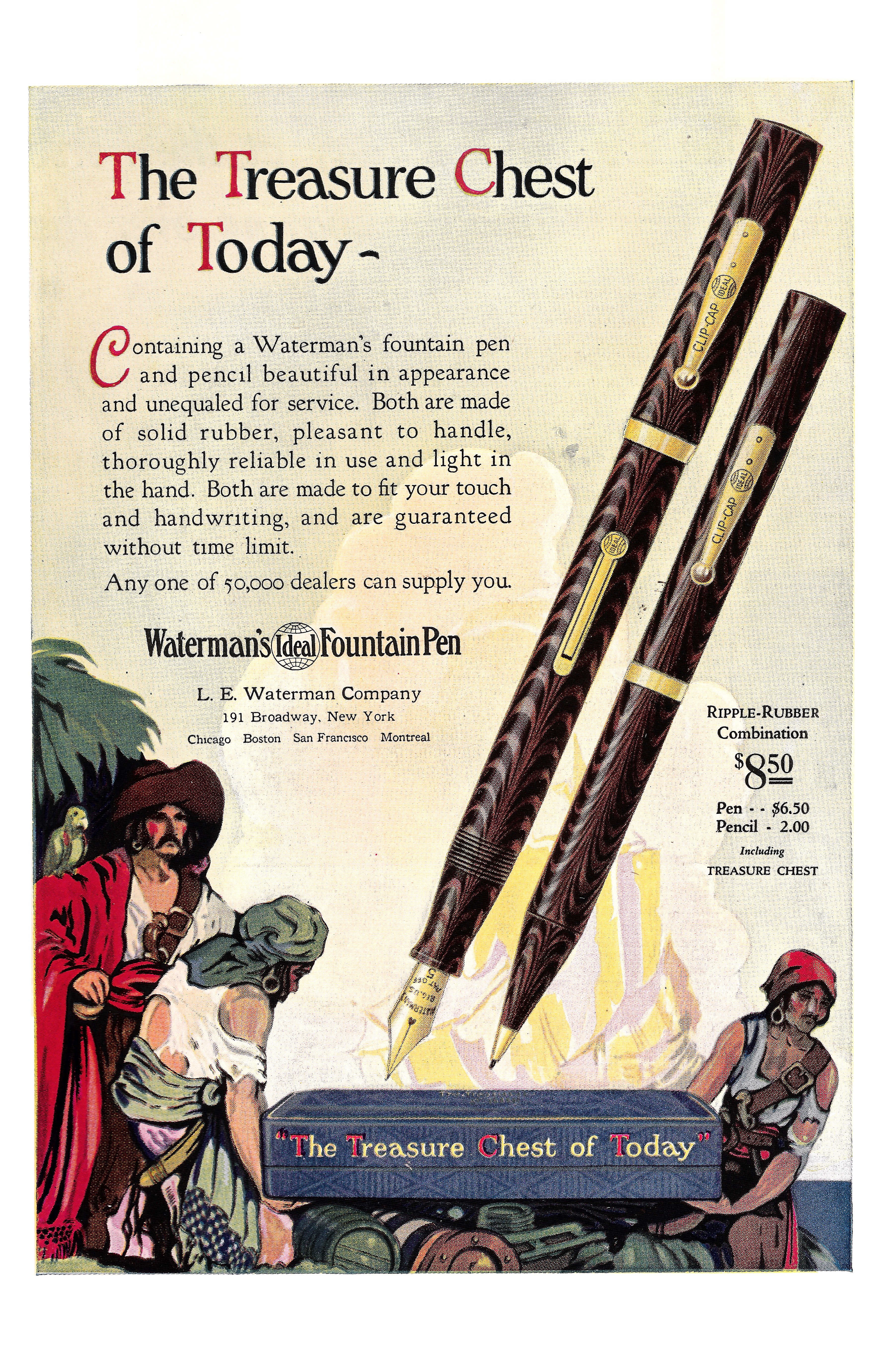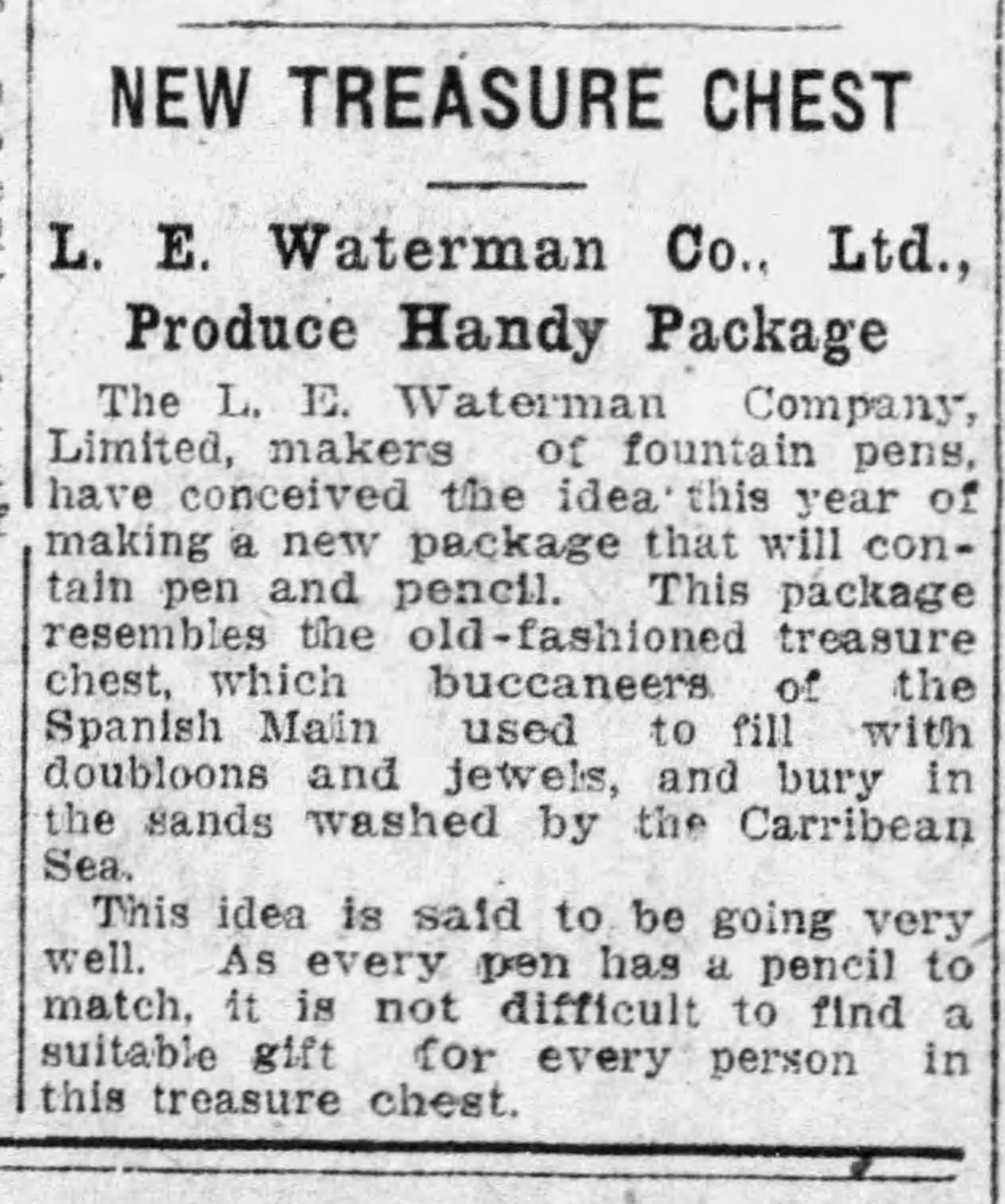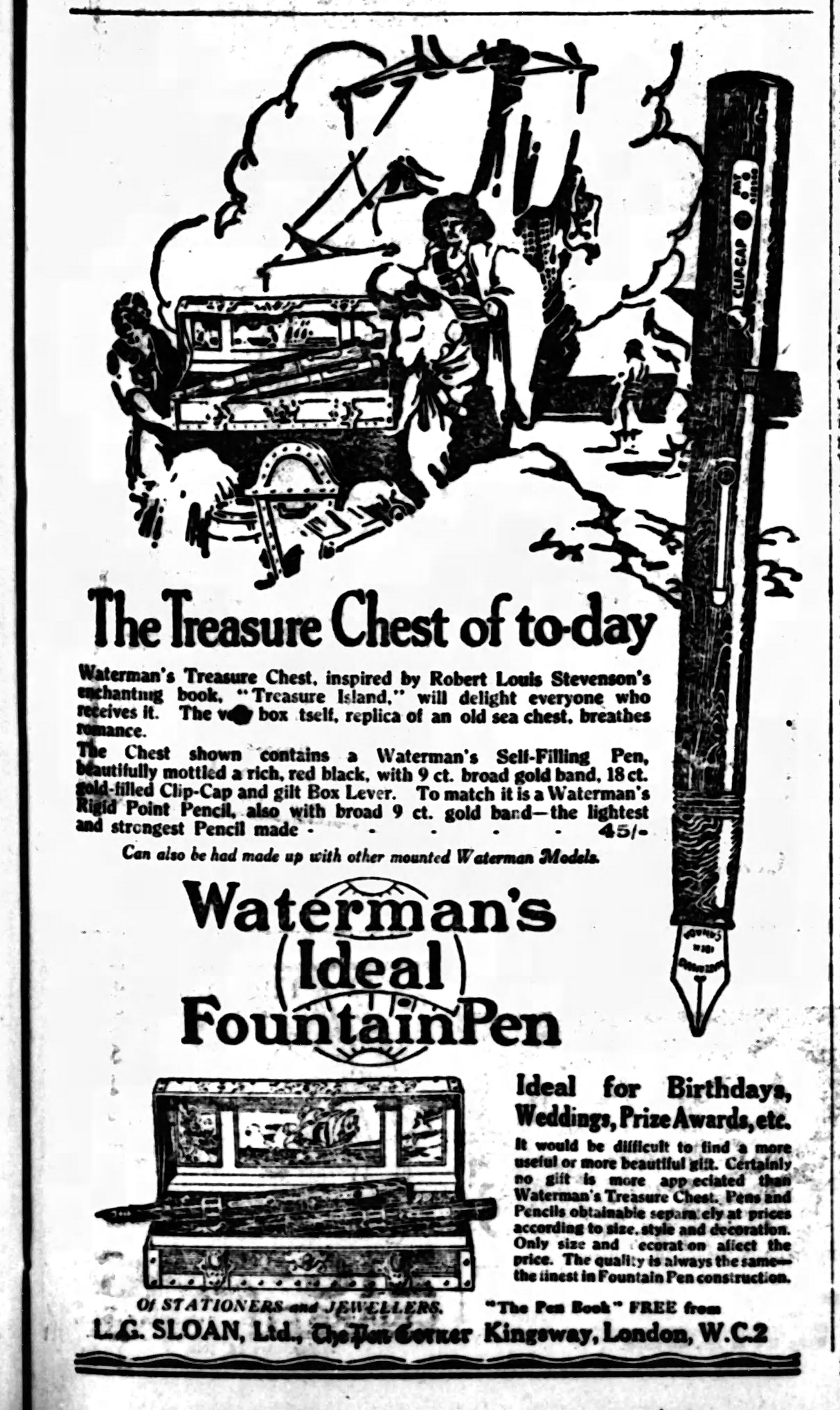 Il disegno esterno della cassa non è “realistico”, bensì realizzato nello stile delle tavole che corredavano le edizioni dei romanzi d’avventura di ambientazione piratesca, da cui l’idea di questo contenitore trae ispirazione. “Treasure Island” (L’isola del tesoro, prima edizione 1883) è il titolo del capolavoro di Robert Louis Stevenson e “Treasure Chest” (La cassa del tesoro) è il nome commerciale della scatola portapenne.