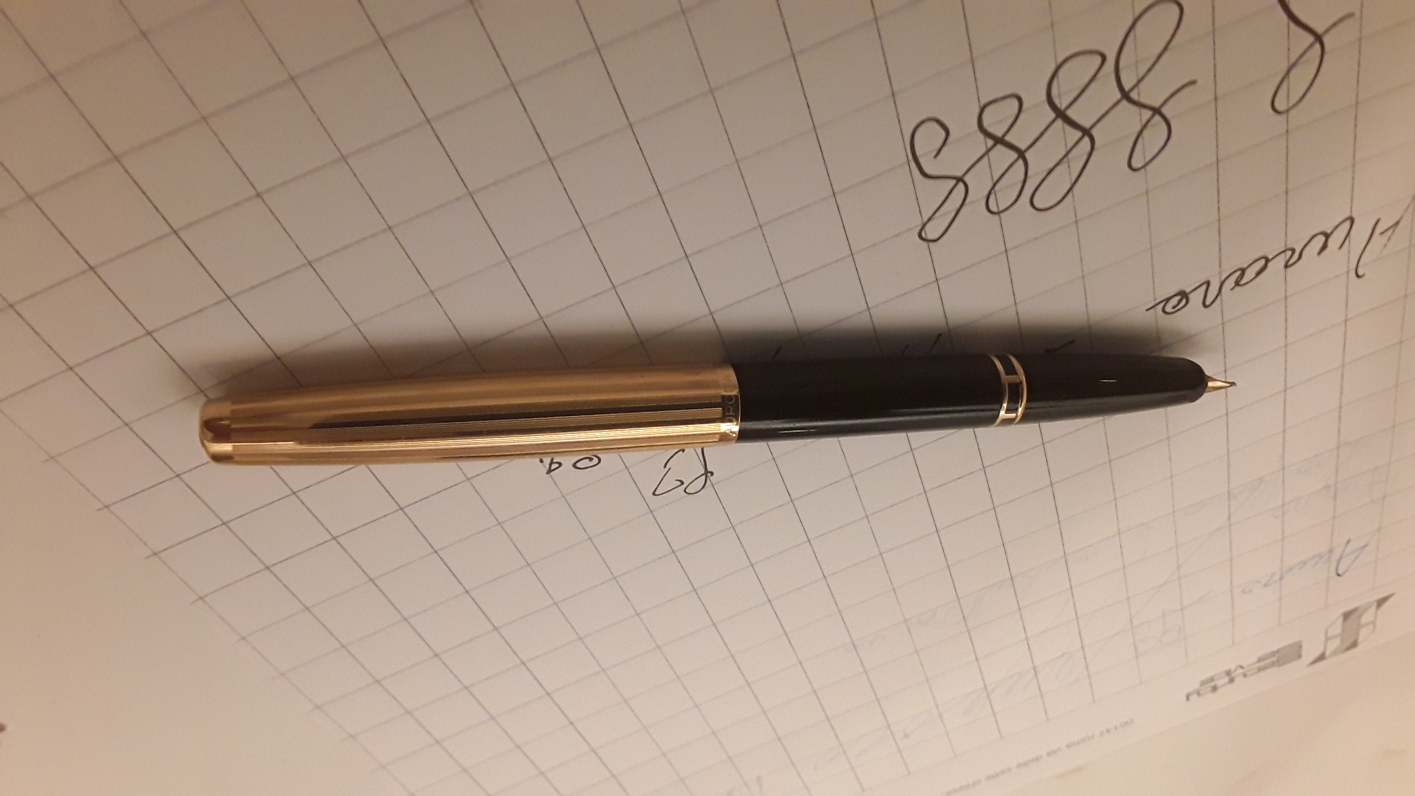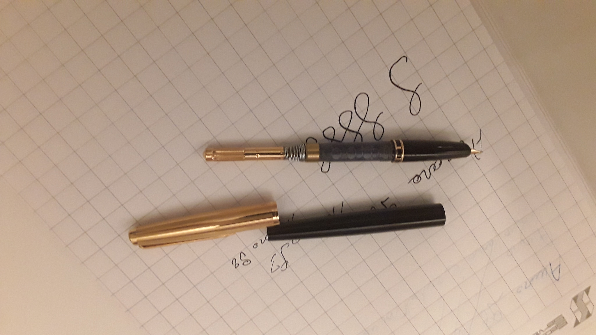 Anche la mia tutta dorata, decorazione millerighe... E va che è una meraviglia col suo pennino F. Ottima penna, secondo me.