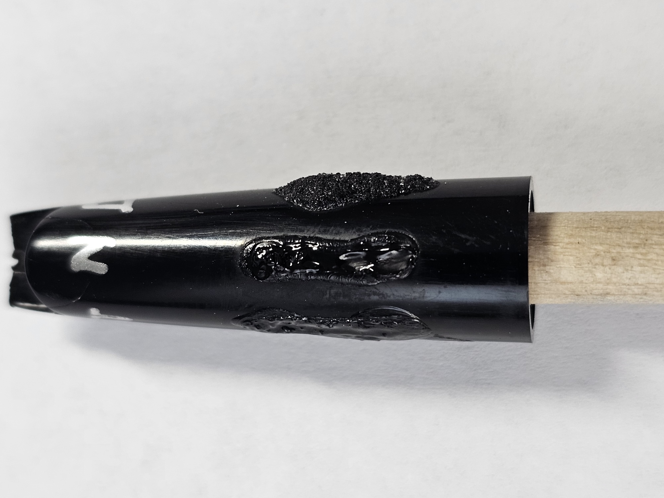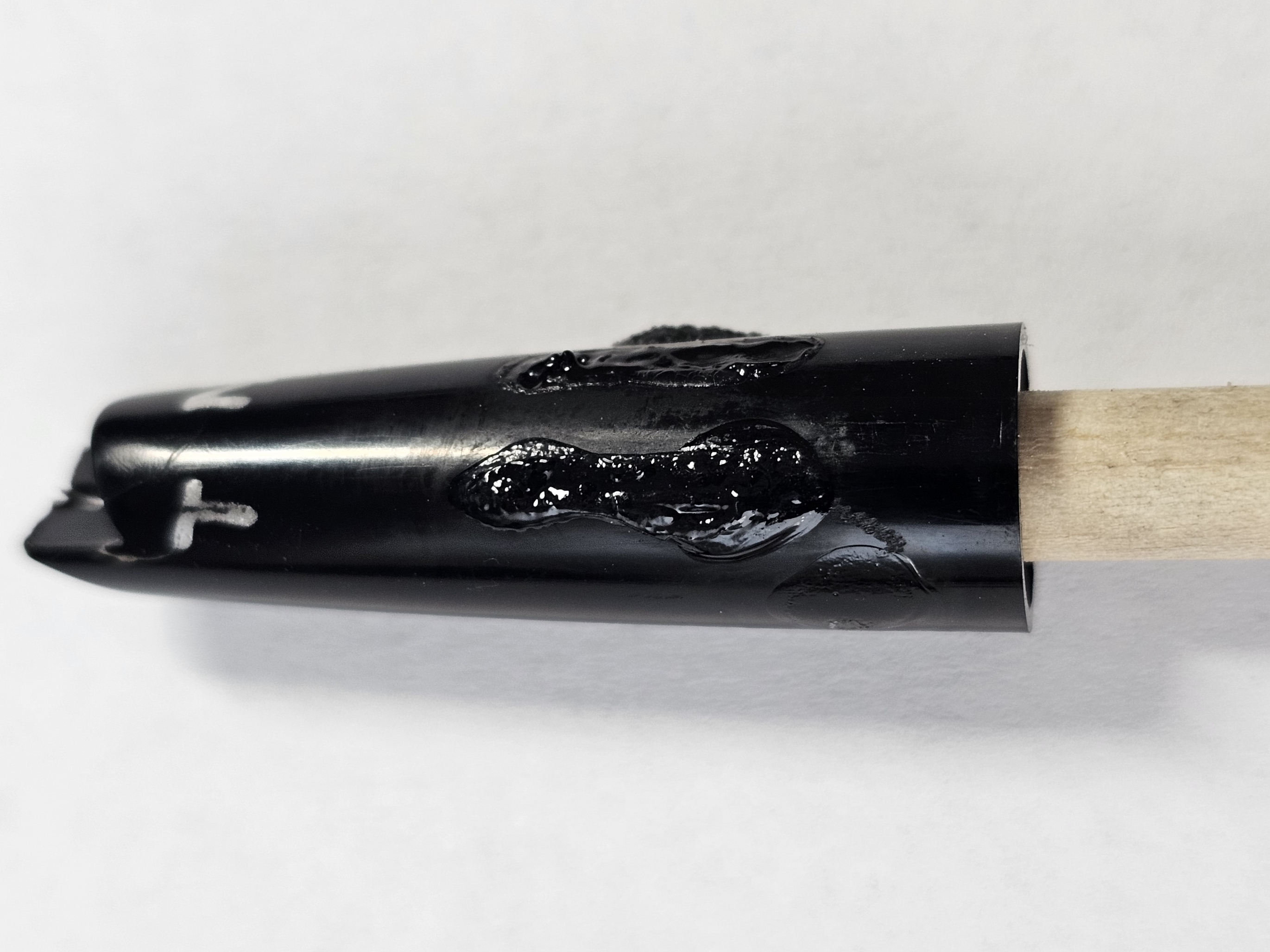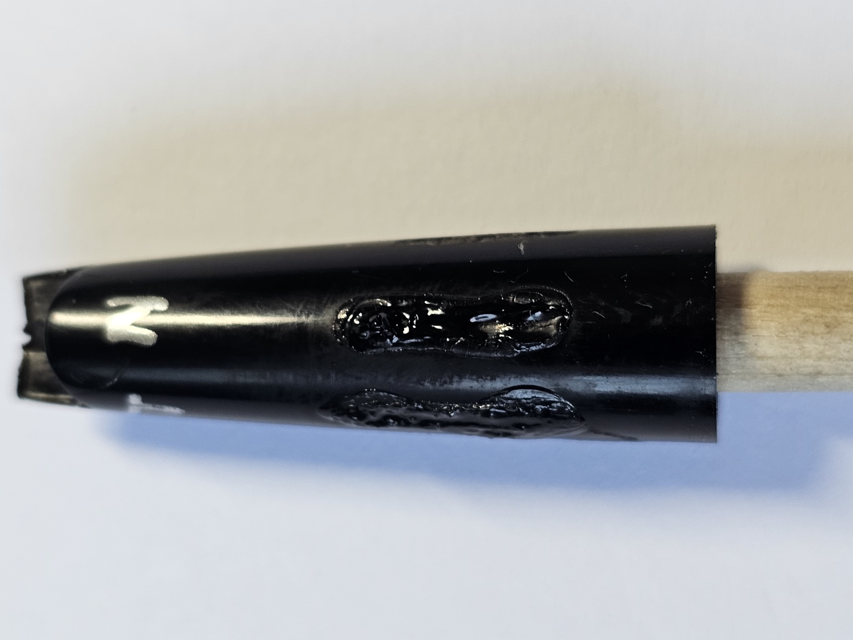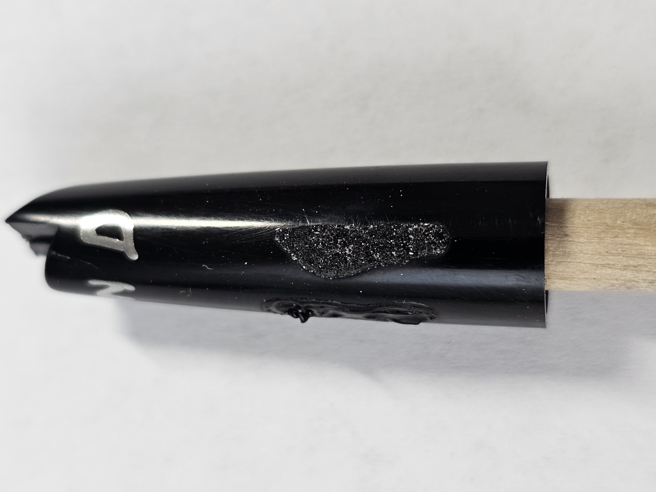 Sono stati effettuati tre solchi su di un puntale Montblanc e su ciascuno si essi è stato depositato del cianoacrilato.