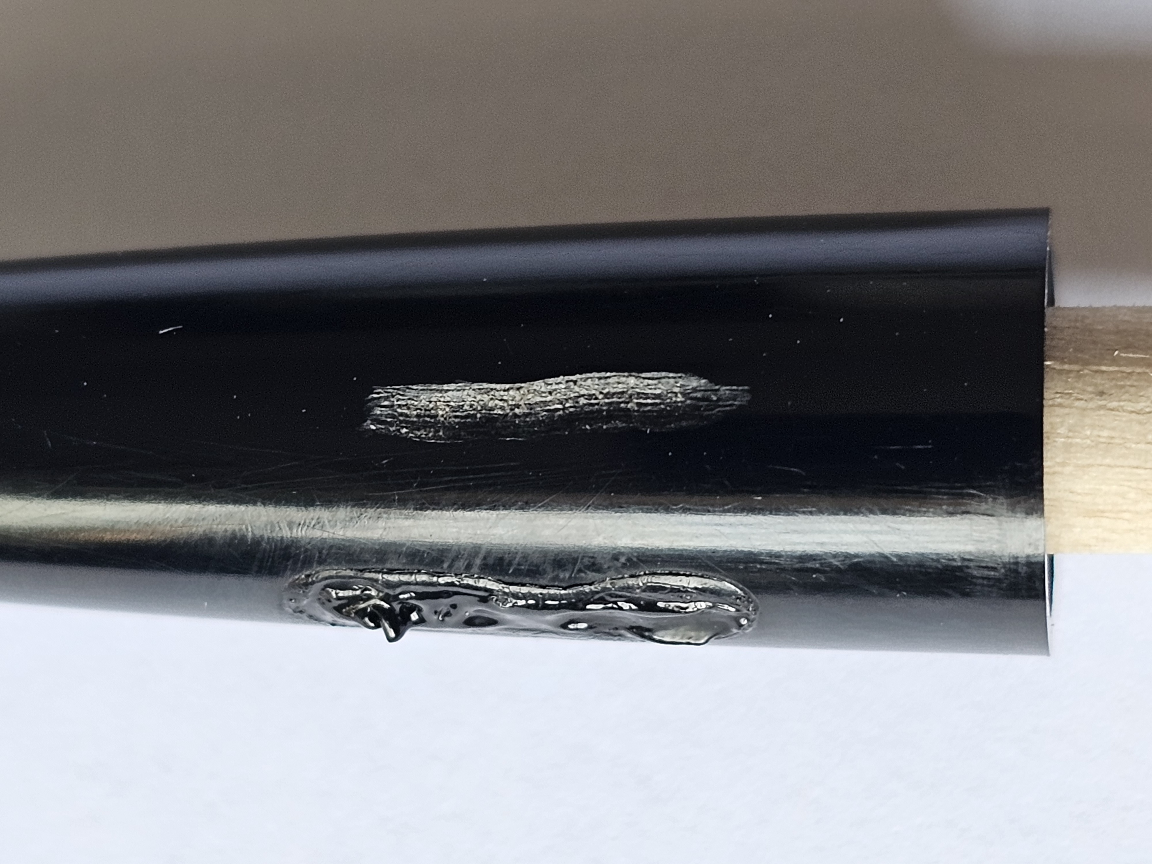 si nota ancora un lieve ricalo di materiale. Avrebbe avuto bisogno di un'altra addizione di colla e altro tempo di asciugatura,