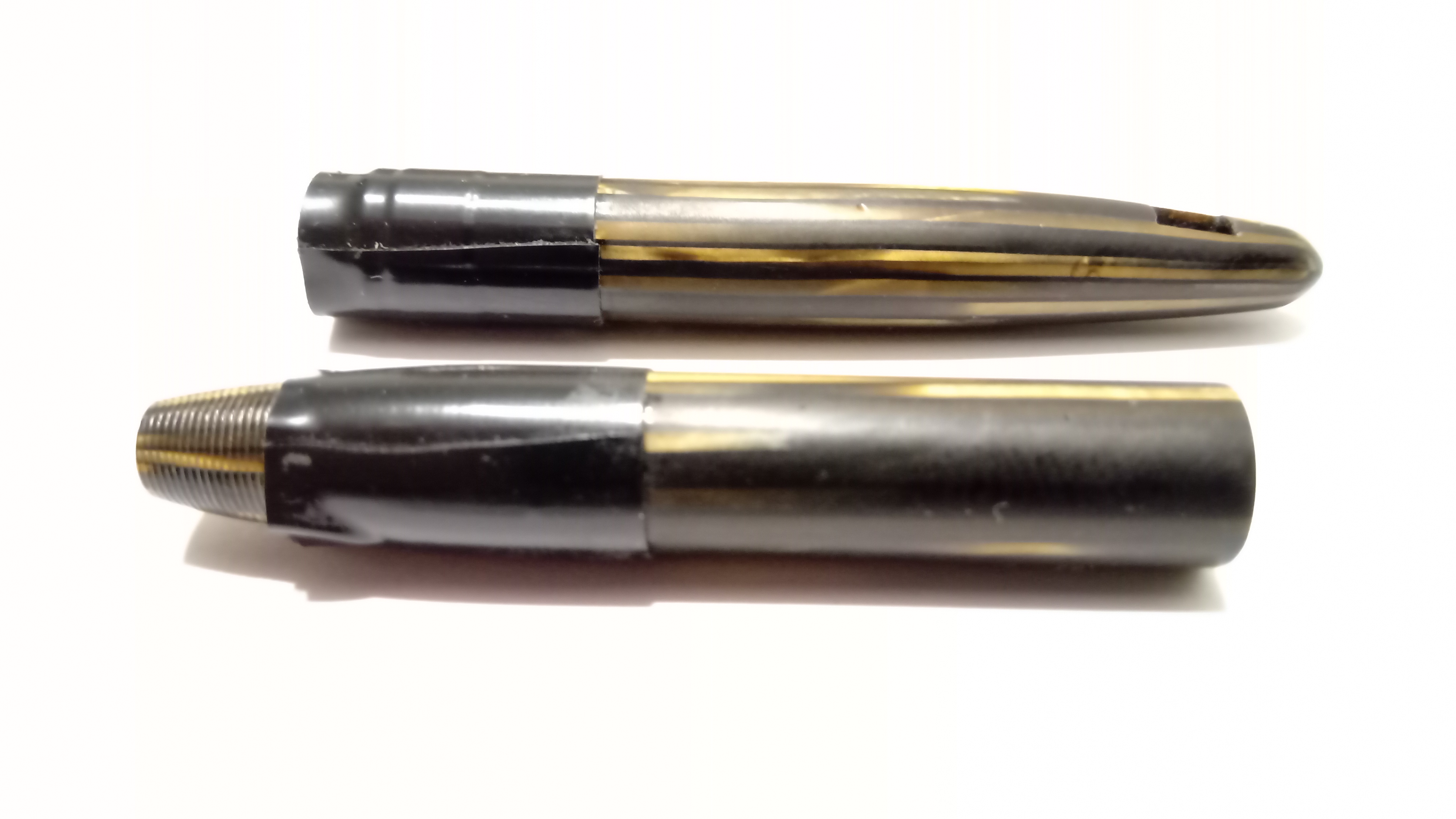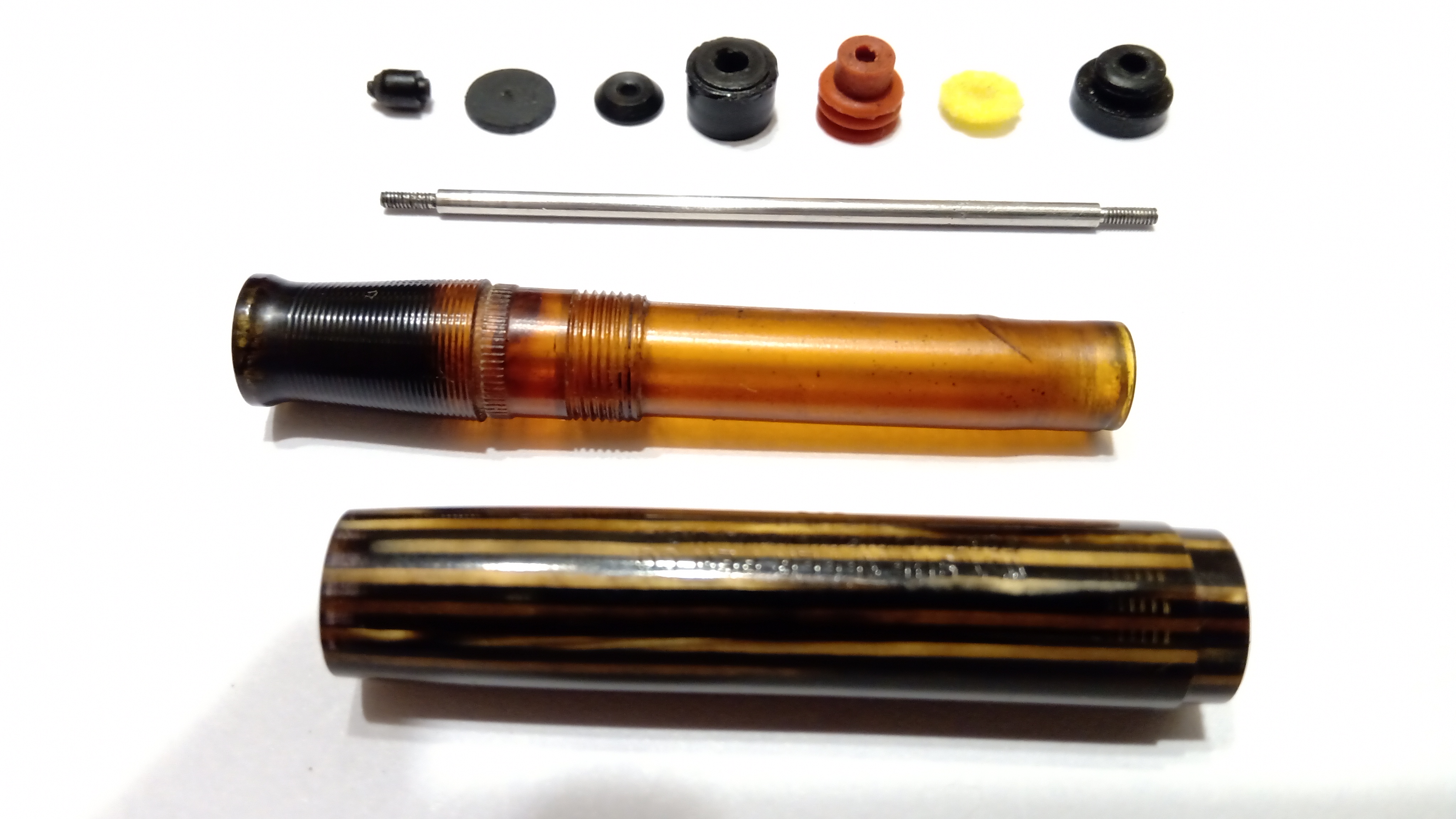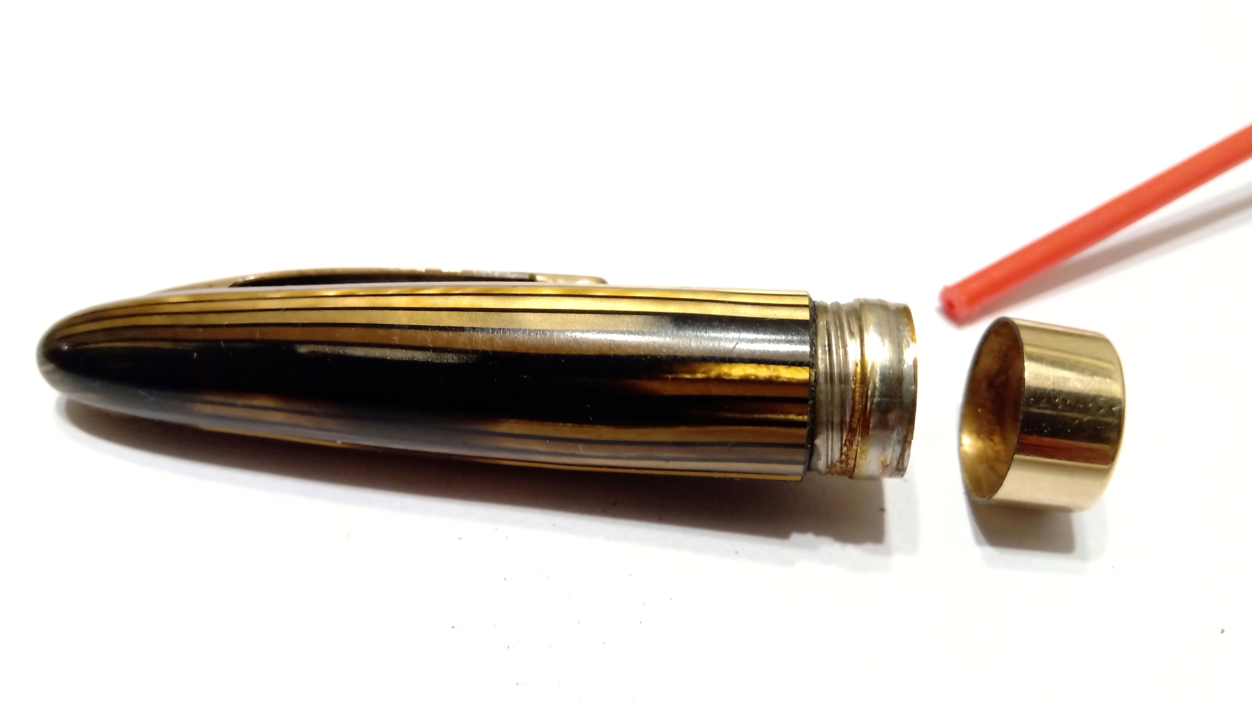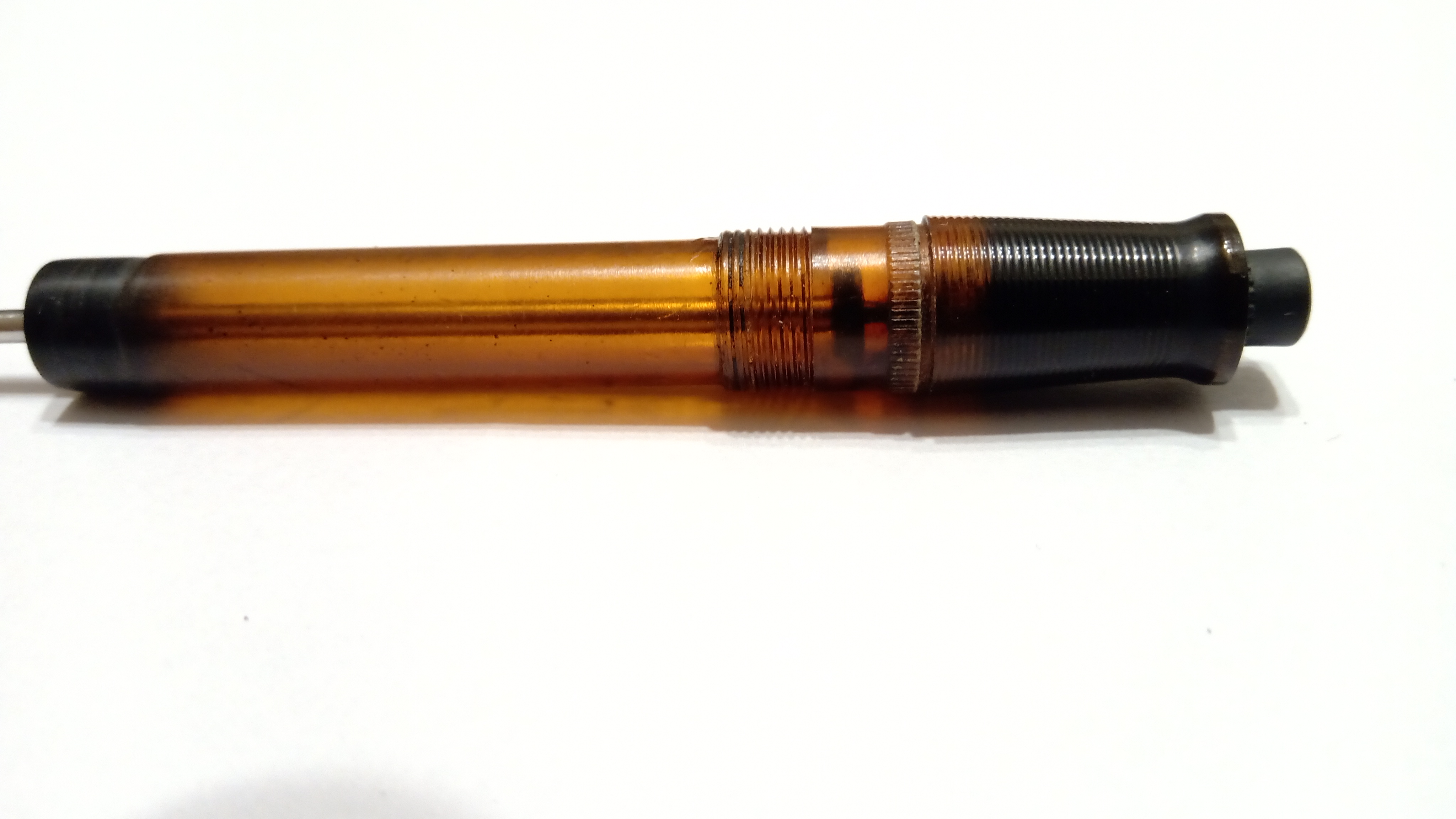 La cosa interessante di questo modello che mi sono dedicato a restaurare, a differenza degli altri, è che invece di avere un corpo o canna trasparente, è stato realizzato con un manicotto interno che entra all'interno della canna. Indagando un po' di più, ho scoperto che secondo gli studiosi in materia, esistono due generazioni di stilografiche sottovuoto, una prima generazione, con il fusto trasparente, e una seconda generazione con un manicotto interno che sembra essere stato realizzato in dal 1947 al 1948, per essere successivamente sostituito dal sistema di riempimento TouchDown nel 1949.