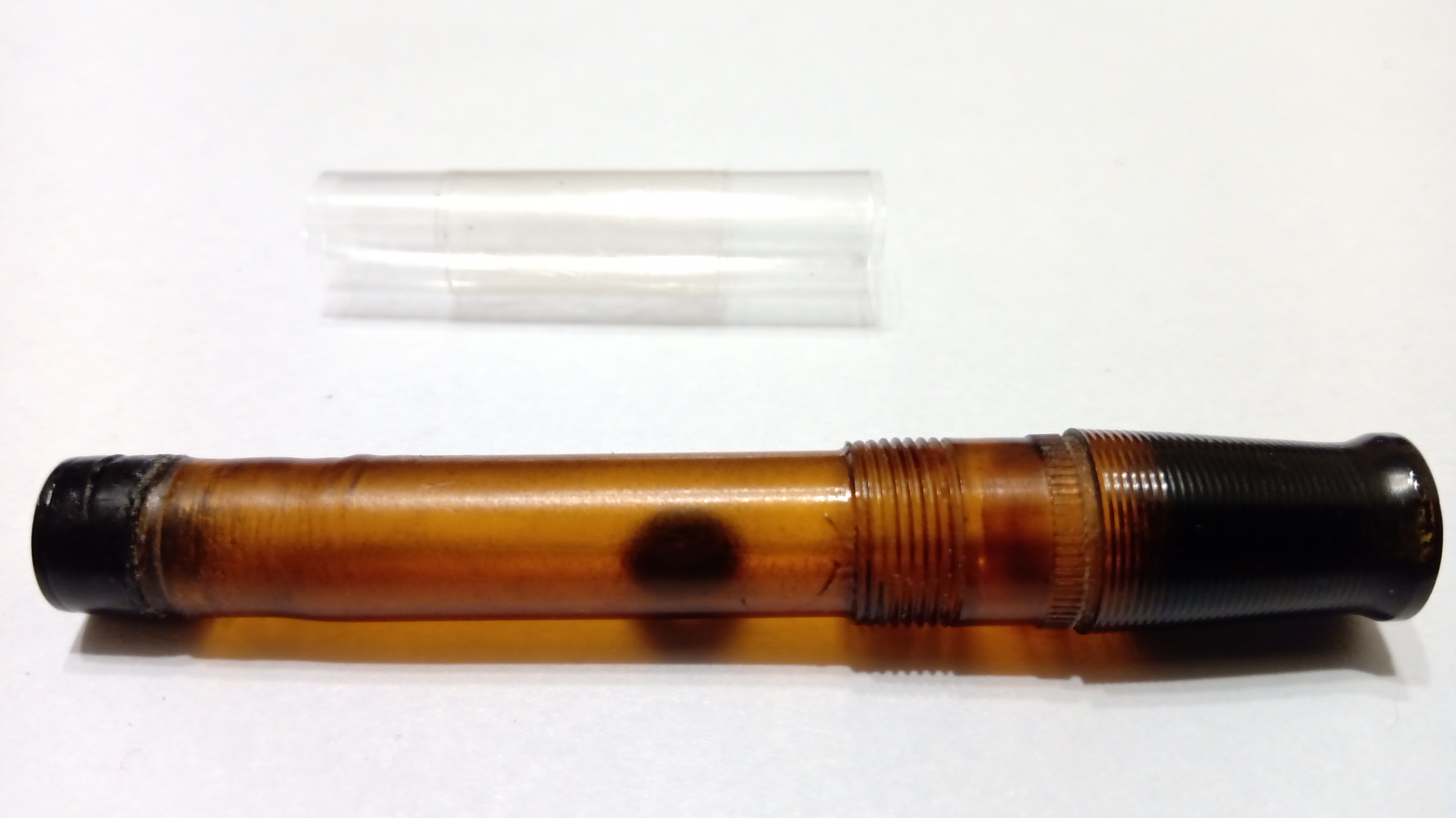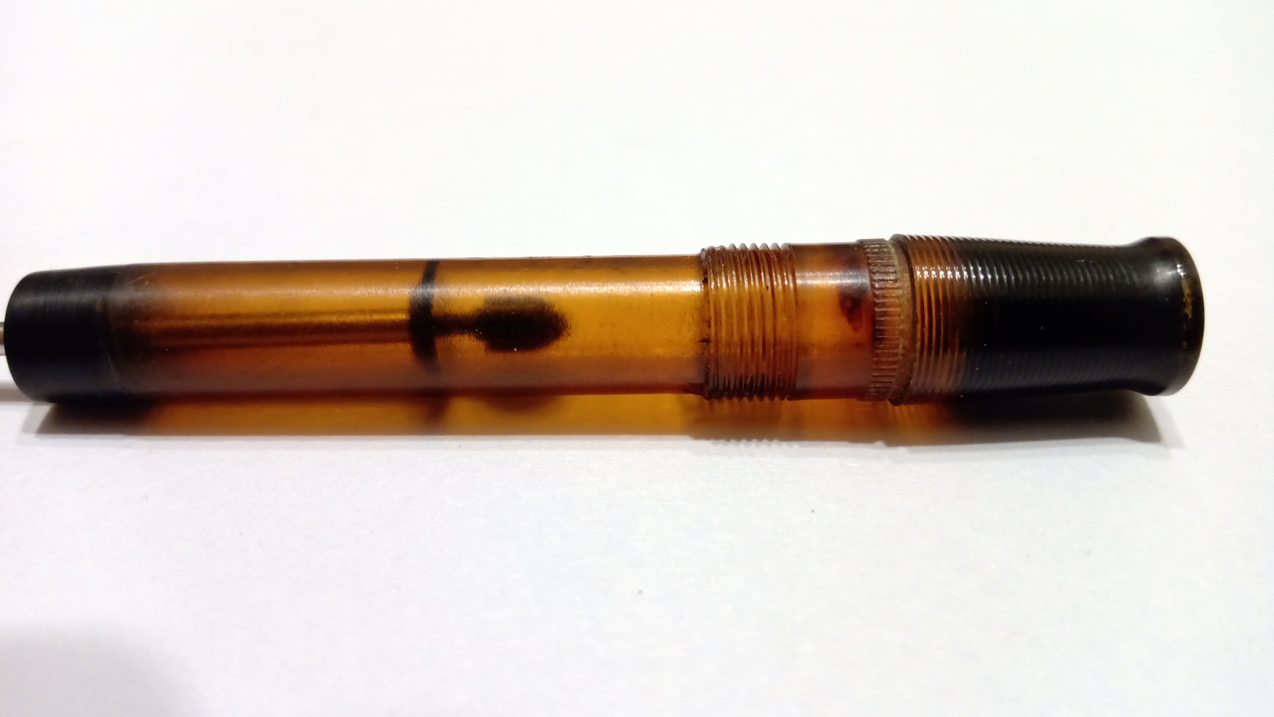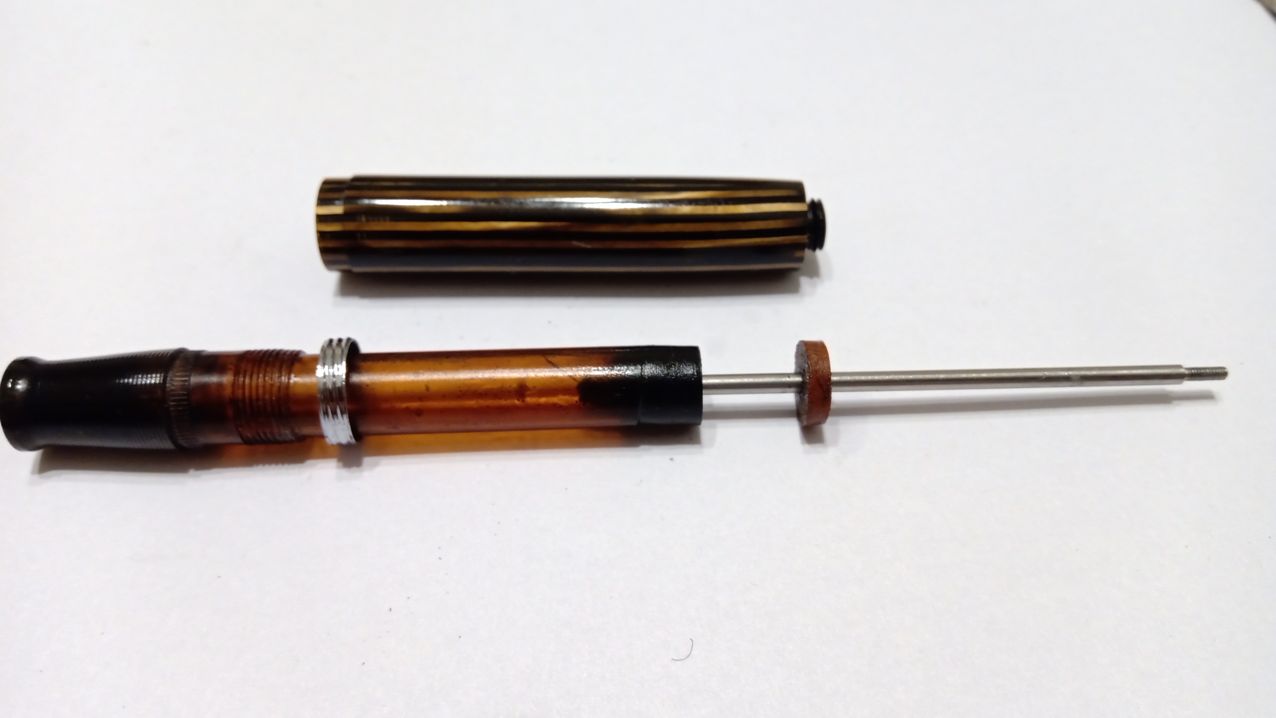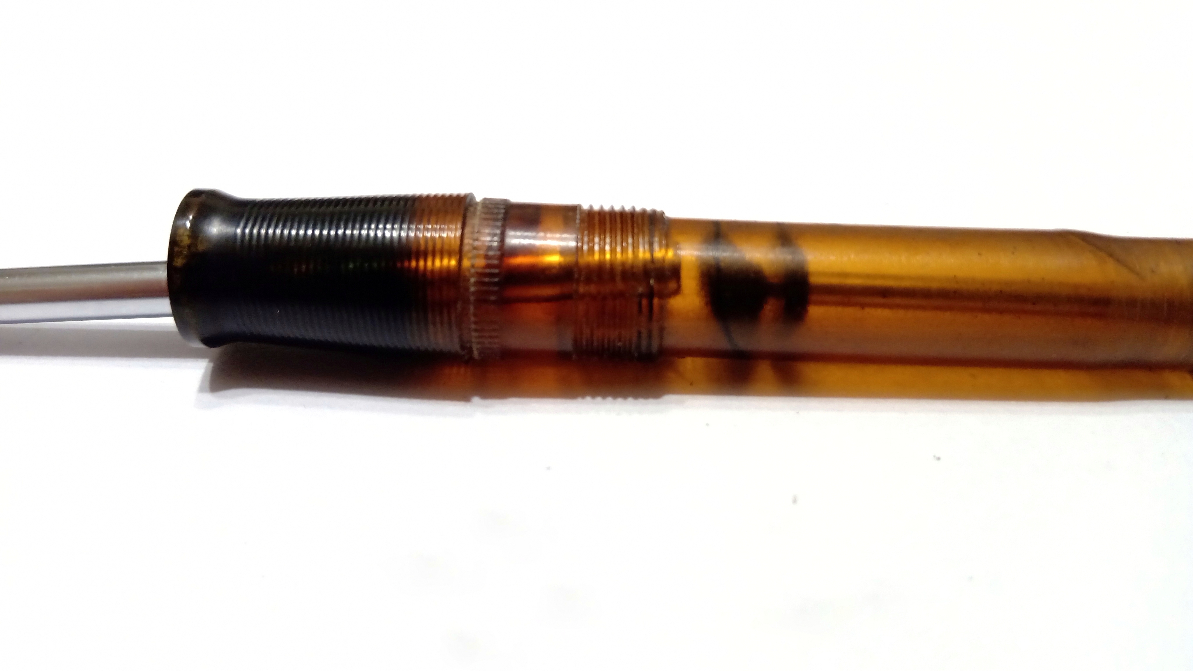 La cosa interessante di questo modello che mi sono dedicato a restaurare, a differenza degli altri, è che invece di avere un corpo o canna trasparente, è stato realizzato con un manicotto interno che entra all'interno della canna. Indagando un po' di più, ho scoperto che secondo gli studiosi in materia, esistono due generazioni di stilografiche sottovuoto, una prima generazione, con il fusto trasparente, e una seconda generazione con un manicotto interno che sembra essere stato realizzato in dal 1947 al 1948, per essere successivamente sostituito dal sistema di riempimento TouchDown nel 1949.