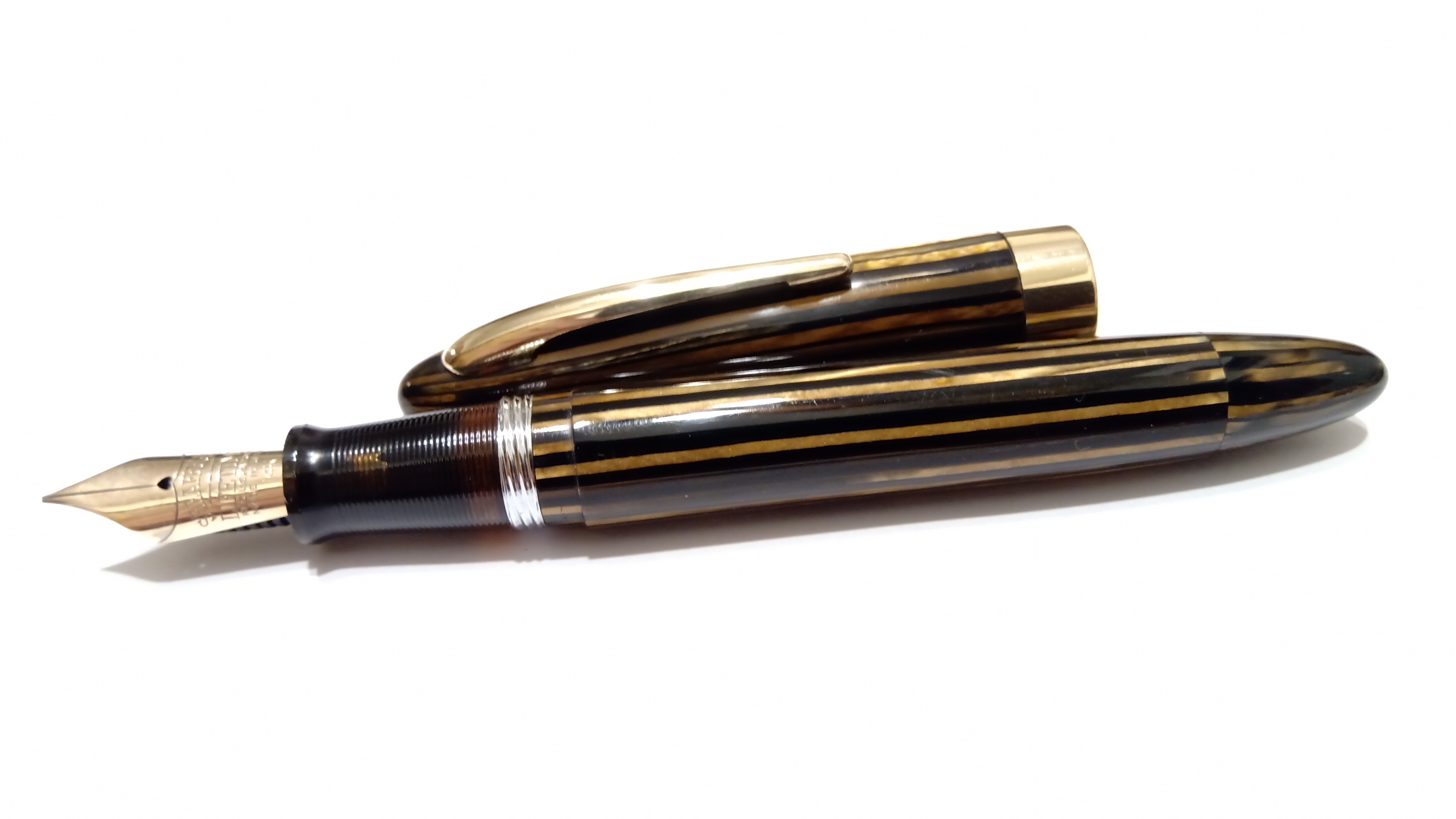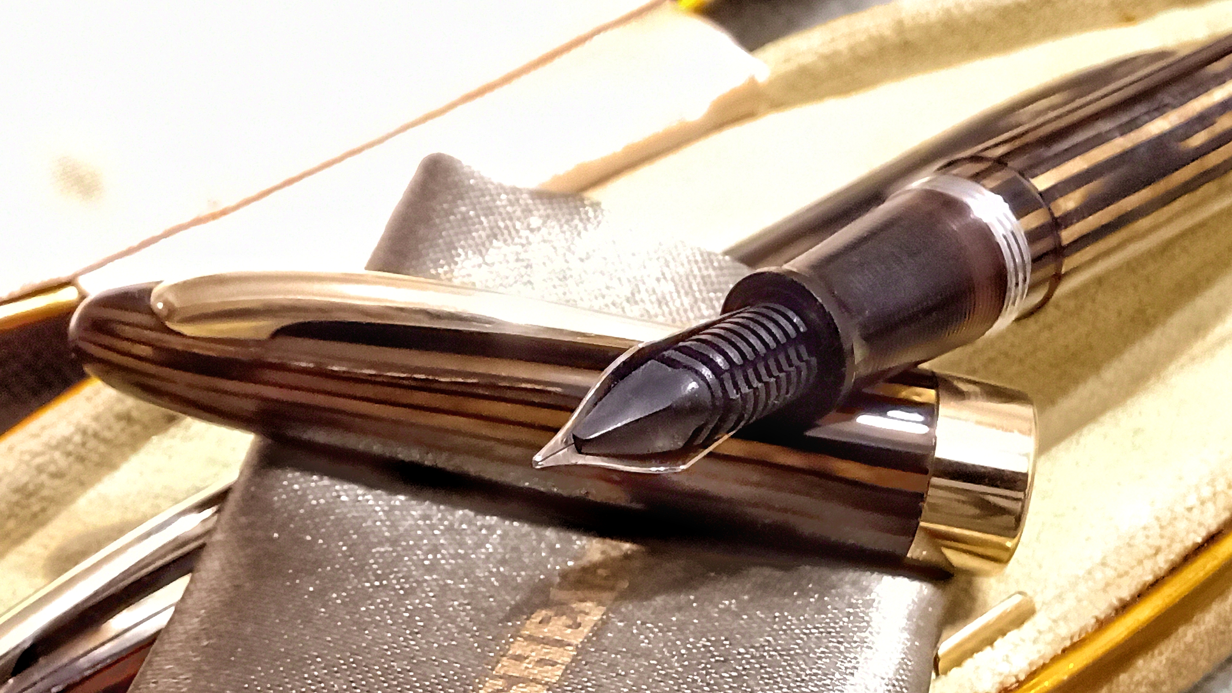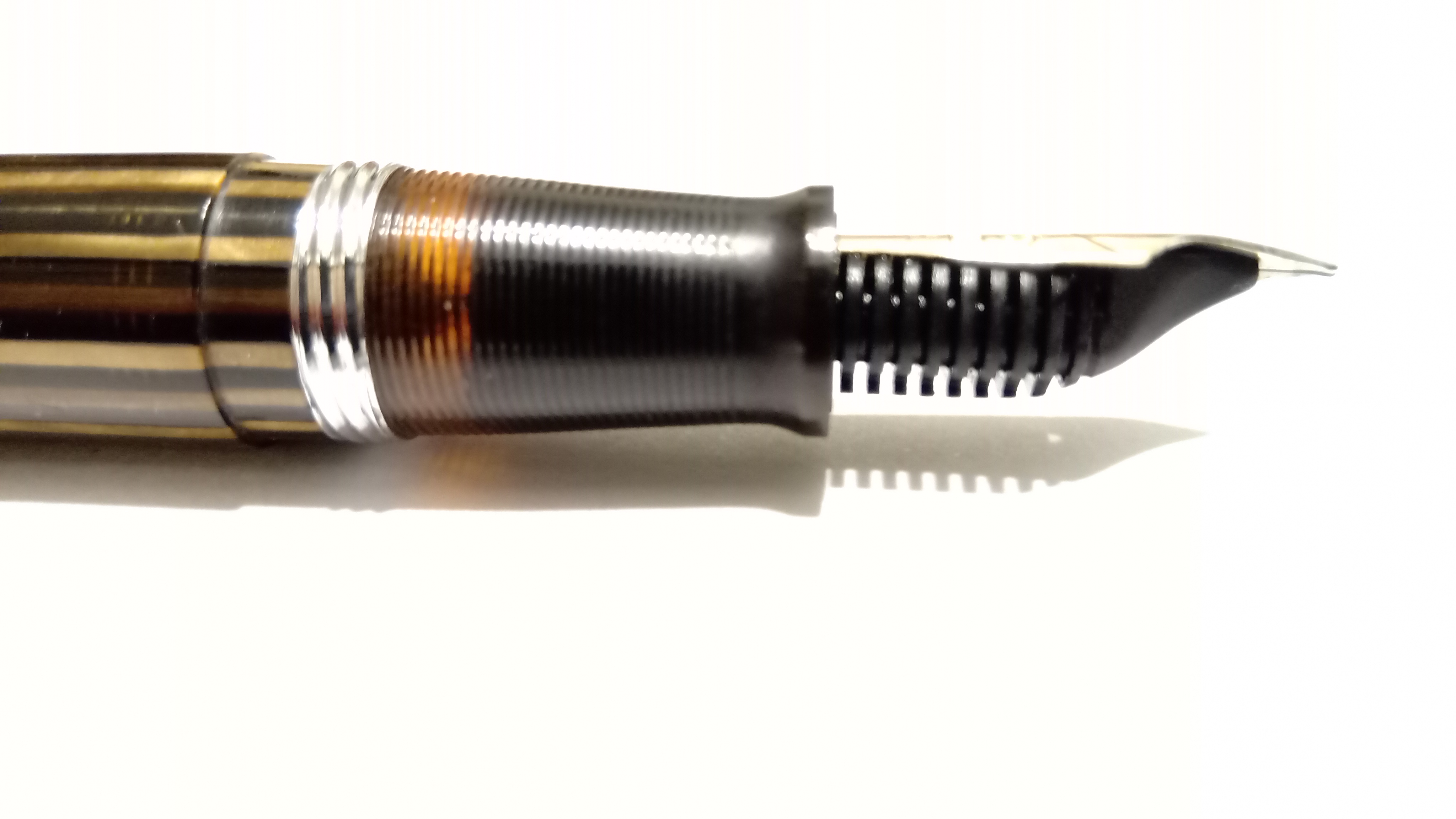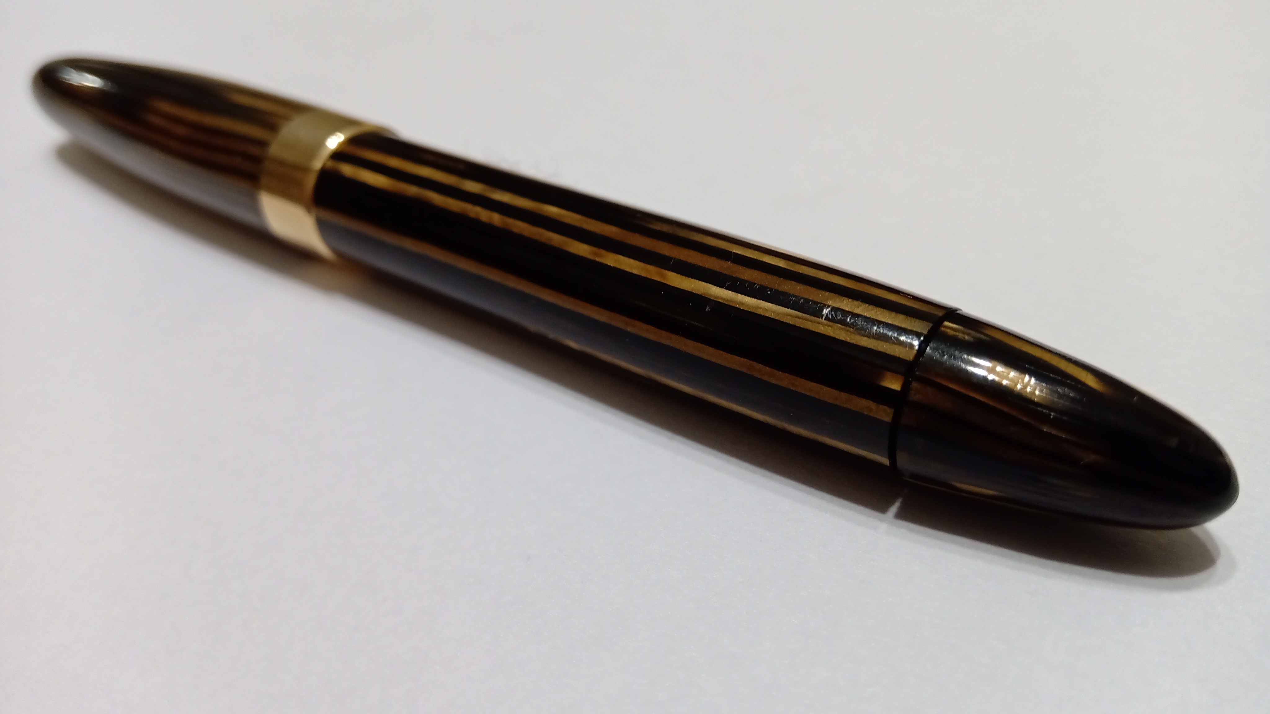 La cosa interessante di questo modello che mi sono dedicato a restaurare, a differenza degli altri, è che invece di avere un corpo o canna trasparente, è stato realizzato con un manicotto interno che entra all'interno della canna. Indagando un po' di più, ho scoperto che secondo gli studiosi in materia, esistono due generazioni di stilografiche sottovuoto, una prima generazione, con il fusto trasparente, e una seconda generazione con un manicotto interno che sembra essere stato realizzato in dal 1947 al 1948, per essere successivamente sostituito dal sistema di riempimento TouchDown nel 1949.