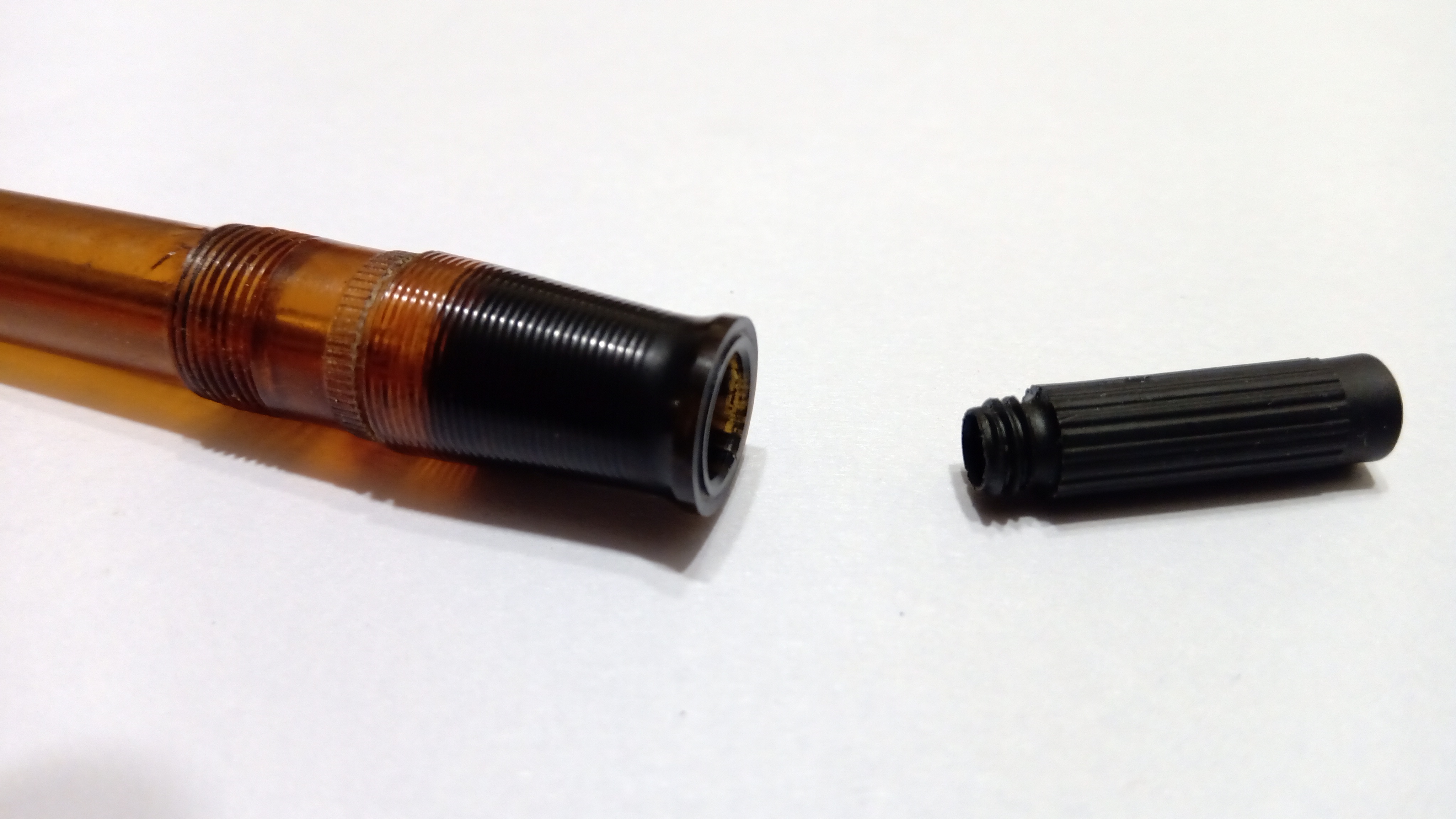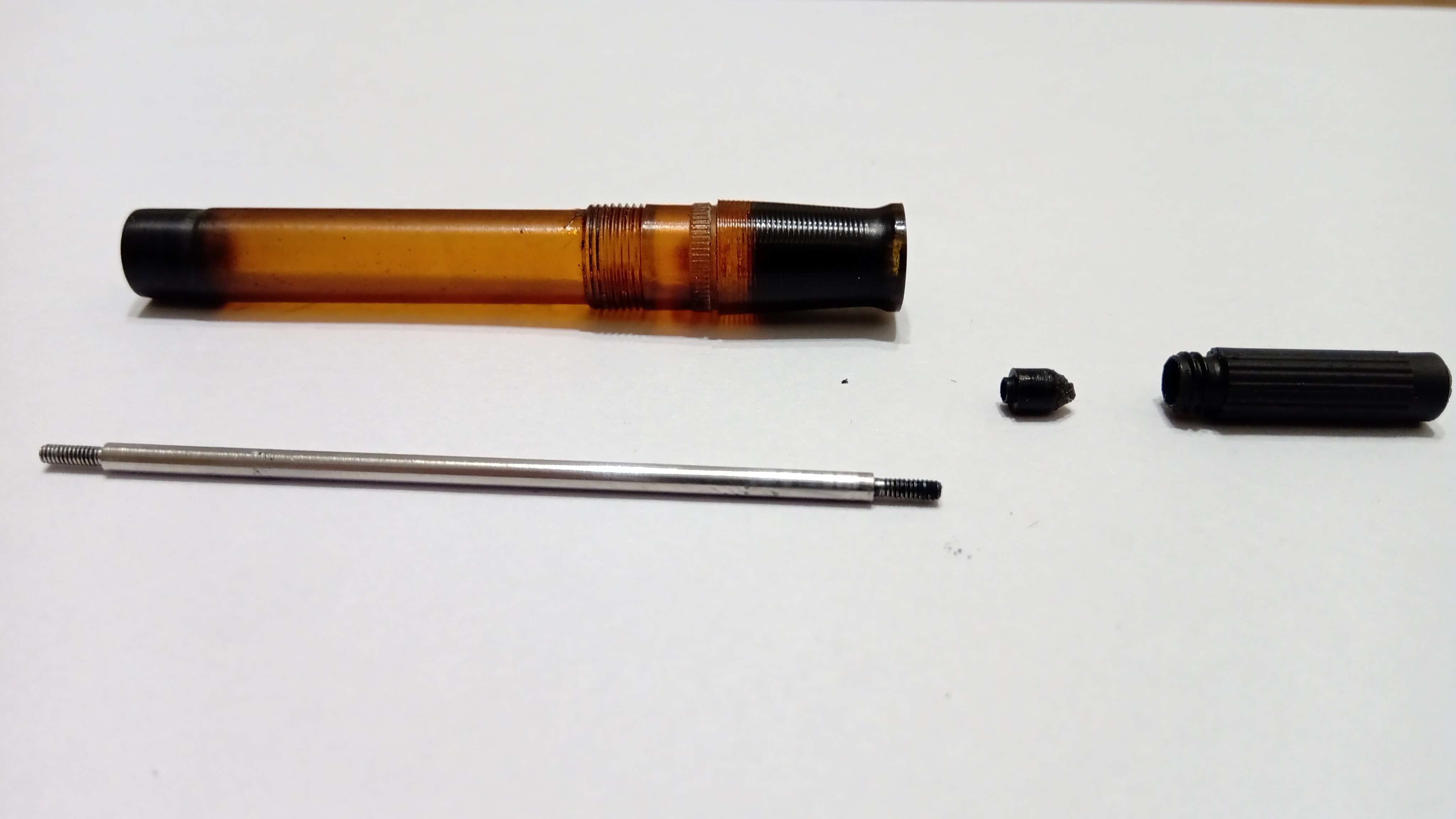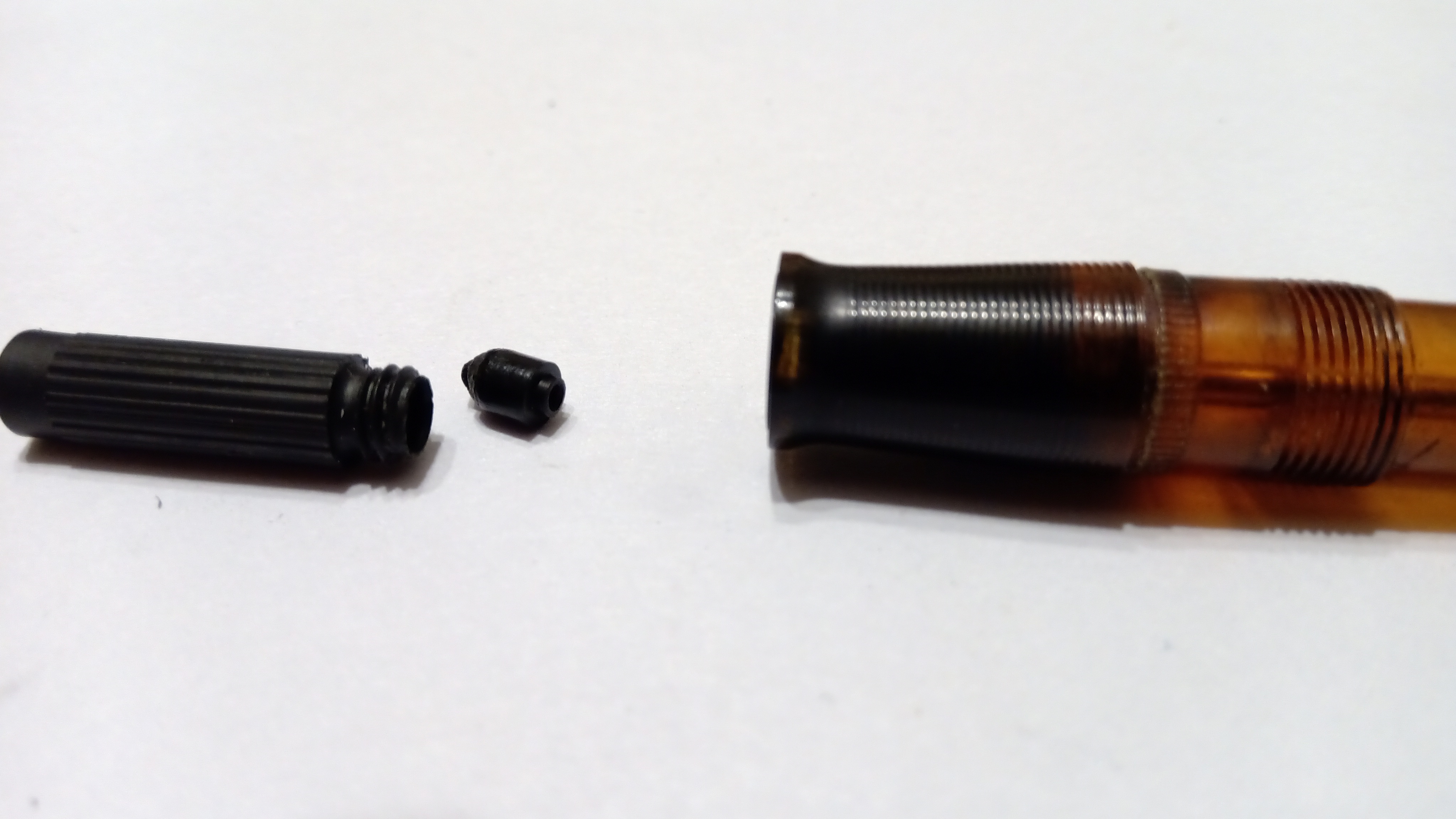 e poi ho proseguito attraverso l'alimentatore, sfilandolo con attenzione insieme al pennino dalla sua posizione nell'impugnatura (pensavo ad un successivo incollaggio)...