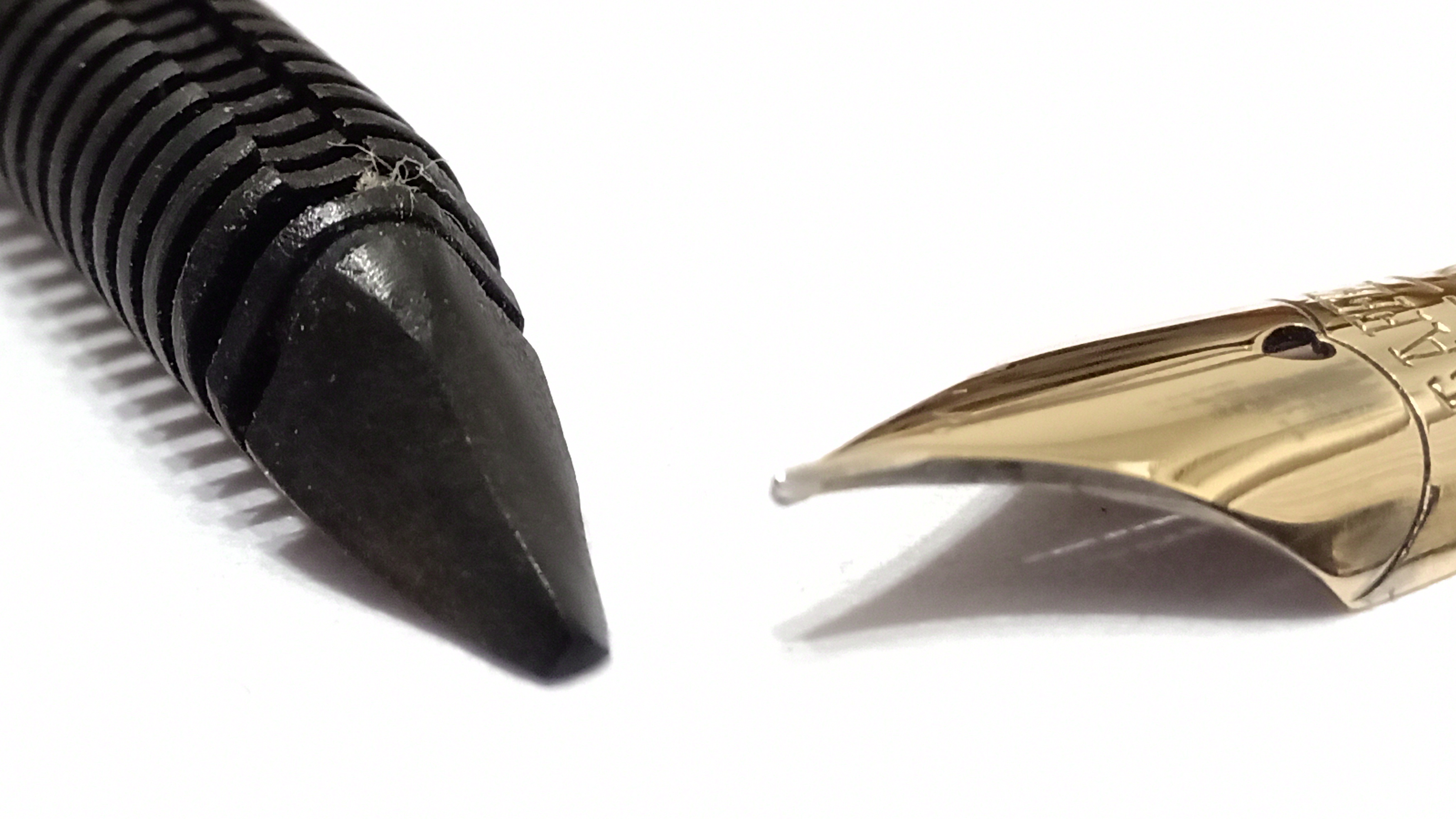 e una volta livellate le estremità del pennino, e lucidati pennino e caricatore, ho posizionato i due ben allineati nell'impugnatura della stilografica...