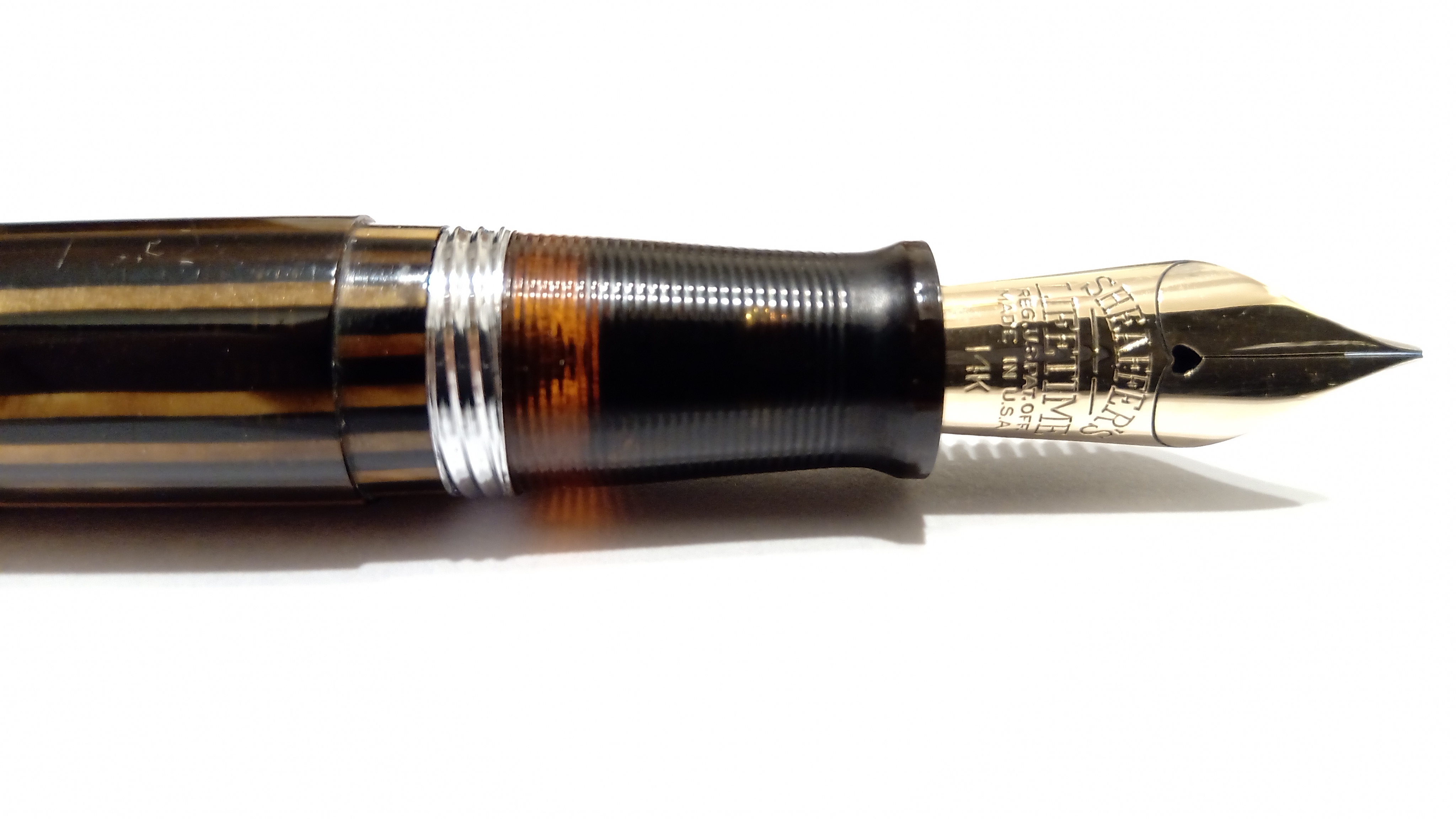 Proseguendo l'indagine ho anche potuto scoprire che l'idea di Sheaffer's nel posizionare questo manicotto, che era solidale con l'impugnatura e con il tappo di ritenzione dello stelo (cioè un set), era che il set fosse sostituibile o "usa e getta", senza dover pasticciare con il costoso fusto in celluloide laminata. Naturalmente forse non avevano pensato che un secolo dopo questi preziosi pezzi avrebbero continuato a funzionare e sarebbe stato quasi impossibile trovare un set sostitutivo.