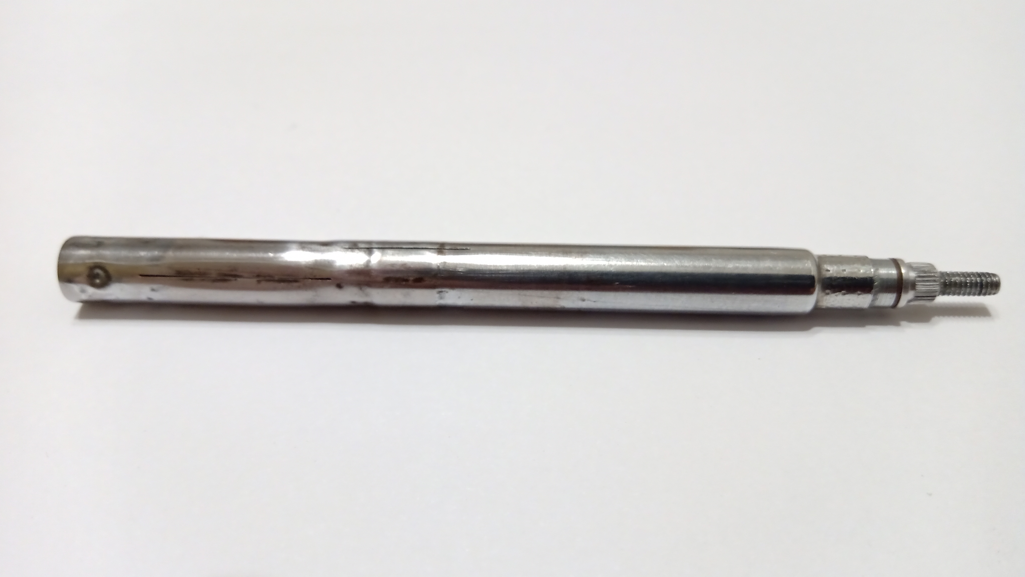 Successivamente, picchiettando a secco con un'asta metallica dall'estremità opposta e con un po' di WD40, ho scollato la guida filettata dal manicotto esterno...