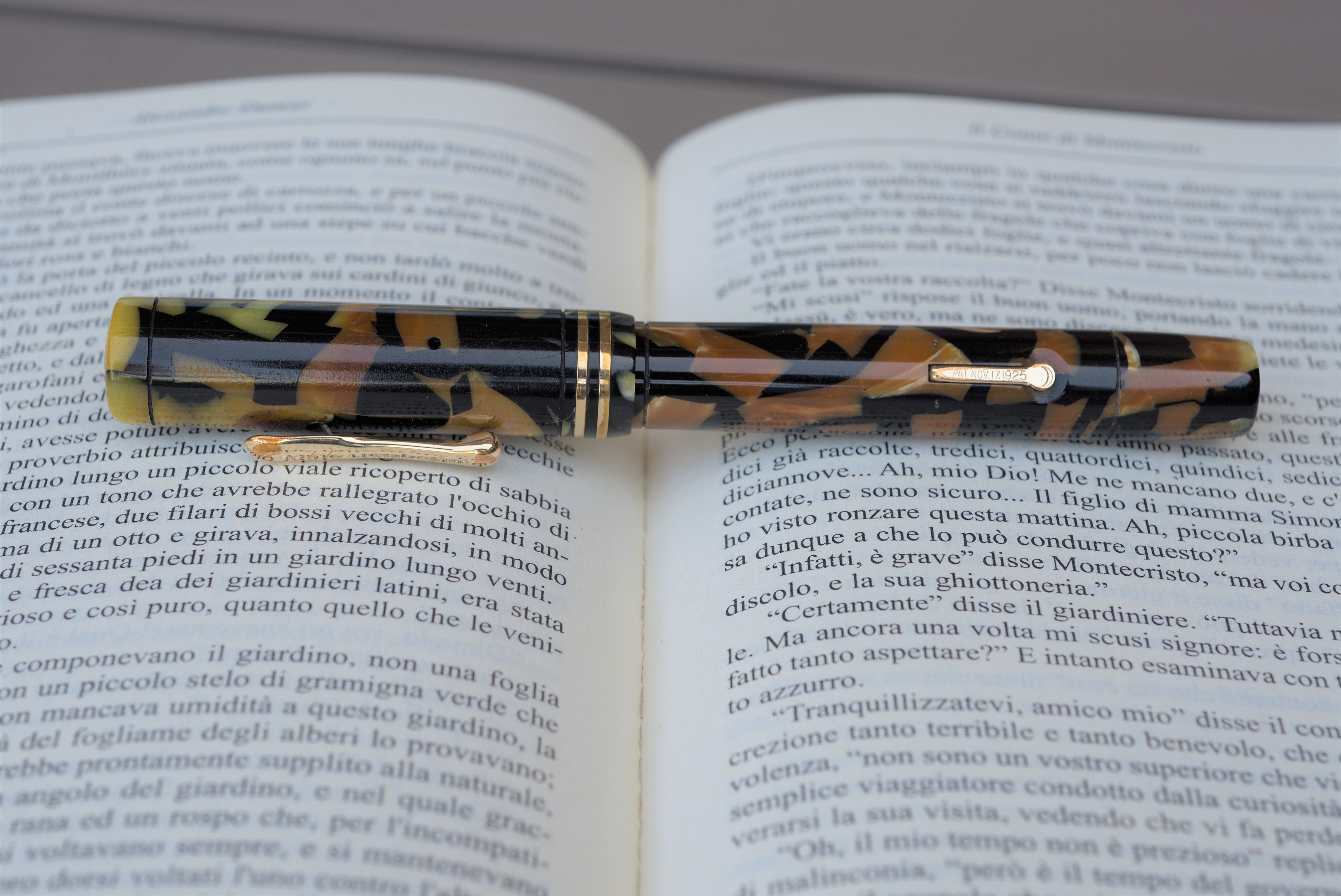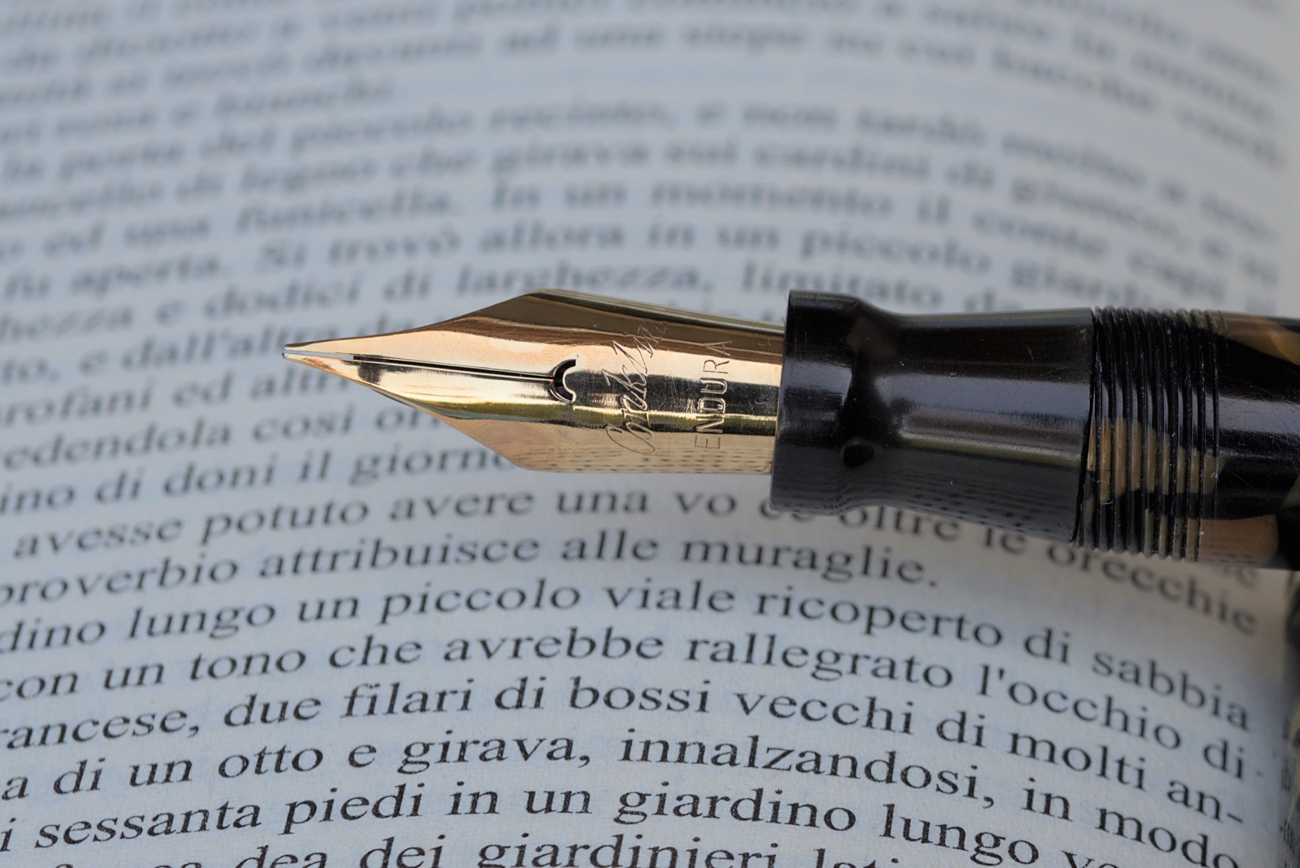 Come già detto le Endura sono tra le mie penne preferite, ovviamente è un giudizio personale, in questo caso la penna è in condizioni splendide, mostra un po' di viraggio tipico di questa celluloide e monta un pennino flessibile, anzi direi super flessibile.