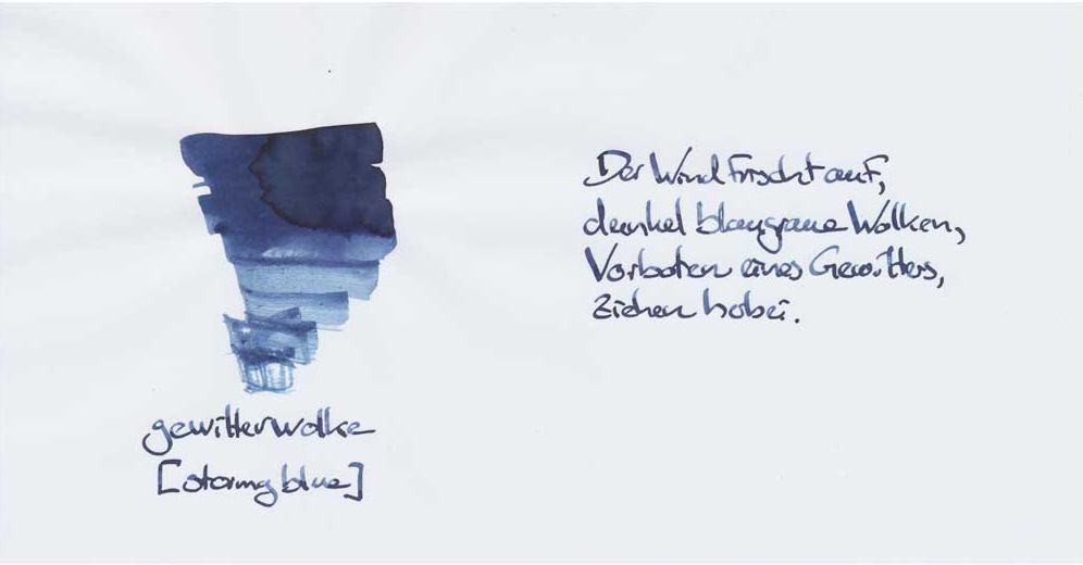 Il Gewitterwolke (per l'appunto nubi temporalesche) della Fritz Schimpf, ha quel colore blu cupo, che sfuma nel grigio-azzurro.