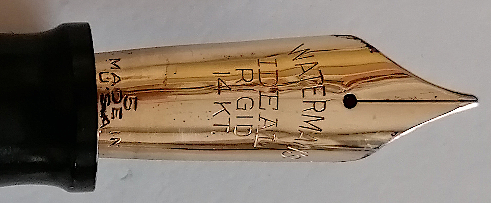 Aggiungo anche foto del pennino, ammesso che sia d'aiuto. Per altro pennino definito dalla casa come rigido, che però scrive divinamente e anche con una minima ma evidente variazione del tratto.