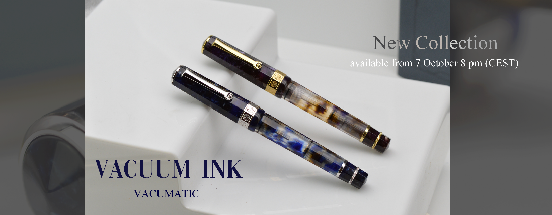 Vacuum filling system of this demonstrator pen was studied and created in our laboratory. Technically it works like Parker Vacuumatic but instead of a rubber membrane, the depression is created by alternating movement of a short piston. It works away from ink, sealed in its own chamber when the mechanism is closed so the gasket could last endlessly while the membrane was easy to dry out and break being in touch with ink. The feeder is in ebonite expressly made for that particular filling system. It has a capillary stainless steel tube and allows the air to go out from the pen and replace with ink through the capillary tube. All parts of the pen are expressly designed and made for this special filling system.