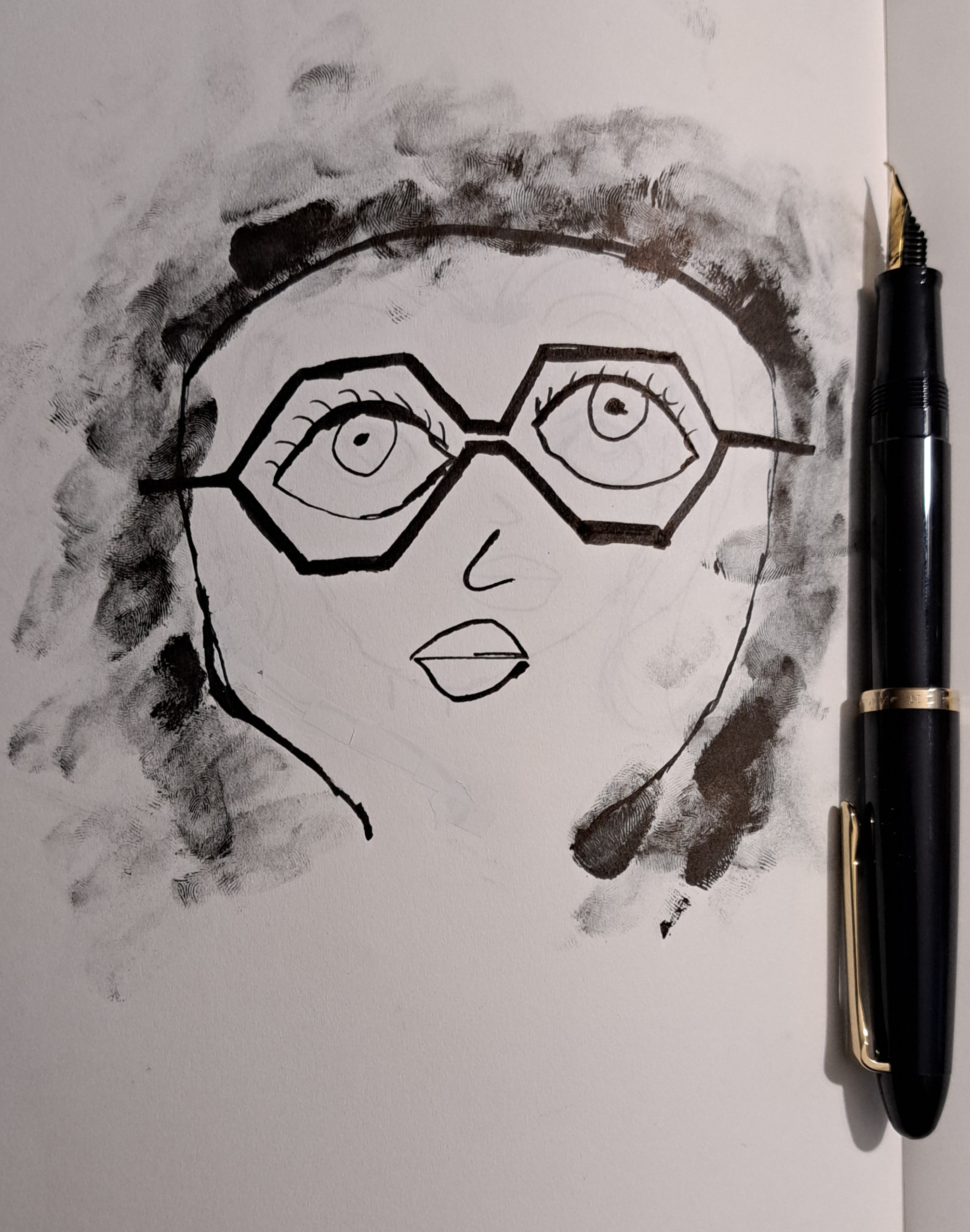 Veloce disegno realizzato dalla mia piccola (10 anni) con la Sailor fude de Mannen e inchiostro Sailor (i capelli sono fatti... al dito!)