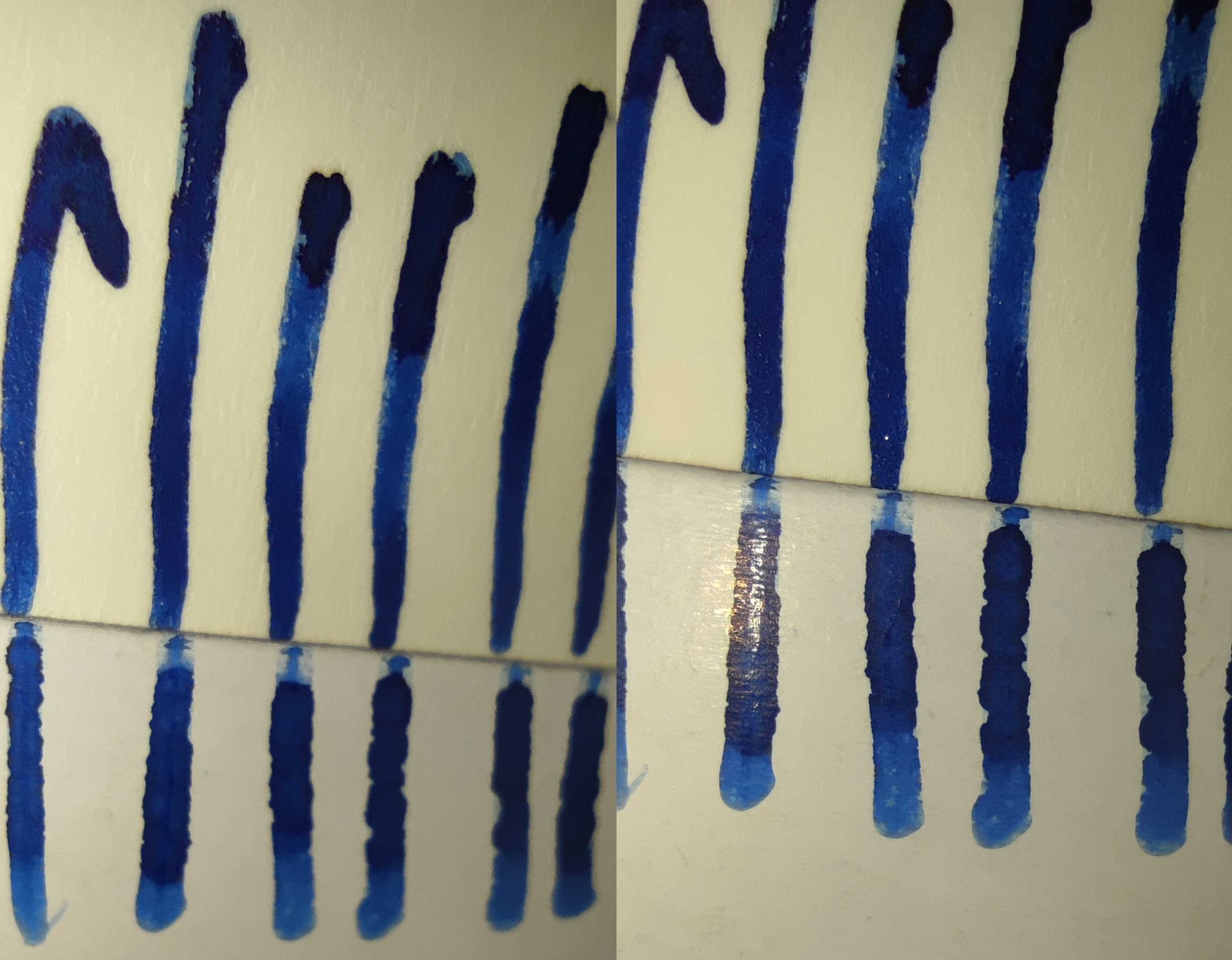 Alcuni cartoni i più ruvidi li uso per favorire la partenza di penne che non uso da tempo e per capire se hanno problemi di flusso, li uso anche per "levigare" le punte quando vedo che scrive con qualche feedback. Il processo è decisamente lungo, ma mi piace sprecare in modo divertente gli inchiostri che altrimenti non finirei mai.