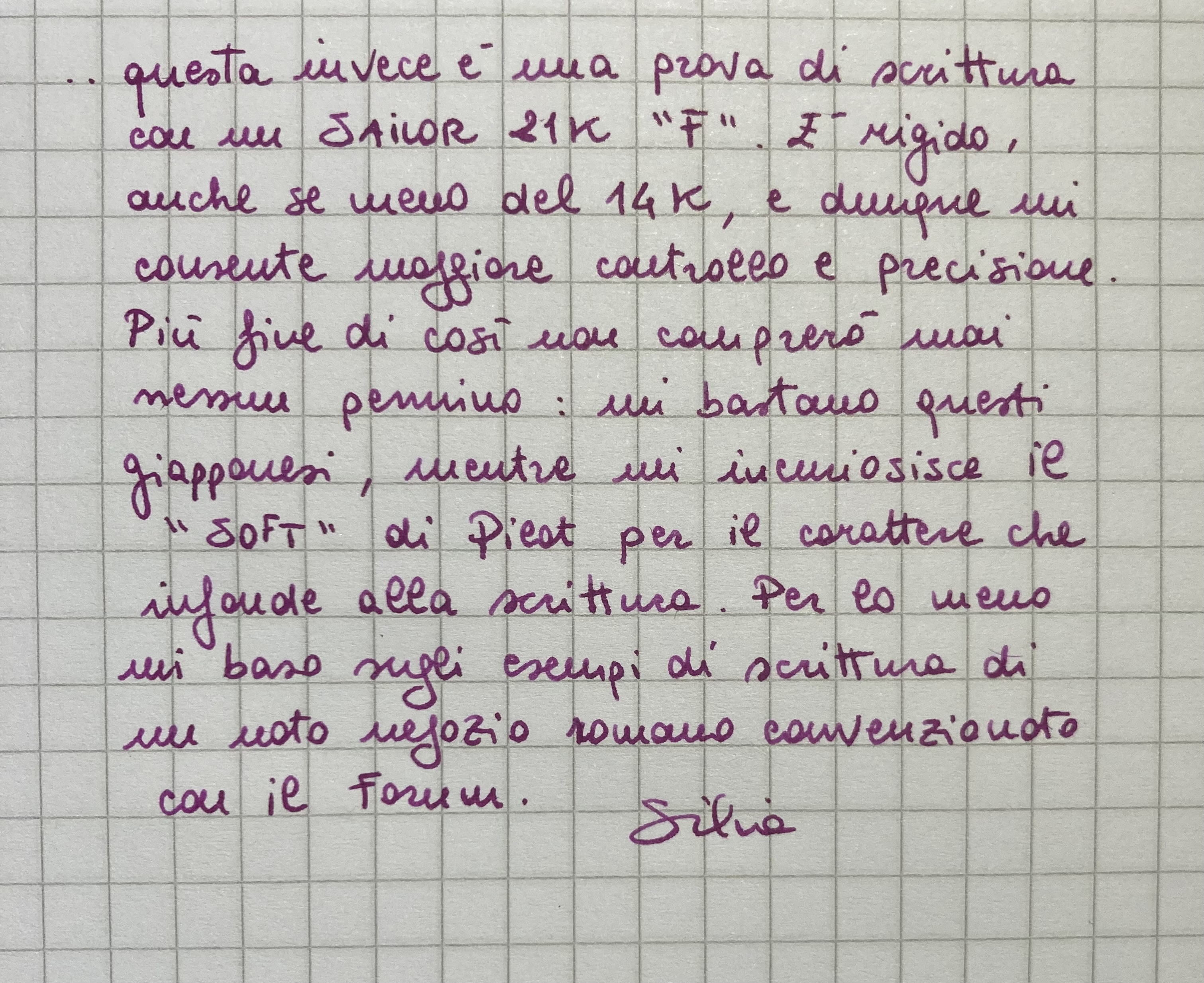 Vi metto un altro esempio con un F Sailor 21k. Come troverete scritto, mi incuriosisce il “soft” dei Pilot da provare come esperienza nuova