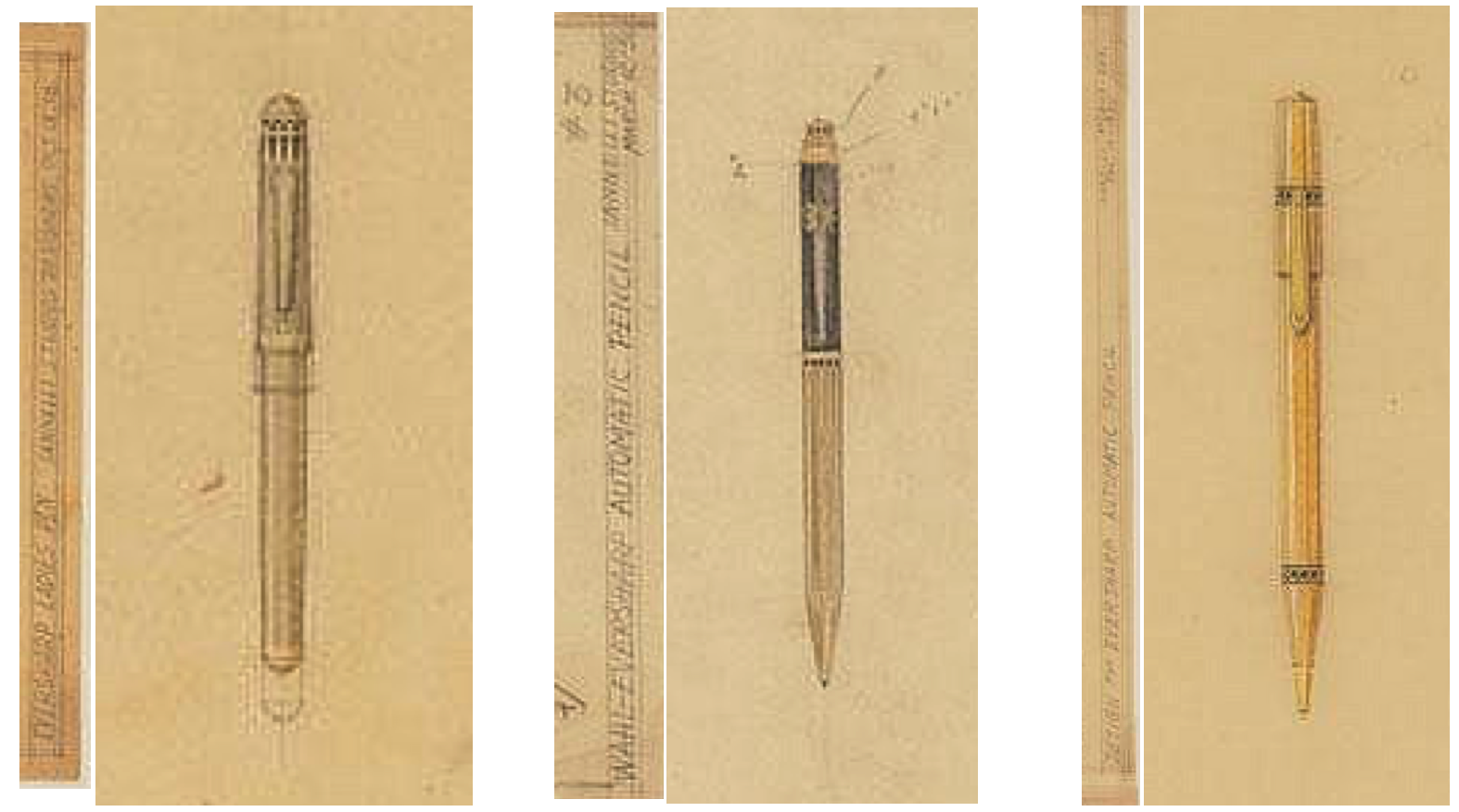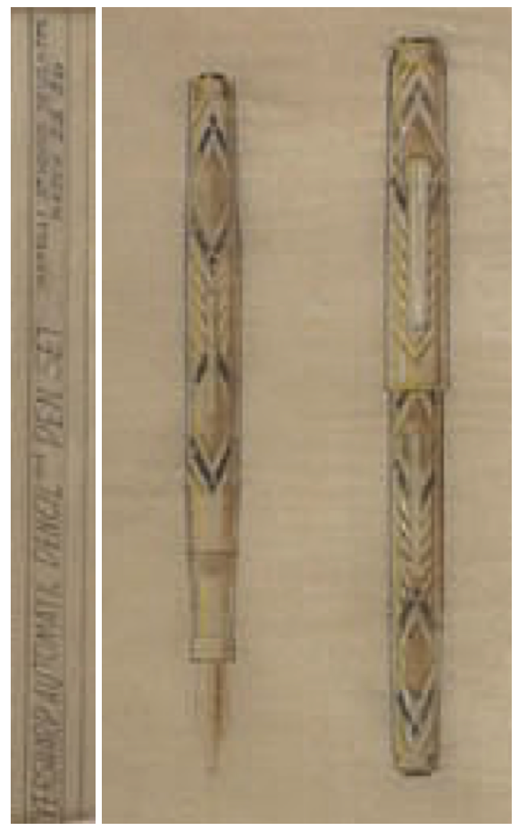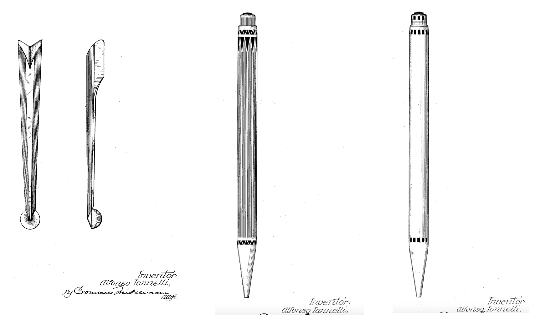 Questi i disegni presenti nei brevetti depositati dalla Wahl-Eversharp a firma Alfonso Iannelli per quanto riguarda il fermaglio della stilografica e due differenti versioni delle matite (presenti nel Wiki di FP.it