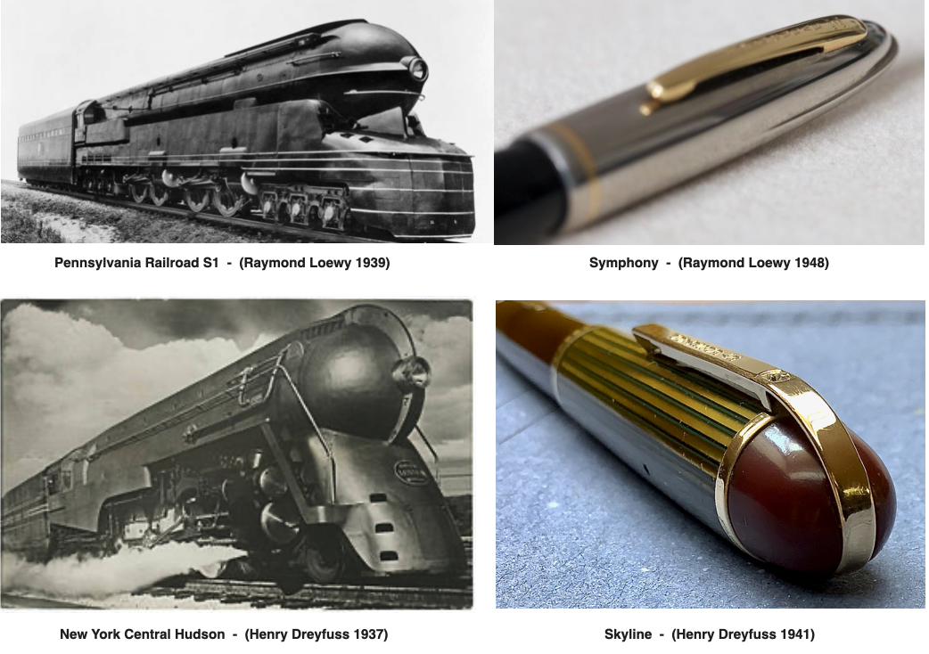 Nel mondo delle stilografiche americane degli anni ’40-’50 sono spesso menzionati e ricordati nomi di affermati designer quali , ad esempio, Don Doman, Henry Dreyfuss, Raymond Loewy, che iniziarono a collaborare con i maggiori produttori di penne come Parker e Wahl-Eversharp , nello sviluppo e realizzazione di forme e stili dei prodotti di scrittura (collaborazioni che poi si instaurarono anche in Europa, ad esempio con Nizzoli e più tardi con Zanuso nel caso di Aurora).