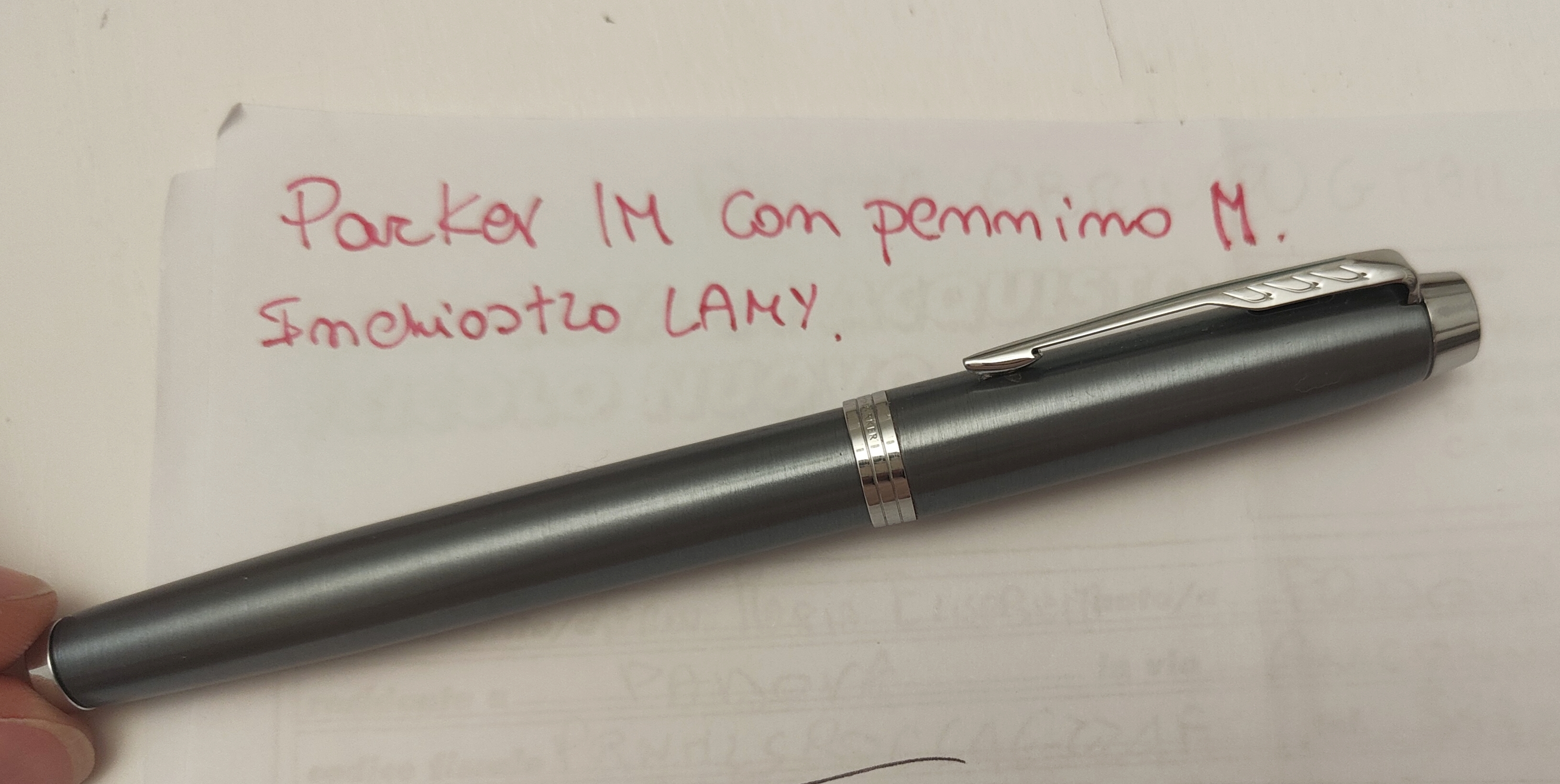 Io ho una IM di una decina d'anni fa, ha la parte conica che tiene il pennino in metallo satinato, in pratica è come tenere una saponetta bagnata: è scivolosa, non ha grip. Per ovviare gli ho arrotolato un elastico come fanno per i bimbi che devono imparare ad impugnare le penne. Spero che quelle moderne non abbiano questo problema, per il resto scrive bene.