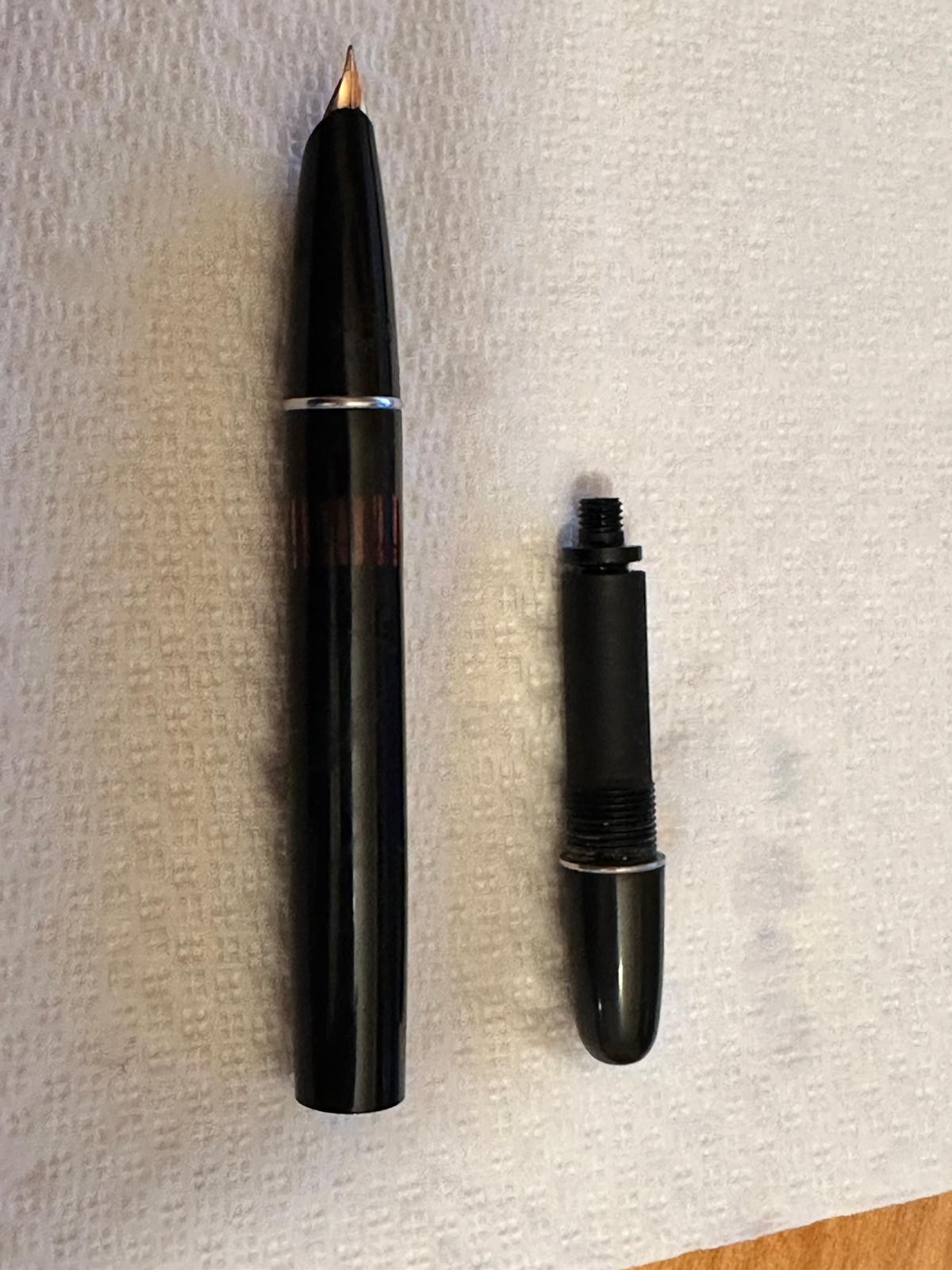 La penna ha sempre dato problemi al pistone che appariva piuttosto duro e a volte si bloccava, poi si deve essere sganciato completamente dalla madre vite rimando bloccato.