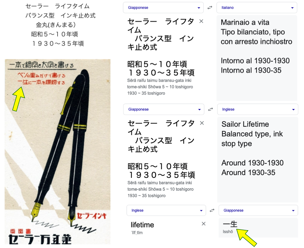 E’ anche probabile che le penne con la garanzia Lifetime montassero i pennini con incisa la parola WARRANTED in luogo alla comune dicitura 14CRT.GOLD sempre presente nei pennini in oro di Sailor del periodo. Ma questa è una mia speculazione basata sulle diverse immagini visionate in giro.
