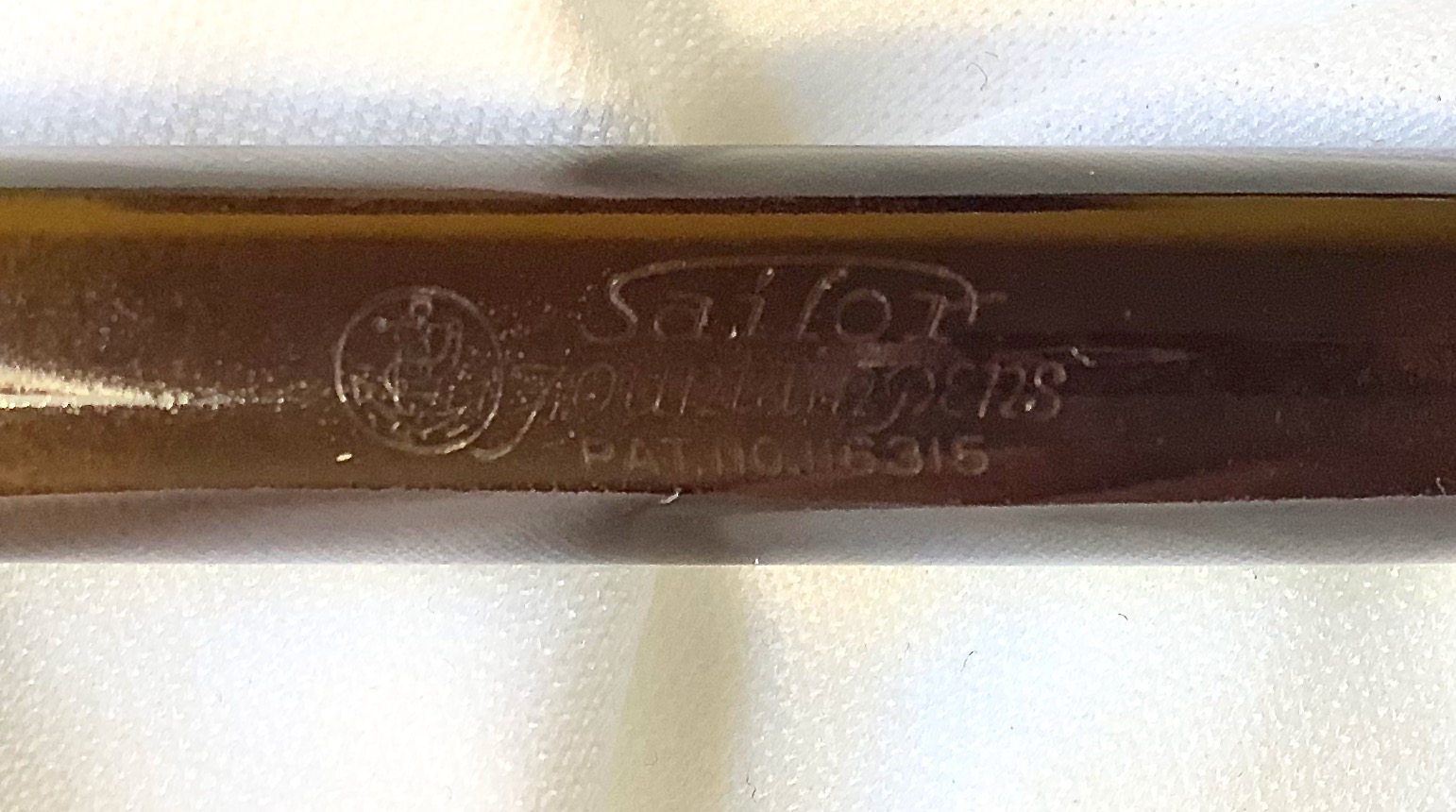 Sul fusto è presente il vecchio logo con un marinaio seduto di spalle su un'ancora, la scritta Sailor Fountain Pen ed il numero di brevetto (molto probabilmente riferito al sistema di arresto dell'inchiostro)