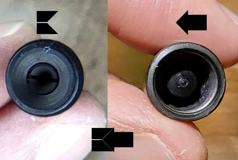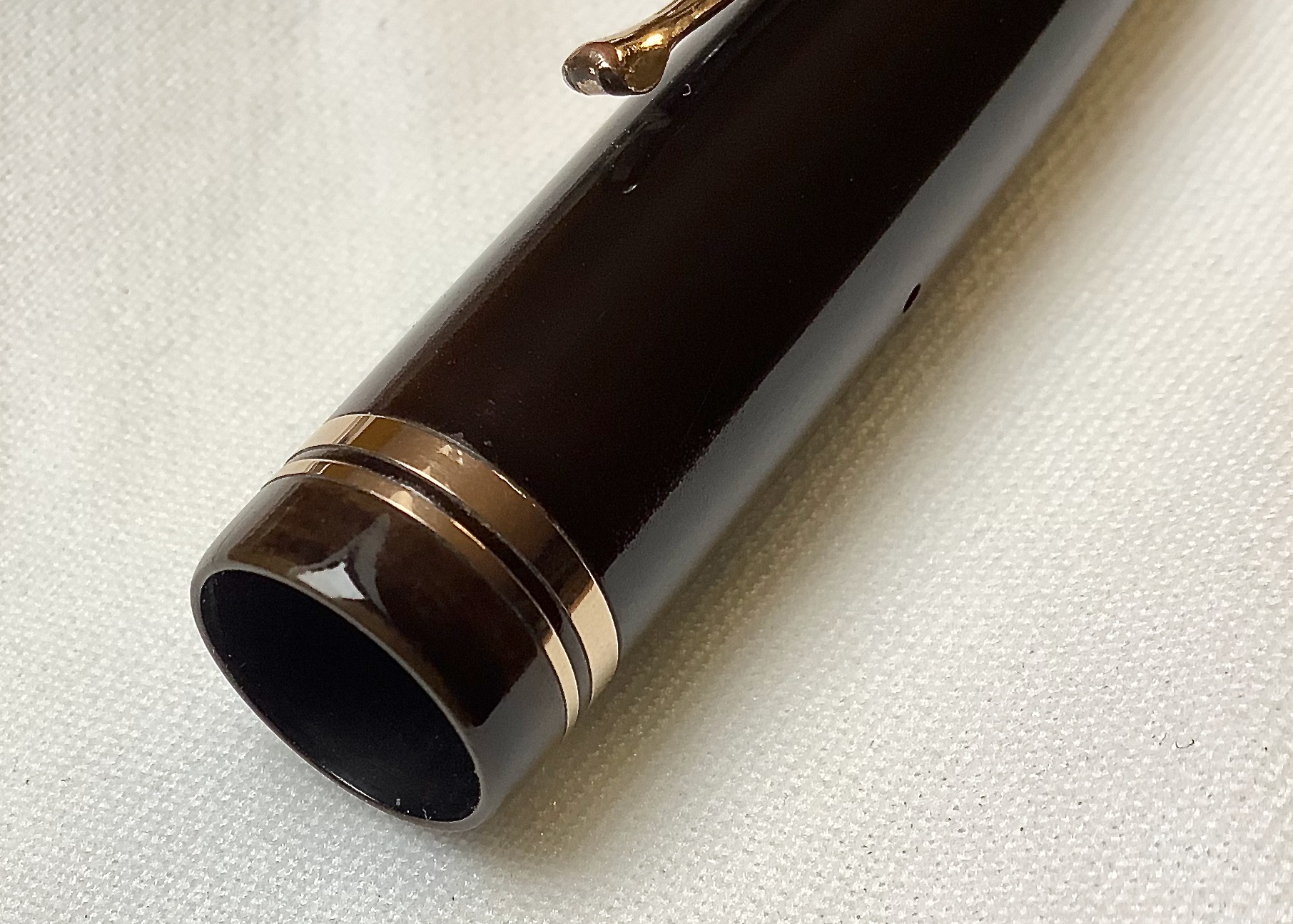 Quello che sembra essere un anello a ridosso del pomello , è semplicemente una abrasione della superficie dovuta all'azione di calzare il cappuccio , che ha via via asportato il materiale superficiale (che a questo punto sembra essere davvero una sorta di laccatura).