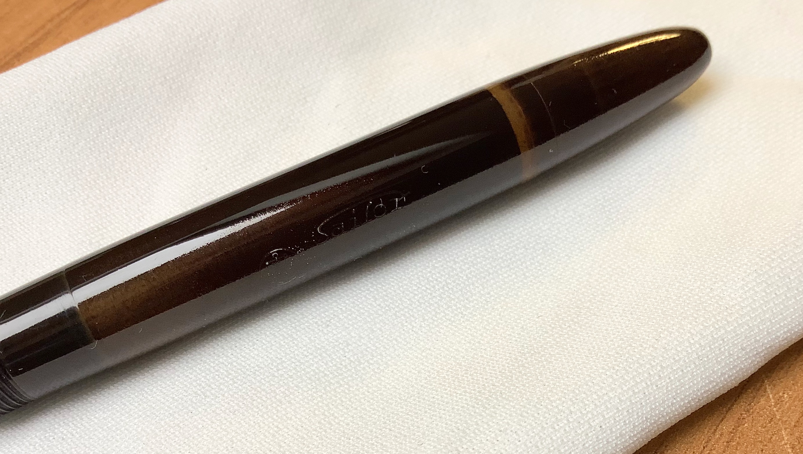 So per certo (nel senso che sono certo di averlo letto da qualche parte) che forse Pilot , o qualche altro produttore giapponese , era solito su alcune penne in ebanite , dare una mano di lacca , tipo Urushi , al fine di preservare l'ebanite dal particolare clima del Giappone (e dall'ossidazione). Questa lavorazione ha un nome o termine specifico, che purtroppo non ricordo (nulla di particolare comunque, non una vera urushi).