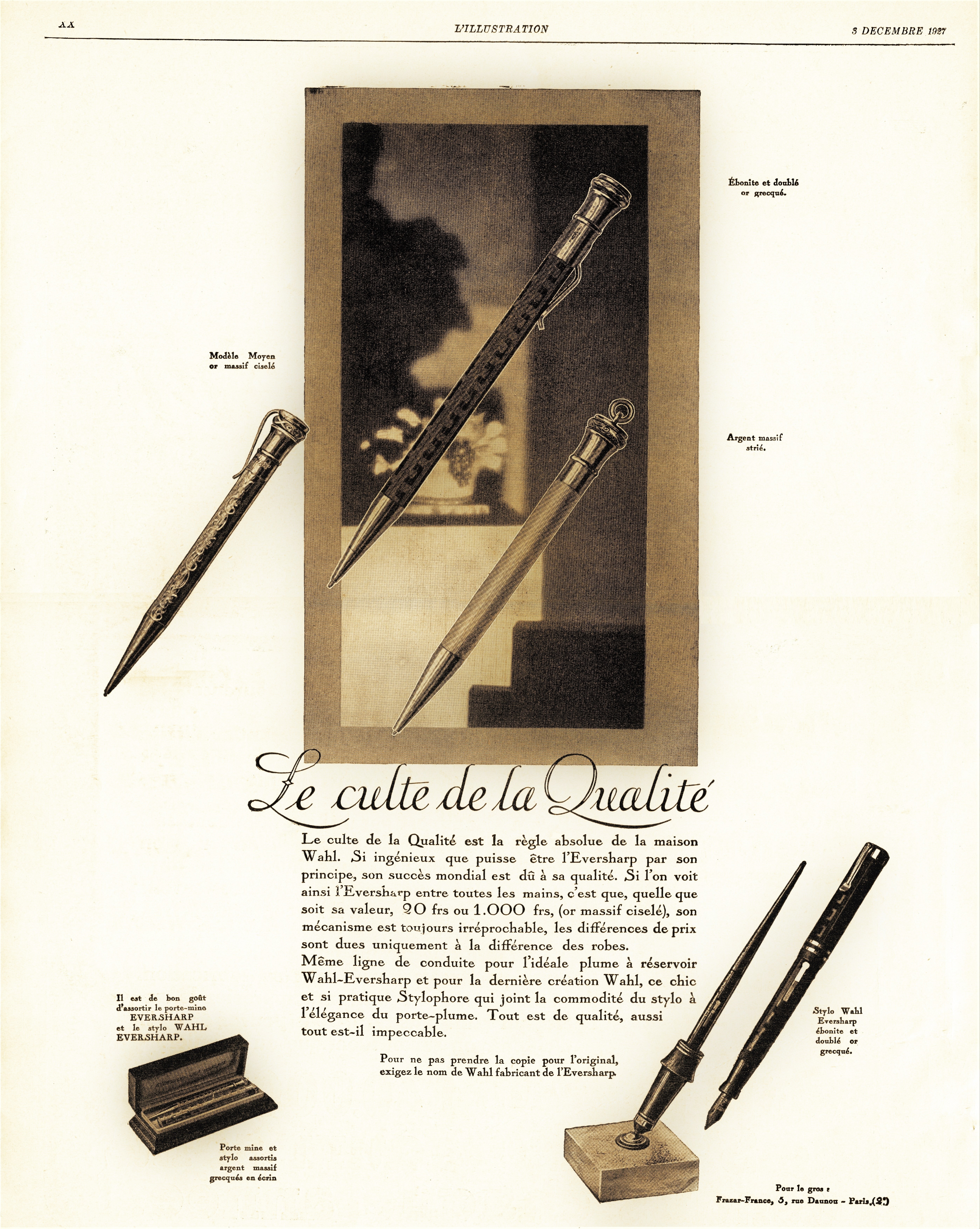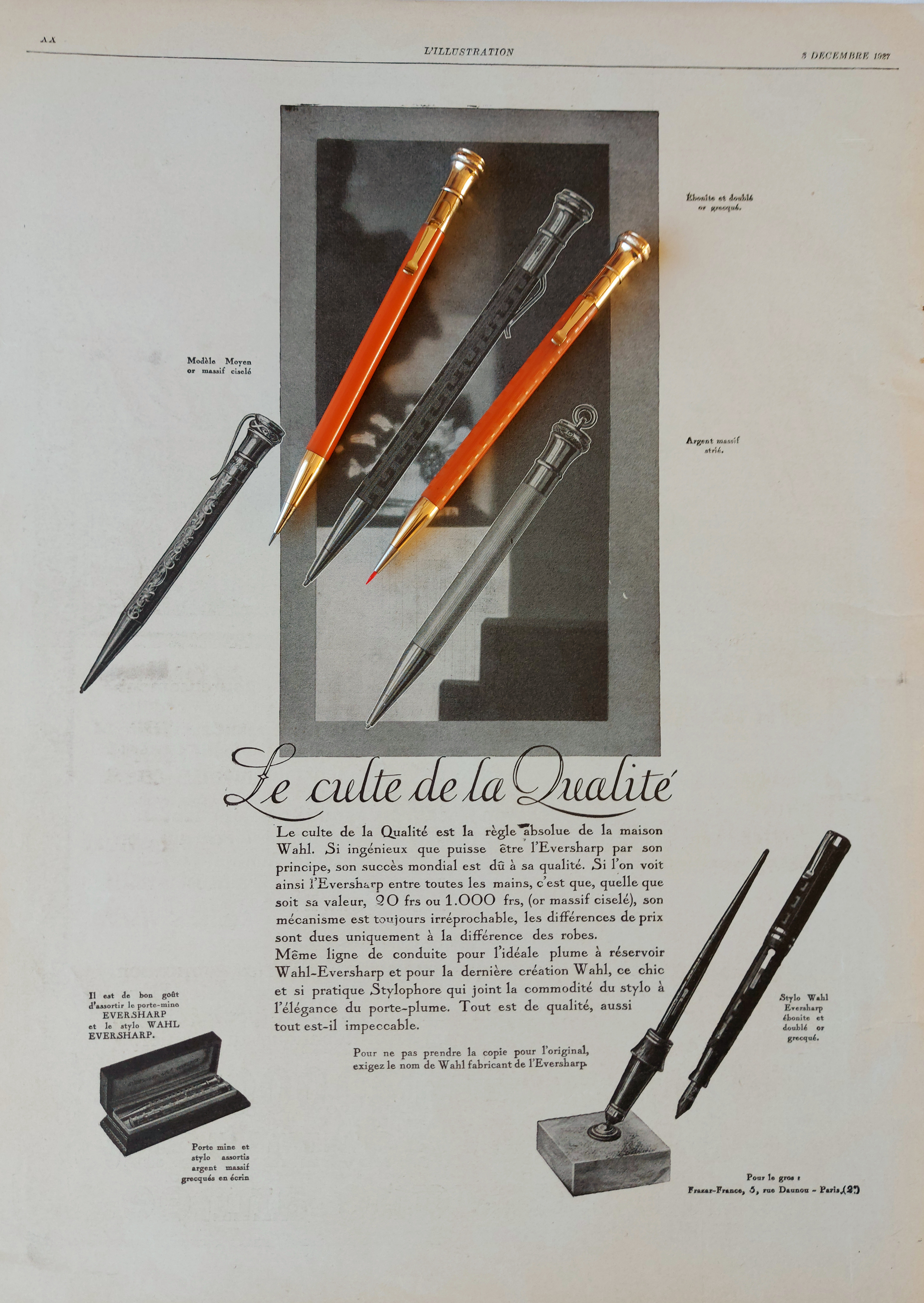 Le grandi Compagnie che guidavano il mercato delle stilografiche dal punto di vista tecnico, stilistico, produttivo e commerciale iniziarono a proporre i primi stilofori solo dopo quasi mezzo secolo dalla nascita della prima penna stilografica (!), e cioè solo intorno alla metà degli anni Venti del Novecento (1925). A mio avviso ciò è dovuto al fatto che la penna stilografica era nata proprio come una “liberazione” dalla “dipendenza” dal calamaio e dalla scrivania (desk), rendendo finalmente la scrittura con inchiostro largamente possibile anche in tutti quei contesti che le erano stati precedentemente di fatto preclusi: viaggi, sport, tempo libero, lavori all’aperto o itineranti, la guerra persino…