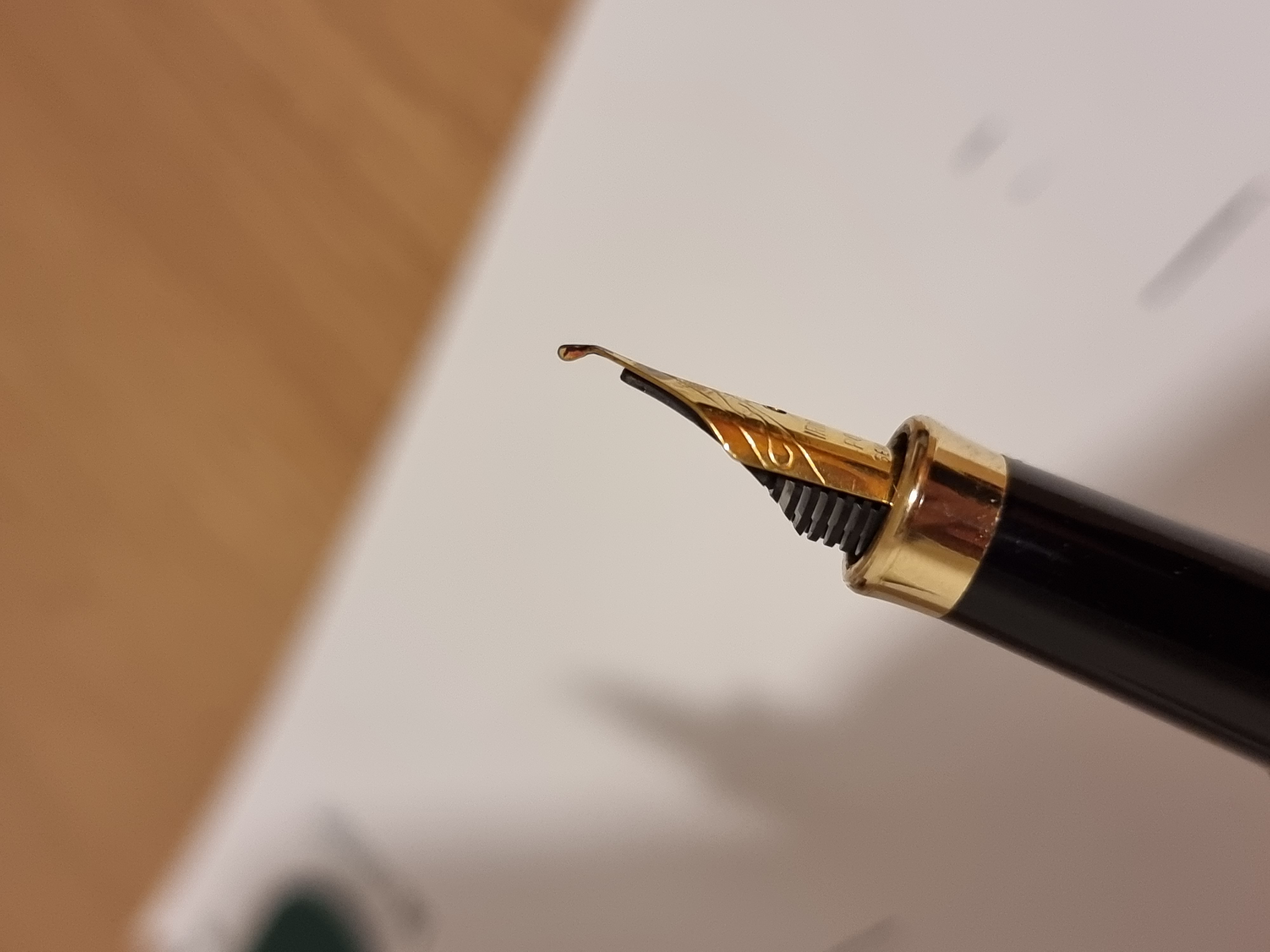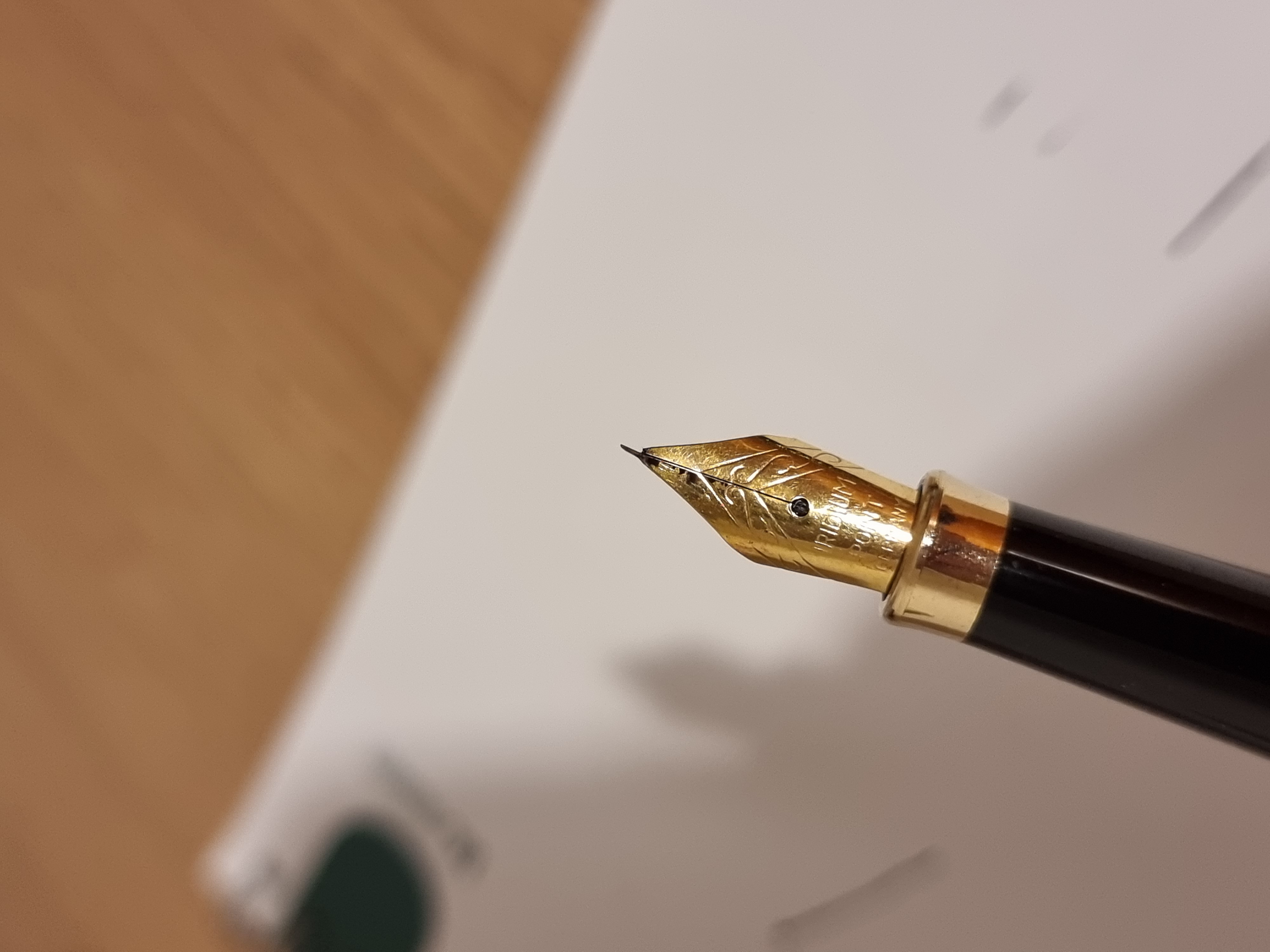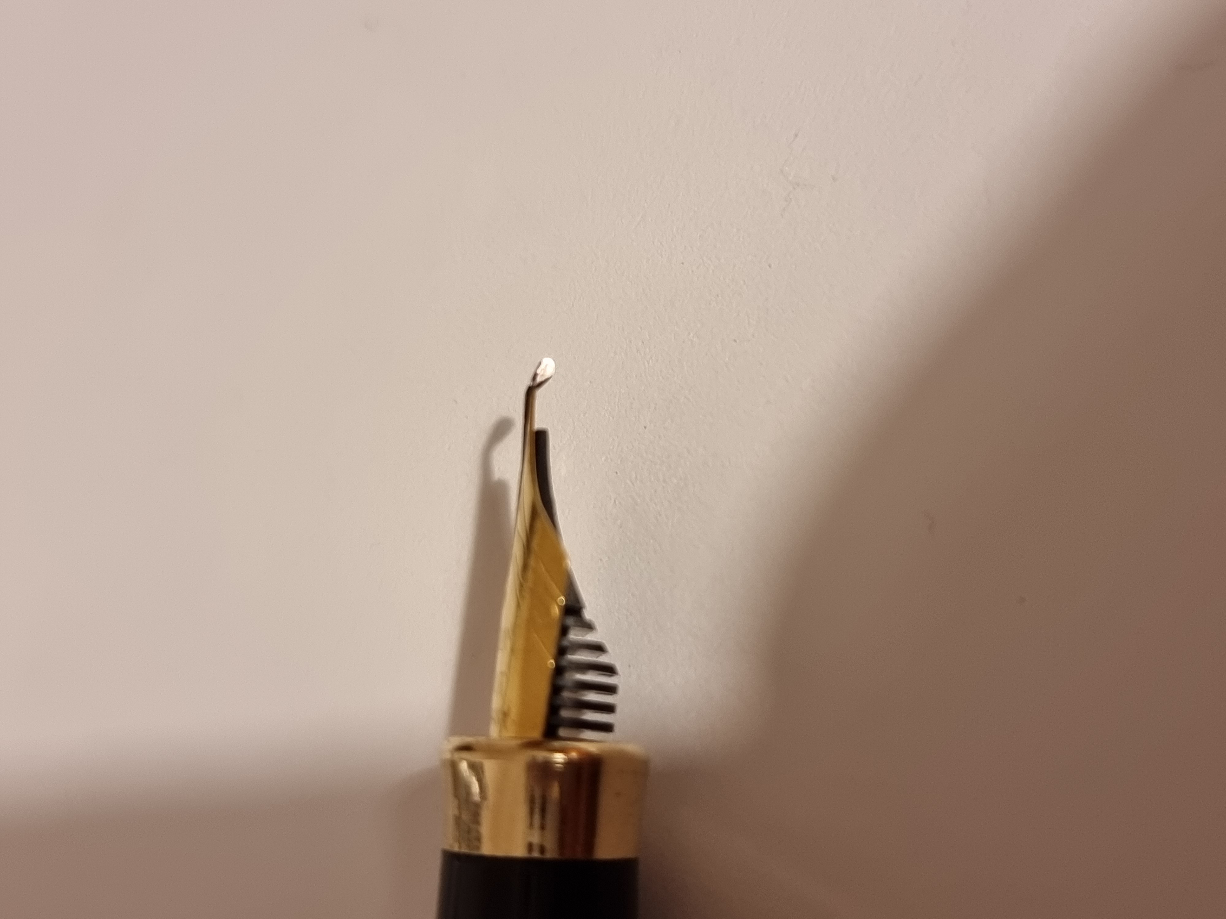Volevo chiedervi se qualcuno sa darmi qualche informazione su questo pennino e se avete qualche suggerimento per farlo funzionare: l'ho lavata (non scrive almeno da una 15ina di anni) e inchiostrata, ma l'inchiostro non sembra giungere all'estremità di questo particolare pennino, però se ruoto la penna facendo toccare sulla carta l'intero pennino l'inchiostro esce...