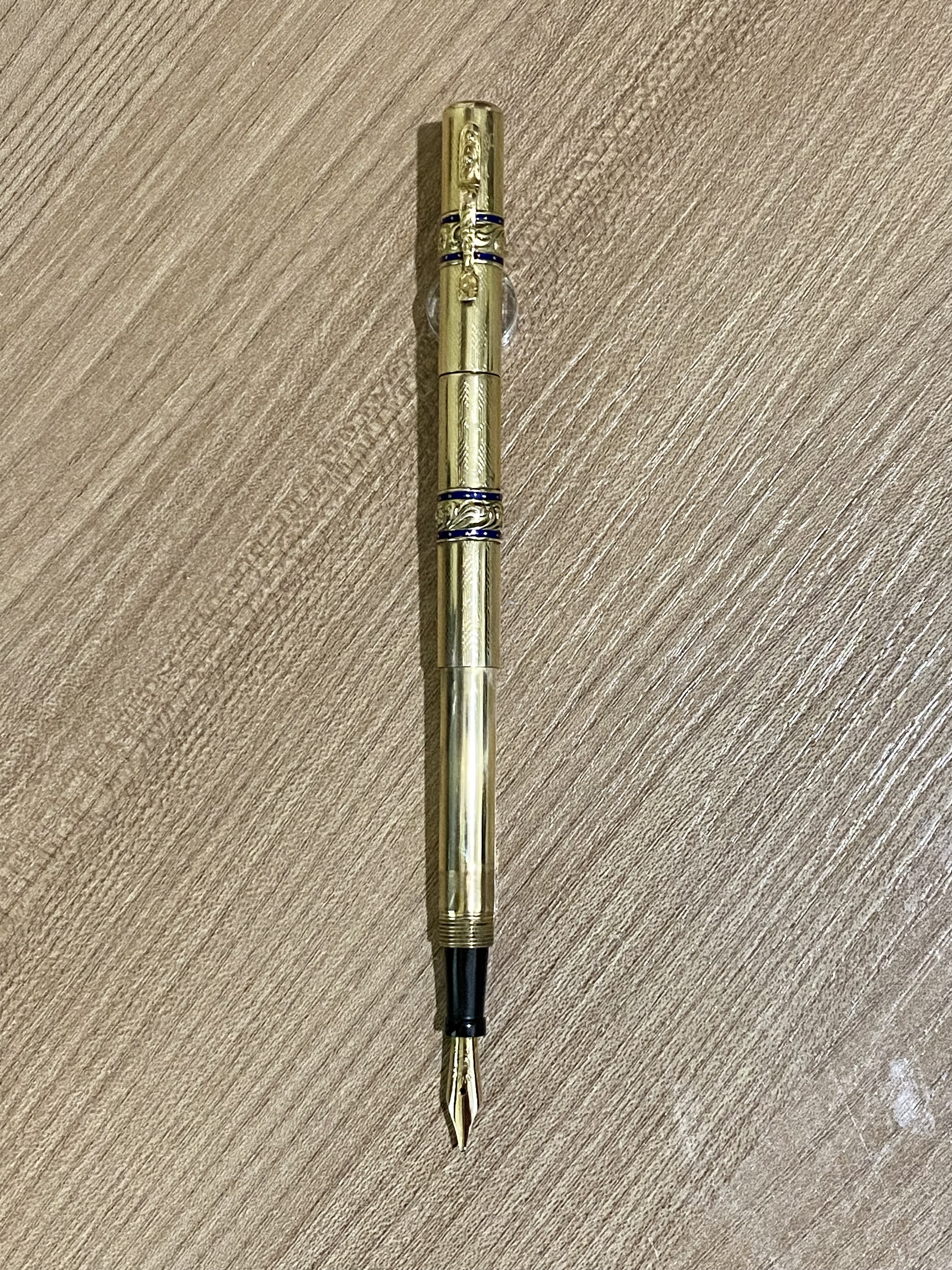 Tuttavia, Kaweco commissionava le laminature inizialmente a Uhlmann’s Eterno e successivamente a Cavaliere. Ma se consideriamo sia il suo periodo di produzione che (soprattutto) la tipica decorazione a smalti e fioriture a sbalzo, si può' ritenere molto verosimile che la laminatura sia stata realizzata Eterno.