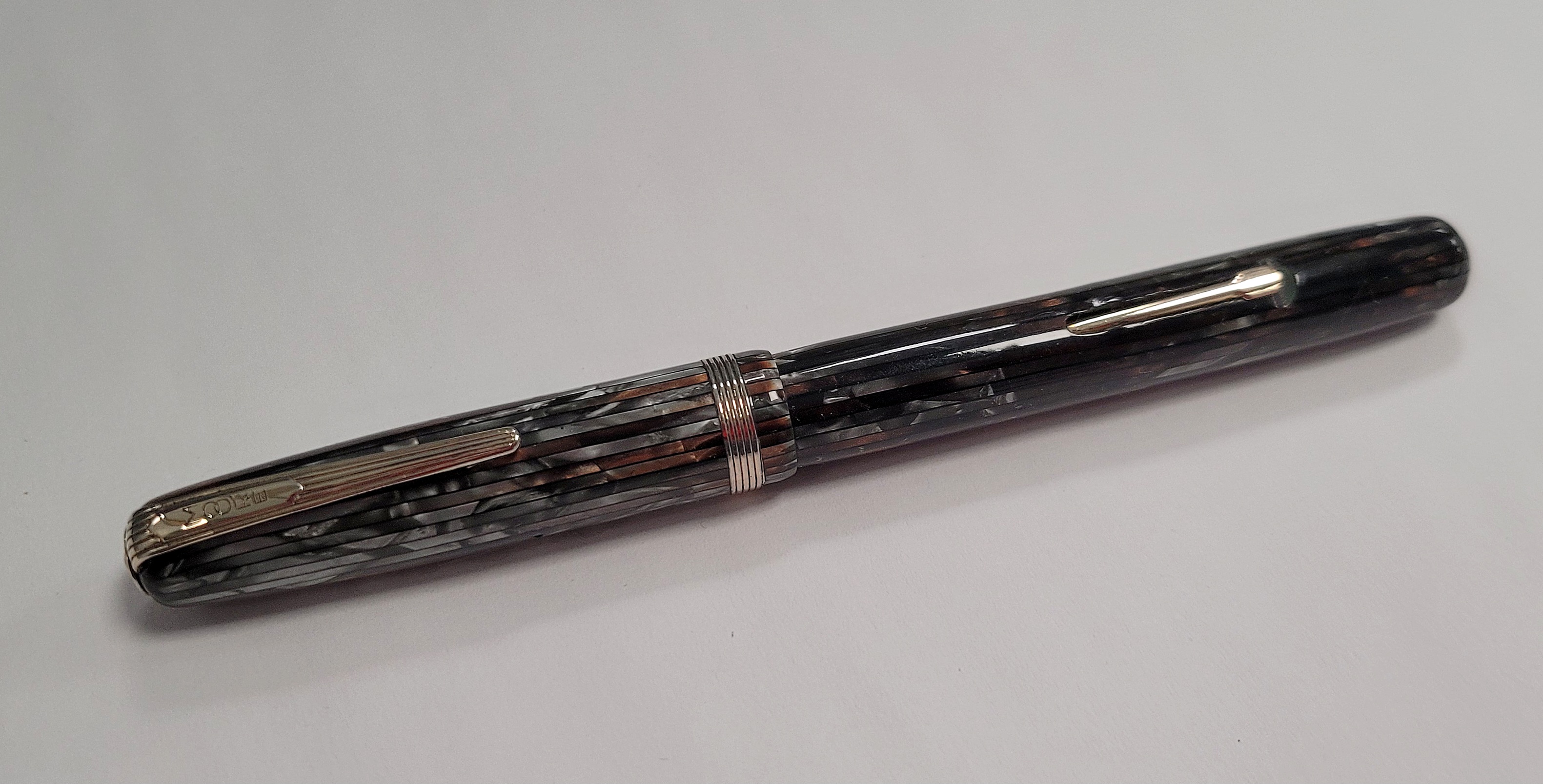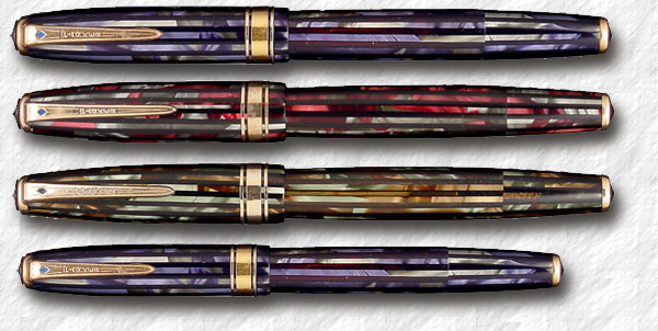 Ma anche la Moore del 1942 aveva senz'altro copiato da Parker lo stile della celluloide a strisce di colori diversi della Duovac (1940).