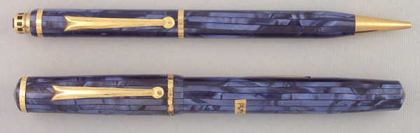 Questo determinato tipo di celluloide sembra essere stata apprezzata all'epoca , qui una serie di penne dell'immediato dopoguerra (il periodo è all'incirca quello della tua)
