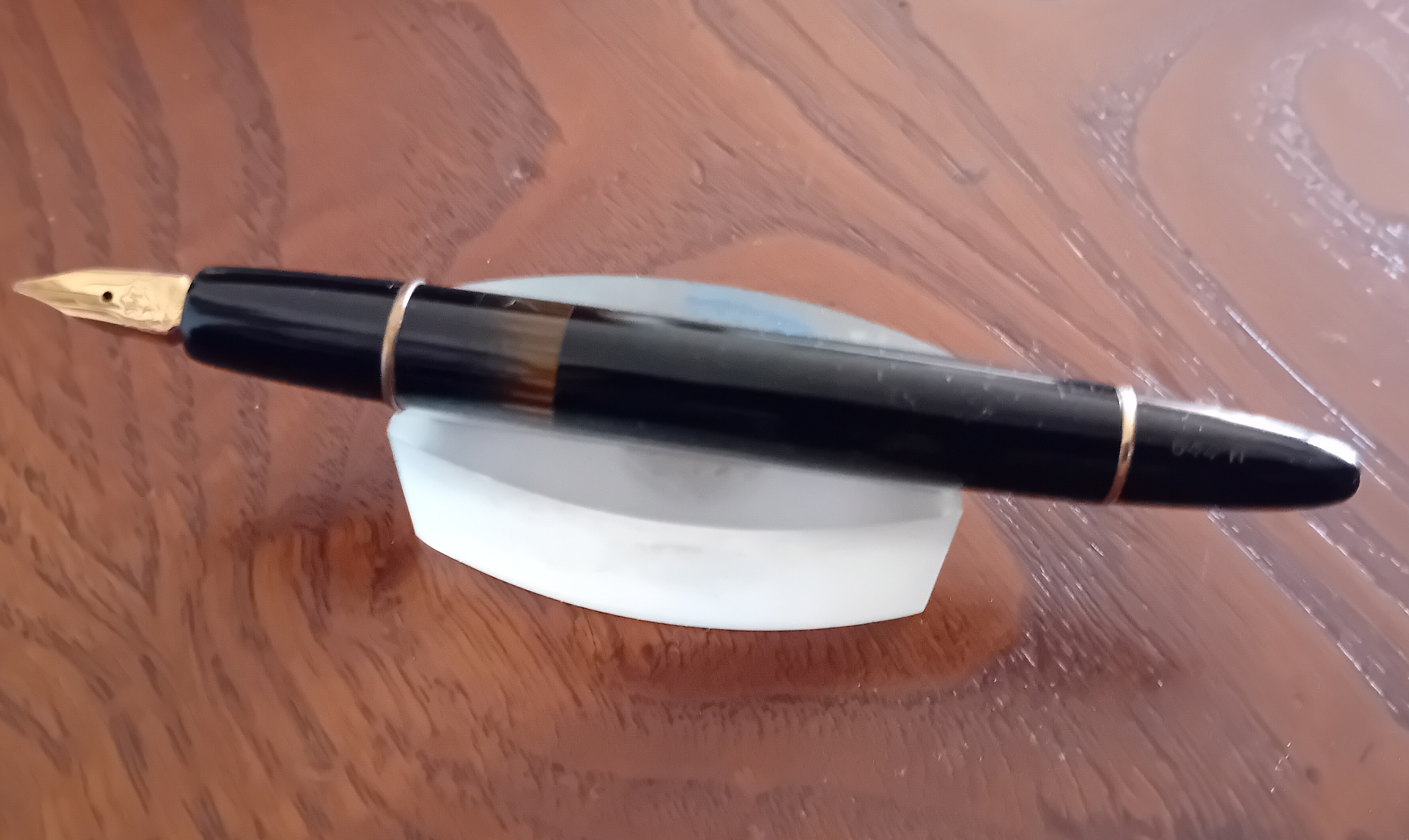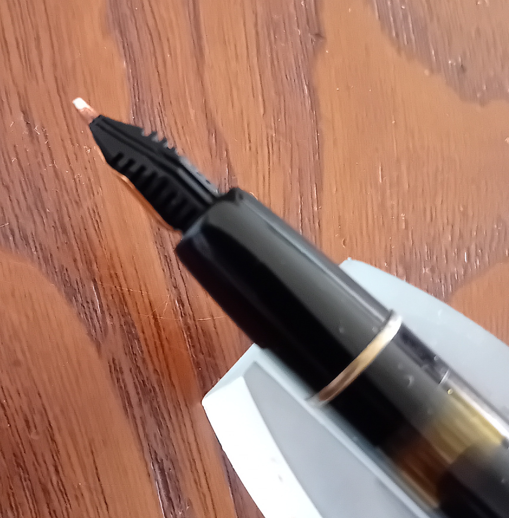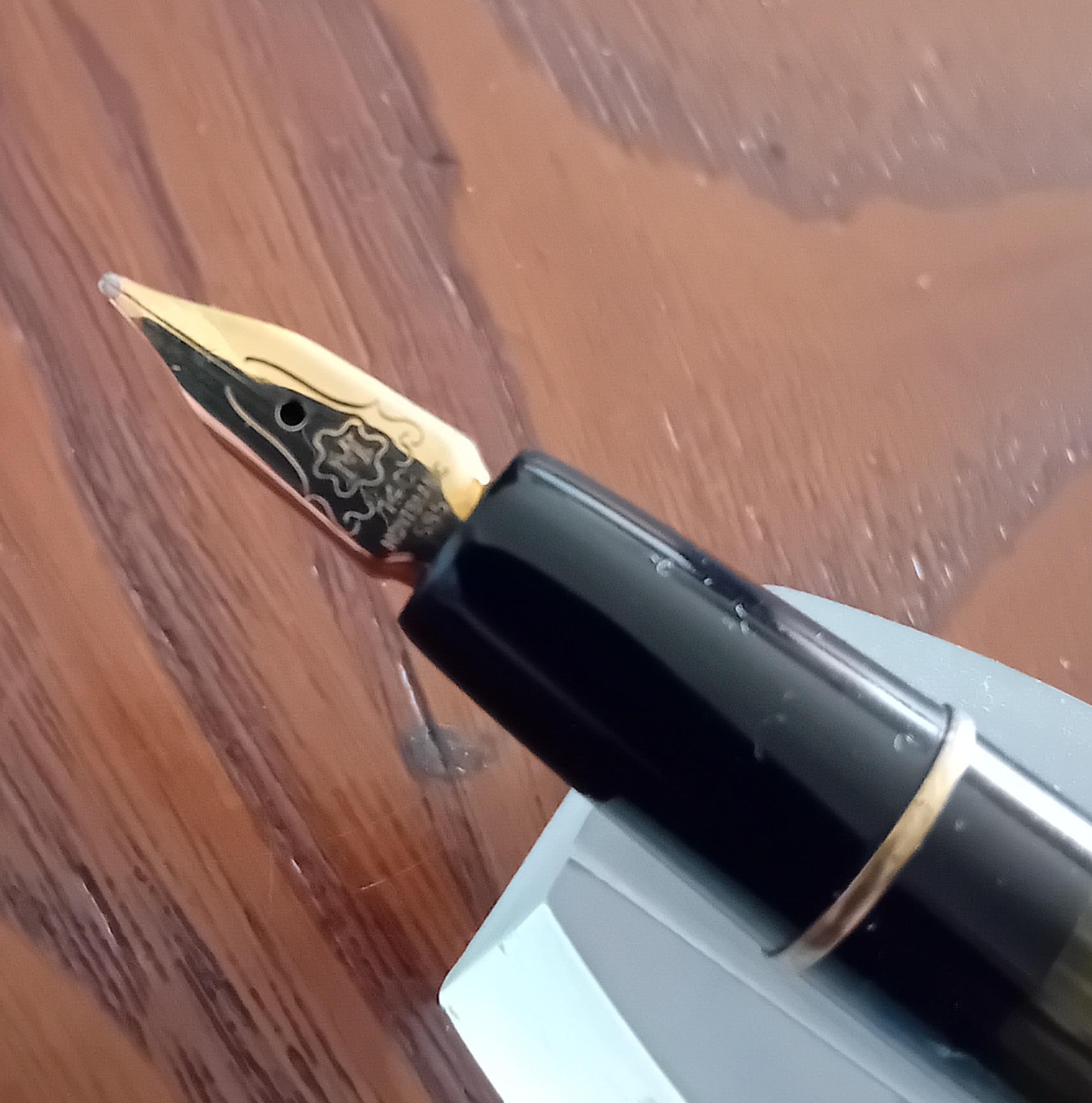 Ancora non caricata, aspetto l'ispirazione.... la cosa notevole è il pennino....broad.... la stilo è in condizioni perfette mentre la matita ha dei graffi sul puntale ma posso conviverci...