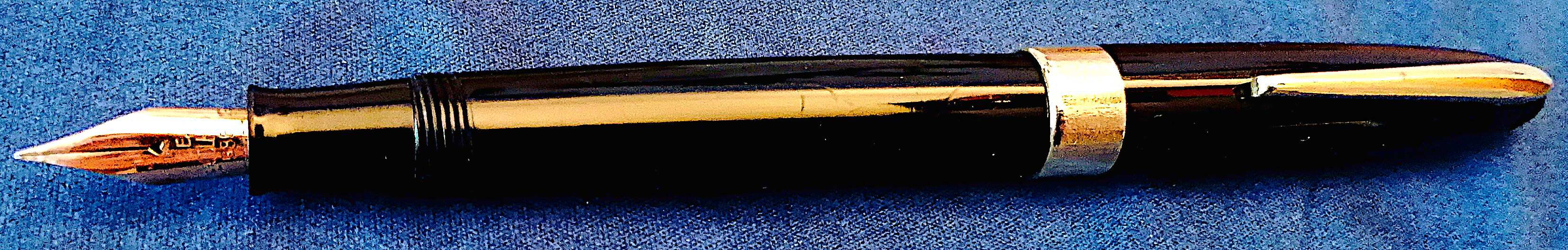 Ringrazio chiunque sia in grado di aiutarmi, la penna per altro, una volta ripulita, tolta la ruggine e cambiato il vecchio sacchetto cristallizzato, scrive anche molto bene con un pennino demiflex. Dimenticavo: misura chiusa 13 cm.
