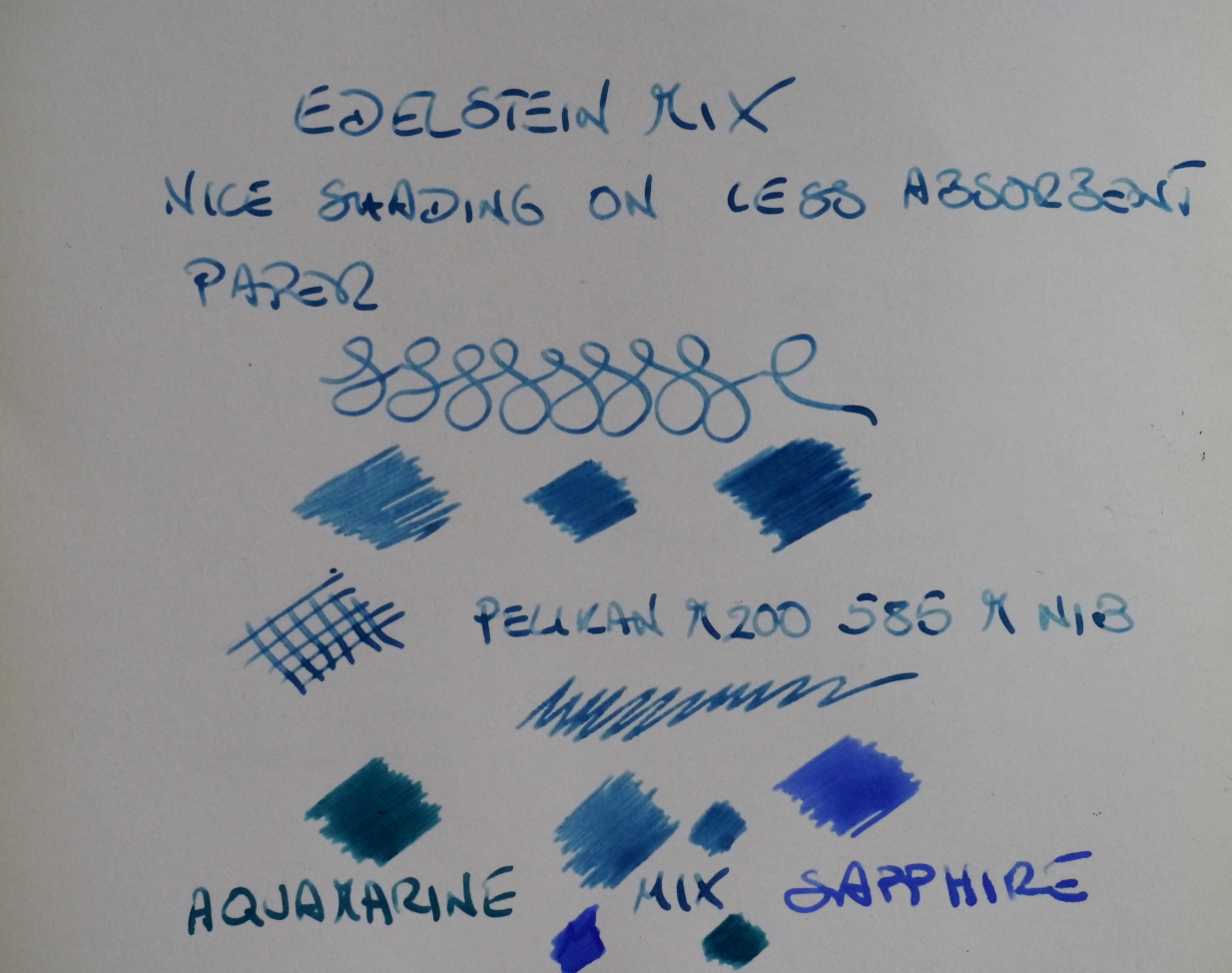 Provato varie carte e varie stilografiche ma la cosa non cambia. Onestamente sono deluso, per fortuna ho comprato solo una confezione ma ci metterò anni a finirlo tanto il colore è brutto. Tutt'altra cosa invece per l'edelstein topazio. Che gran bel colore.