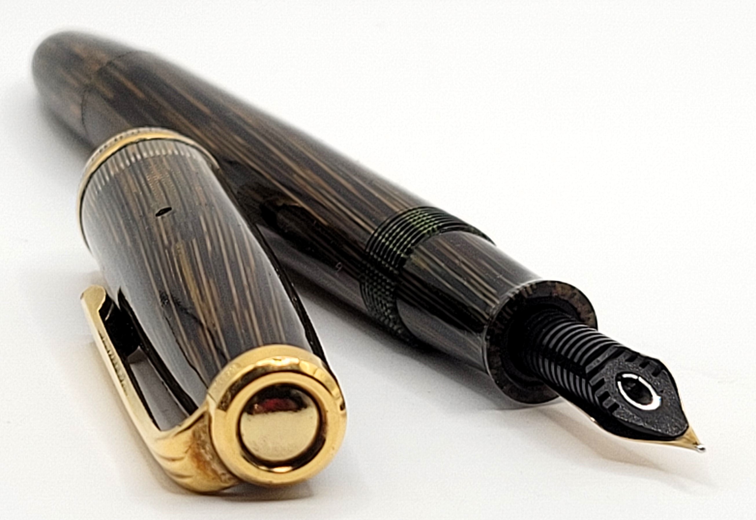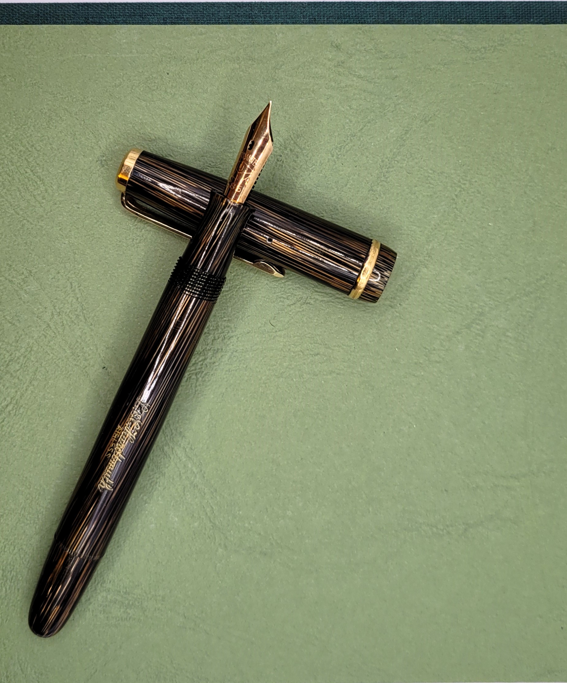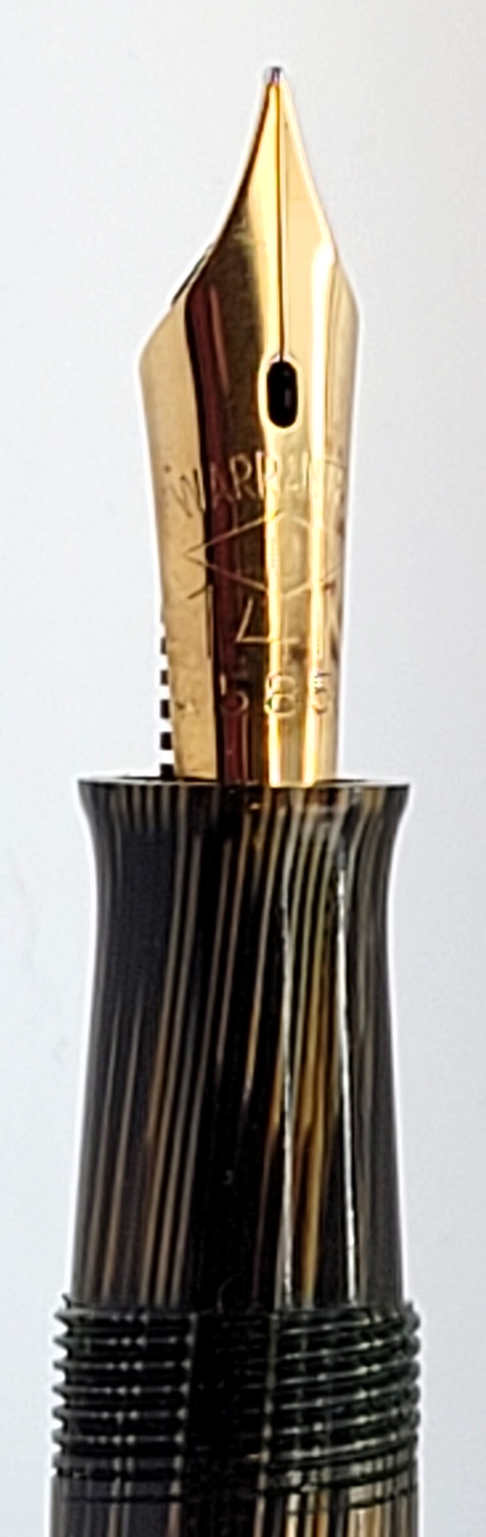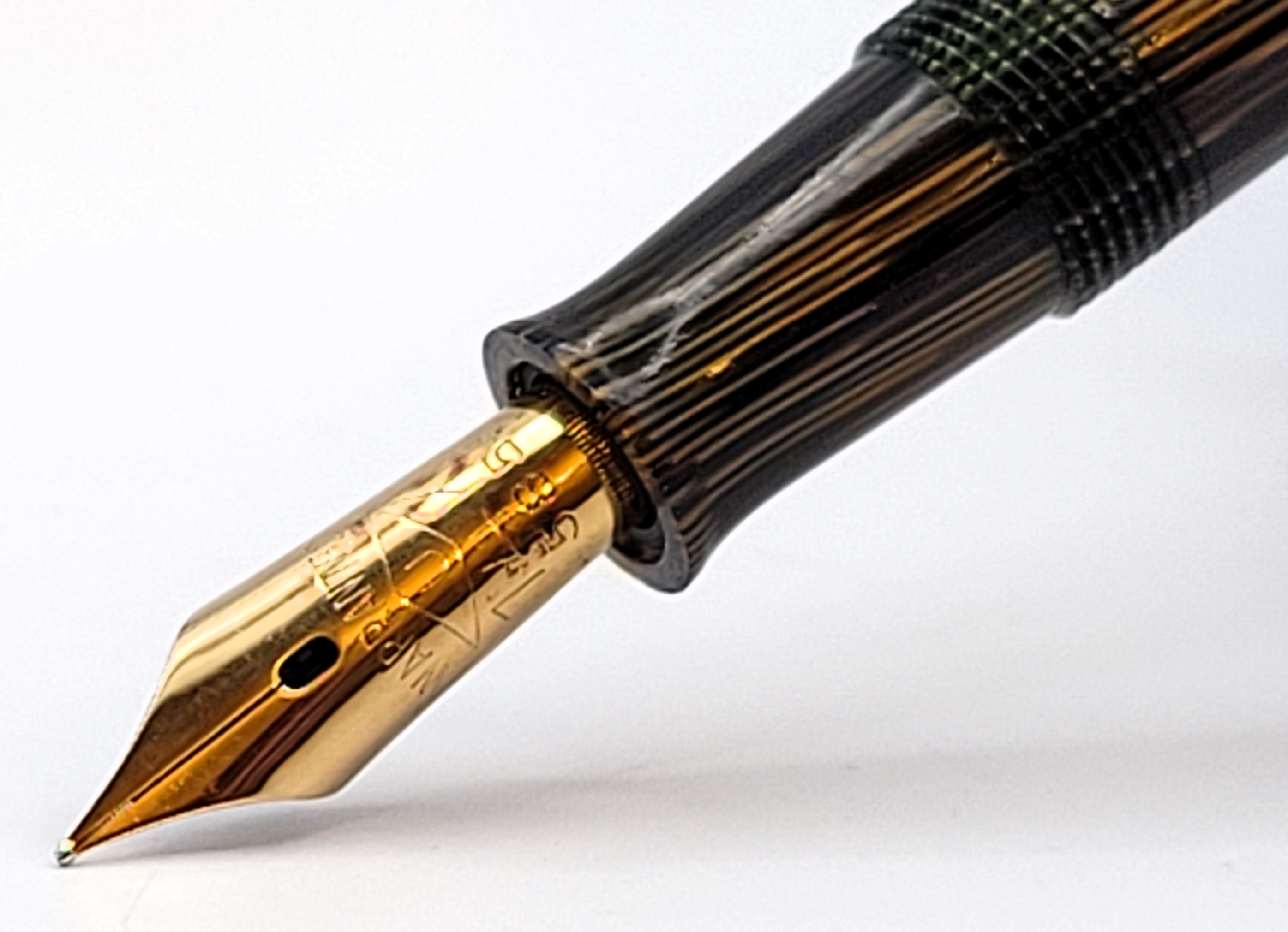 In mano è comoda e piacevole da usare nonostante sia abbastanza fine. Il pennino in oro 14 kt lo trovo proporzionato alle dimensioni della penna, reca l’incisione WARRANTED ed ha una “U” racchiusa in un rombo (richiama un diamante??) ha il foro di sfiato di forma ovale che trovo molto bello.