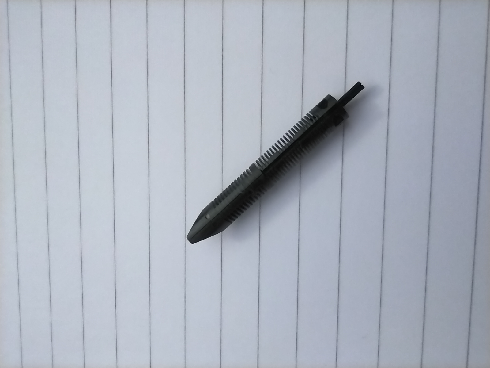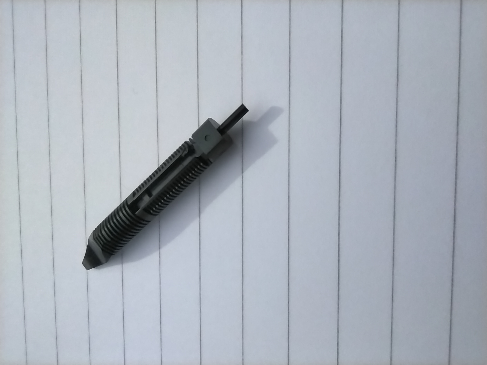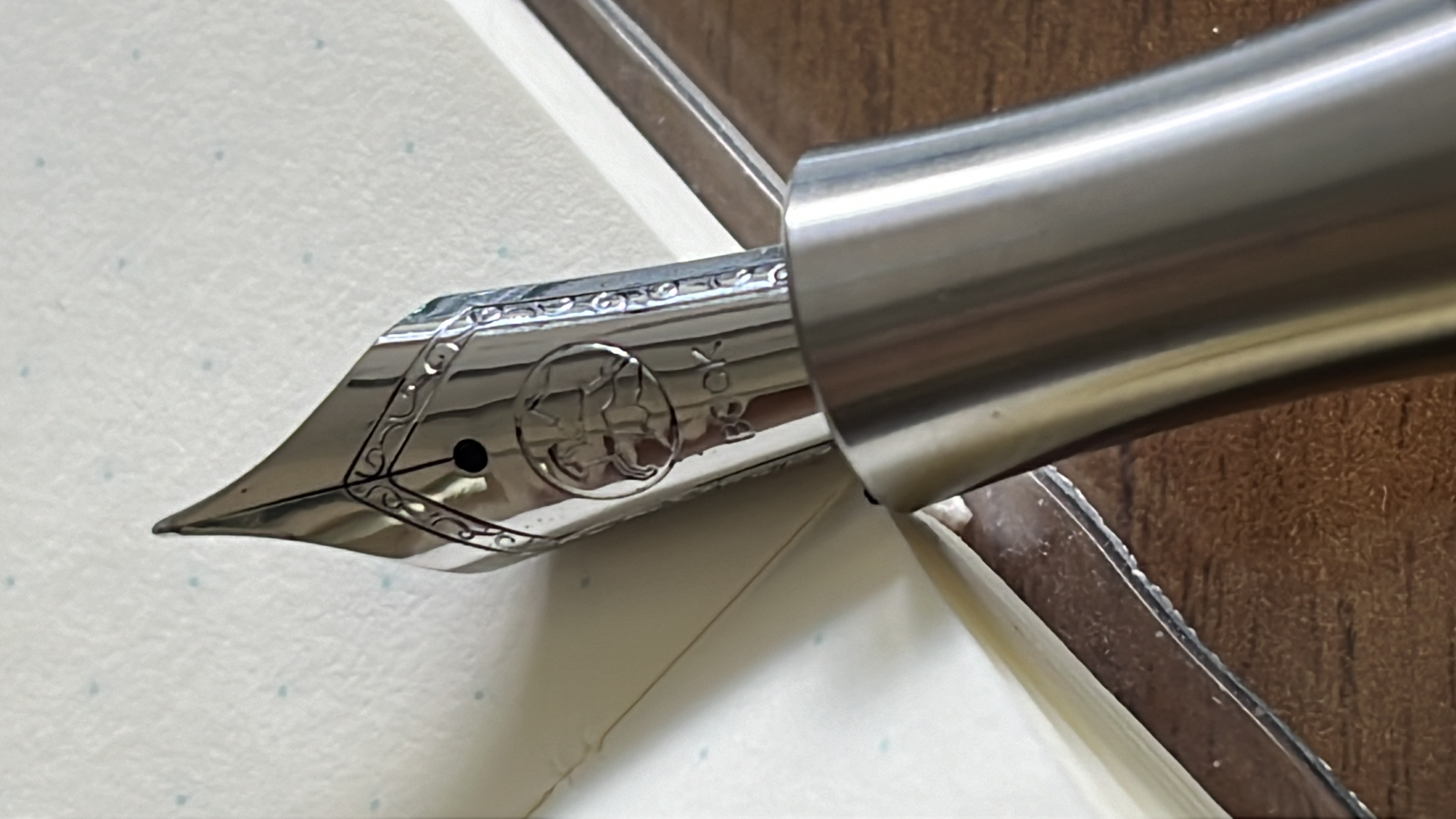 L’ho provata immediatamente con inchiostro Waterman con buoni risultati: il pennino è un EF europeo forse solo un po’ troppo secco (ma voglio provarlo con altri inchiostri), la penna è ben bilanciata (ma il tappo non calza posteriormente), e la sezione in titanio non è scivolosa.