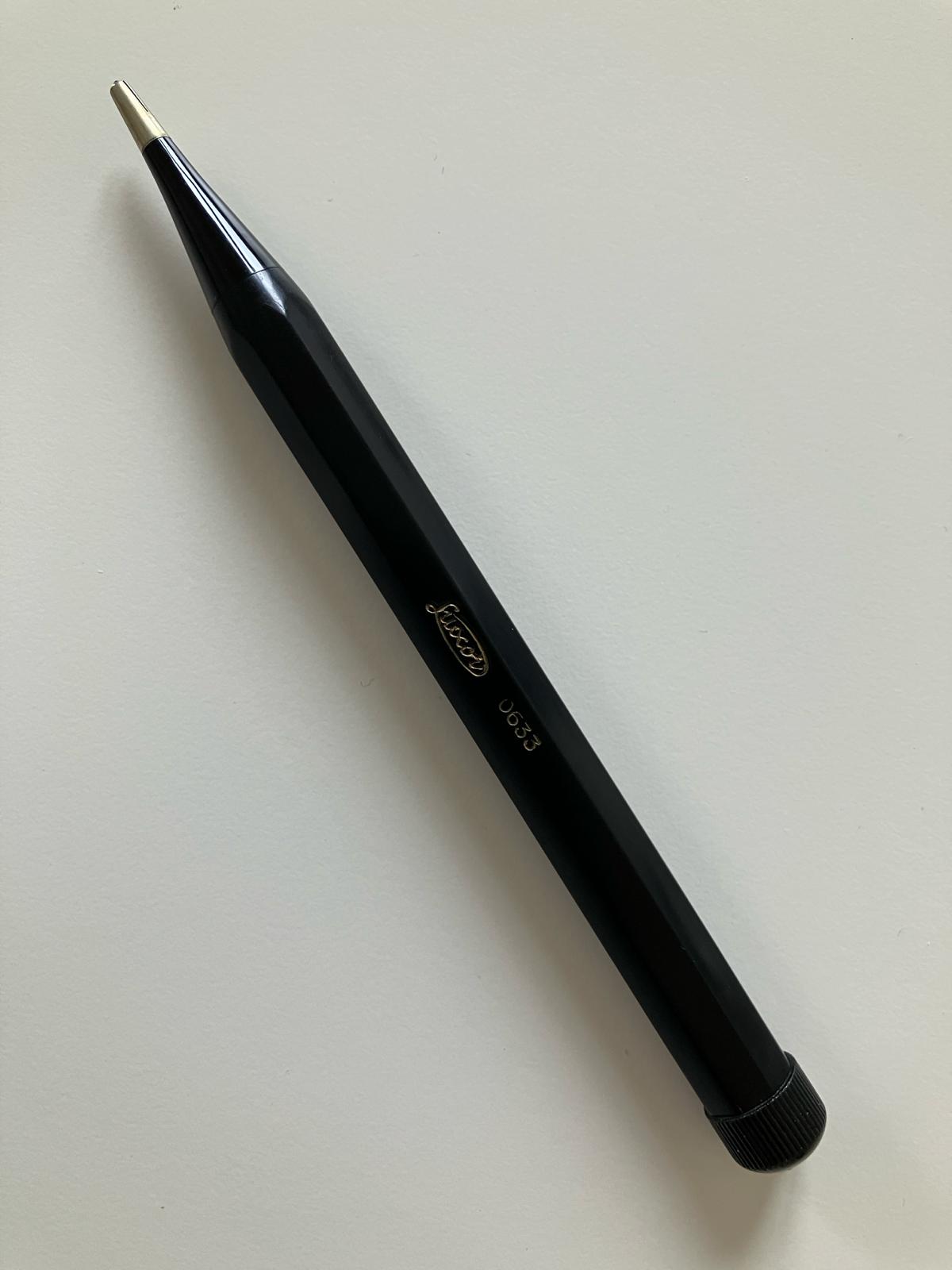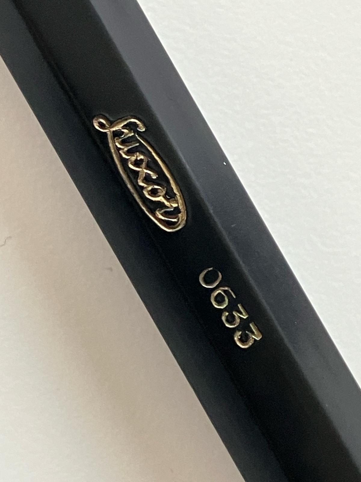 Eccola, Luxor 0633, è setosa al tatto, non riesco a capire bene di che materiale sia, potrebbe essere celluloide.