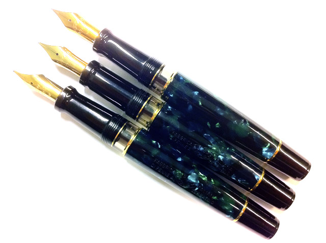 Per quello che ne so, la nuova produzione di resina stabile e marmorizzata per le Optima, con il nuovo pennino e la nuova sezione, era in blu, verde e burgundy, inizialmente.