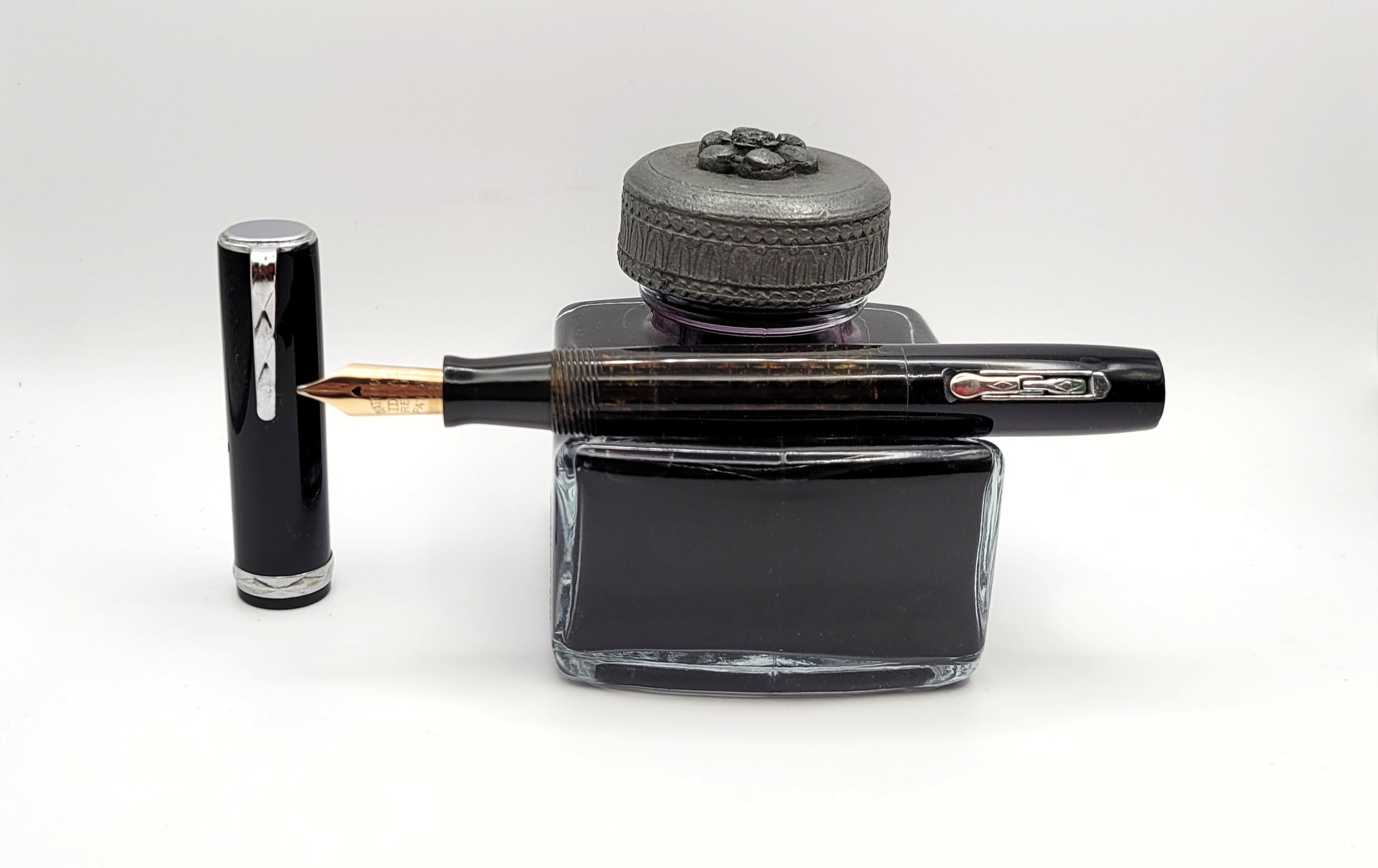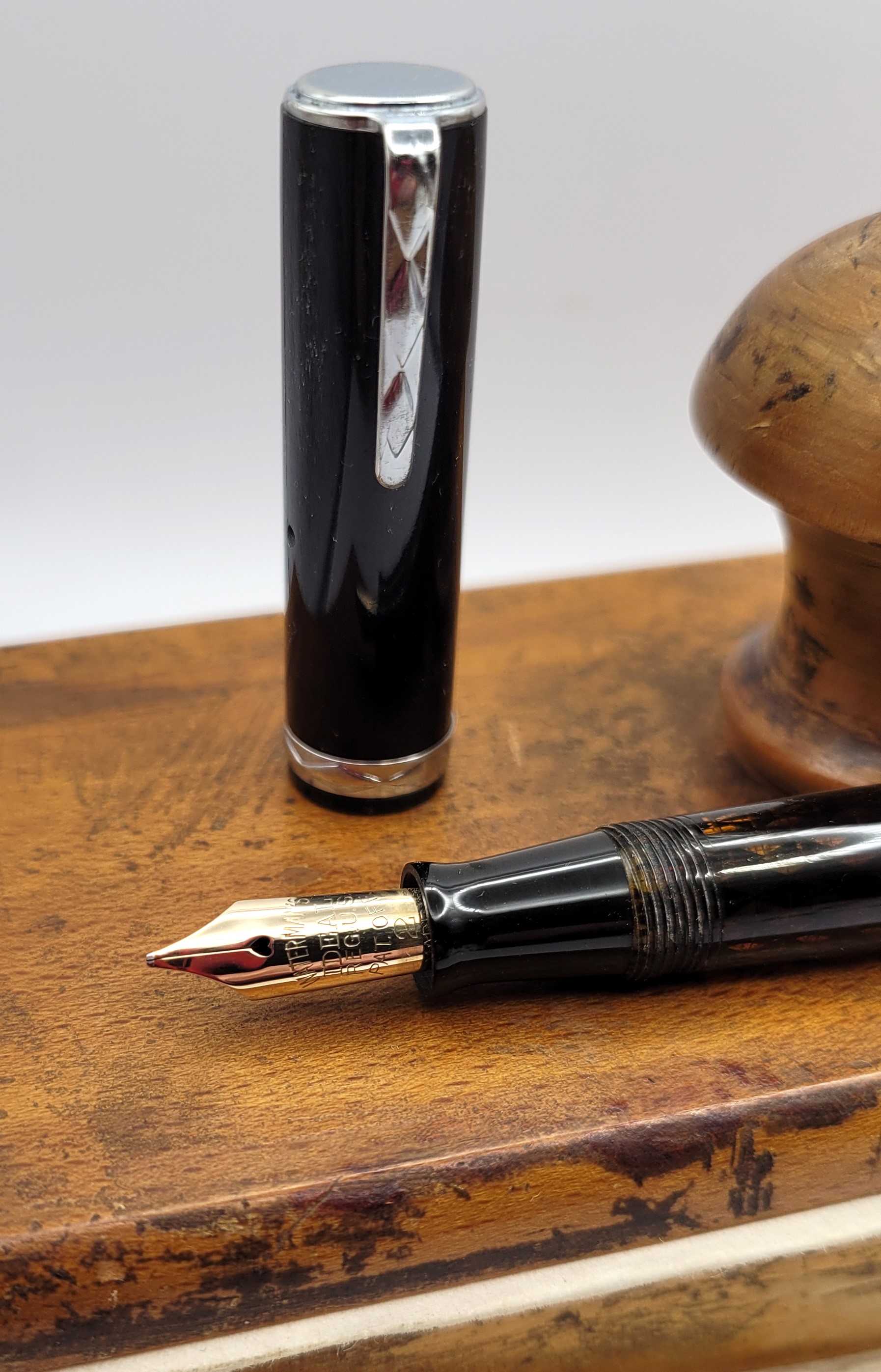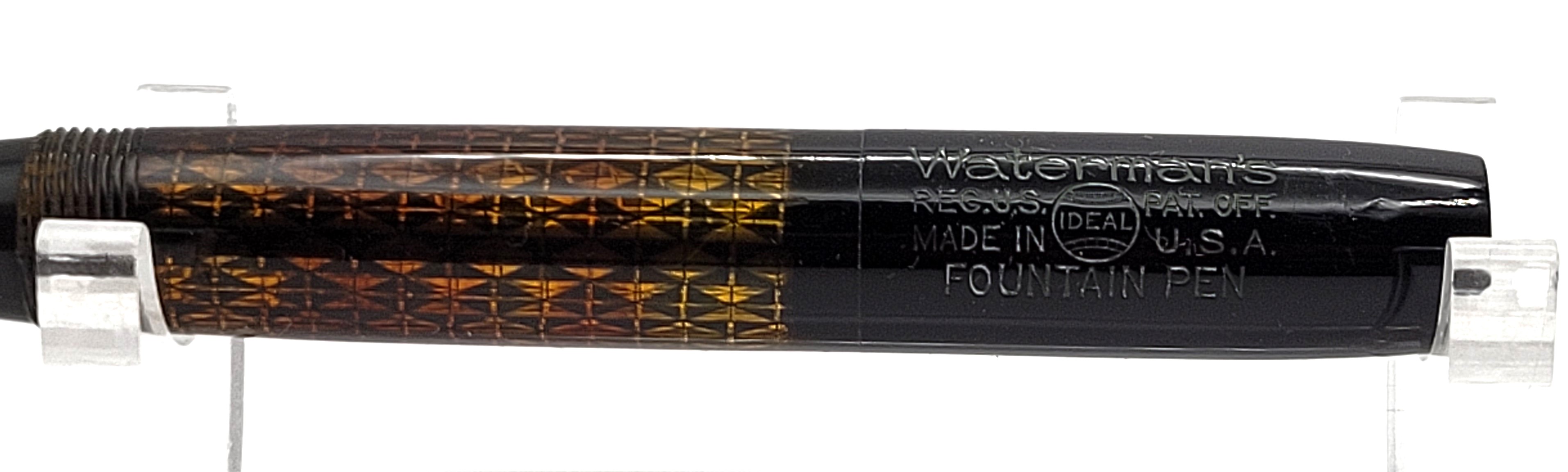 La penna ha il corpo e camera d'inchiostro color ambra semitrasparente con dei motivi geometrici neri in perfetto stile art-déco. Probabilmente in origine questa "finestra d'ispezione" che occupa tutto il corpo centrale era completamente trasparente e doveva essere uno spettacolo da vedere, oggi il materiale è stato opacizzato dall'uso, dal tempo e dall'inchiostro ed è virato ad un color ambra ma conserva ancora una certa trasparenza ed il suo aspetto sorprendente.