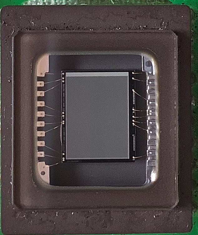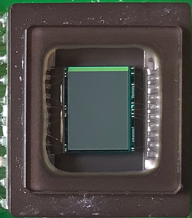 Sensore in bianco/nero - si nota, a differenza del sensore a colori, la mancanza del polimetro con il filtro per colori.