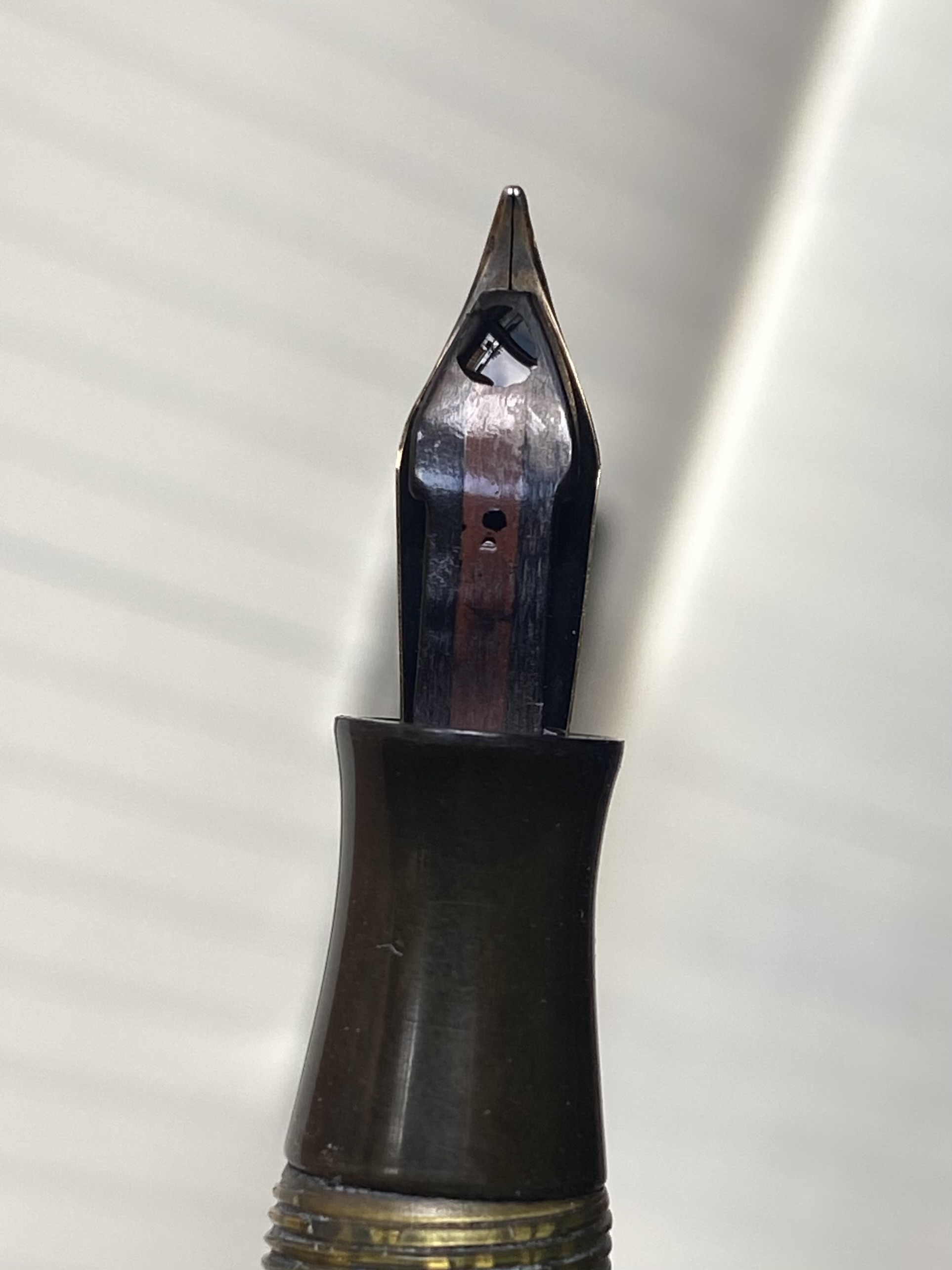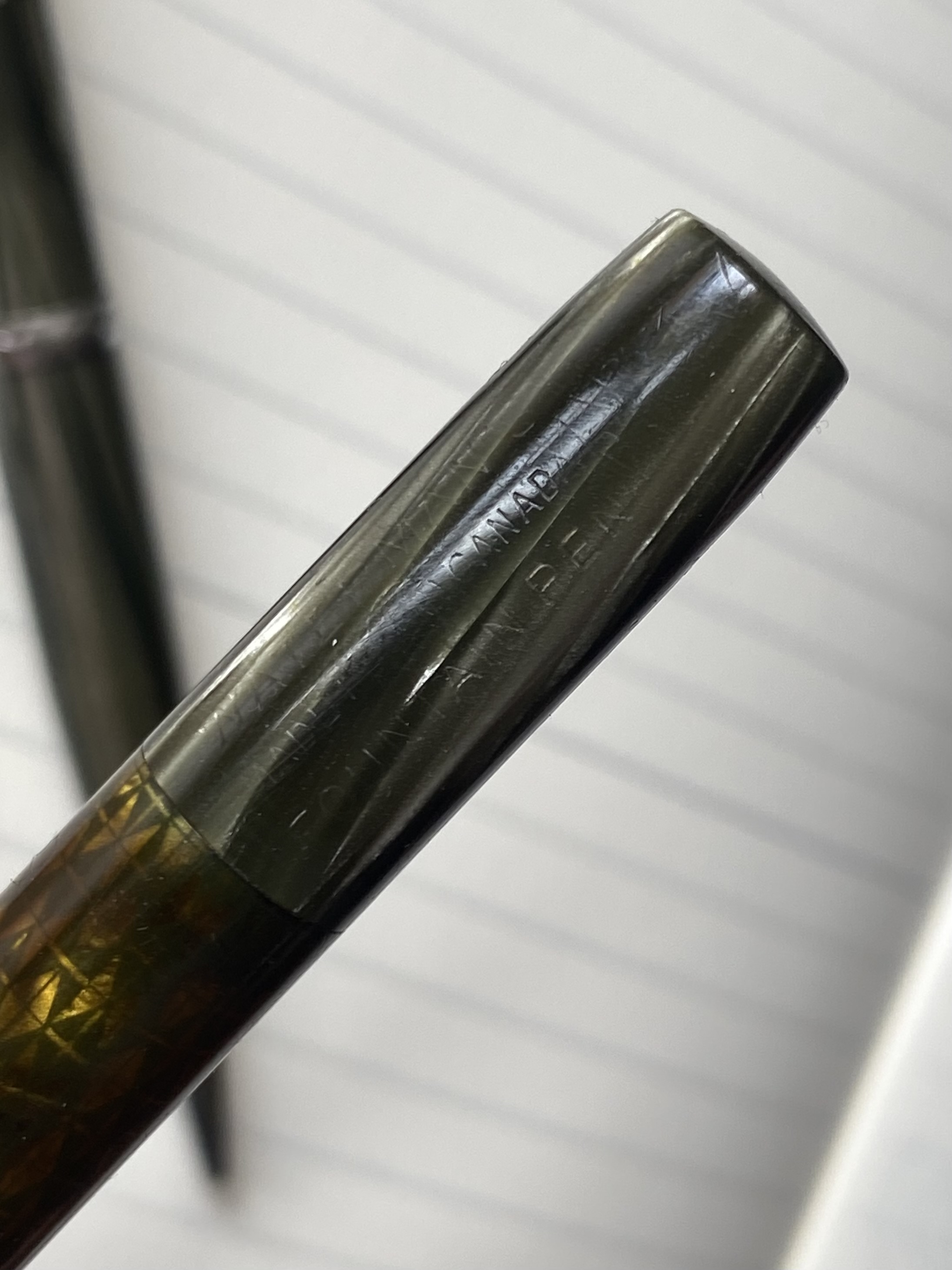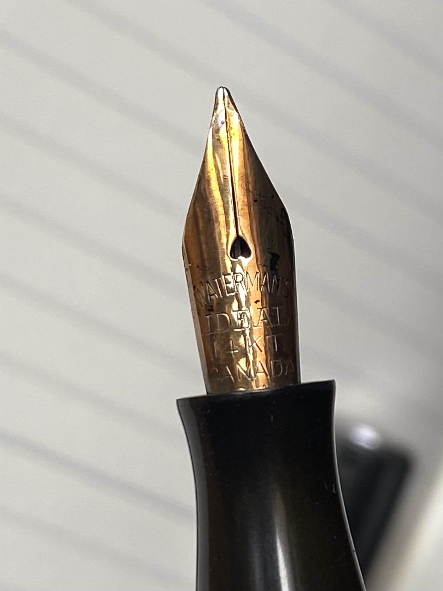 La qui presente è ‘made in canada’ come si evince da incisione sul pennino e sul fondello del fusto, nel quale è alloggiato il meccanismo della levetta snodata per il riempimento.