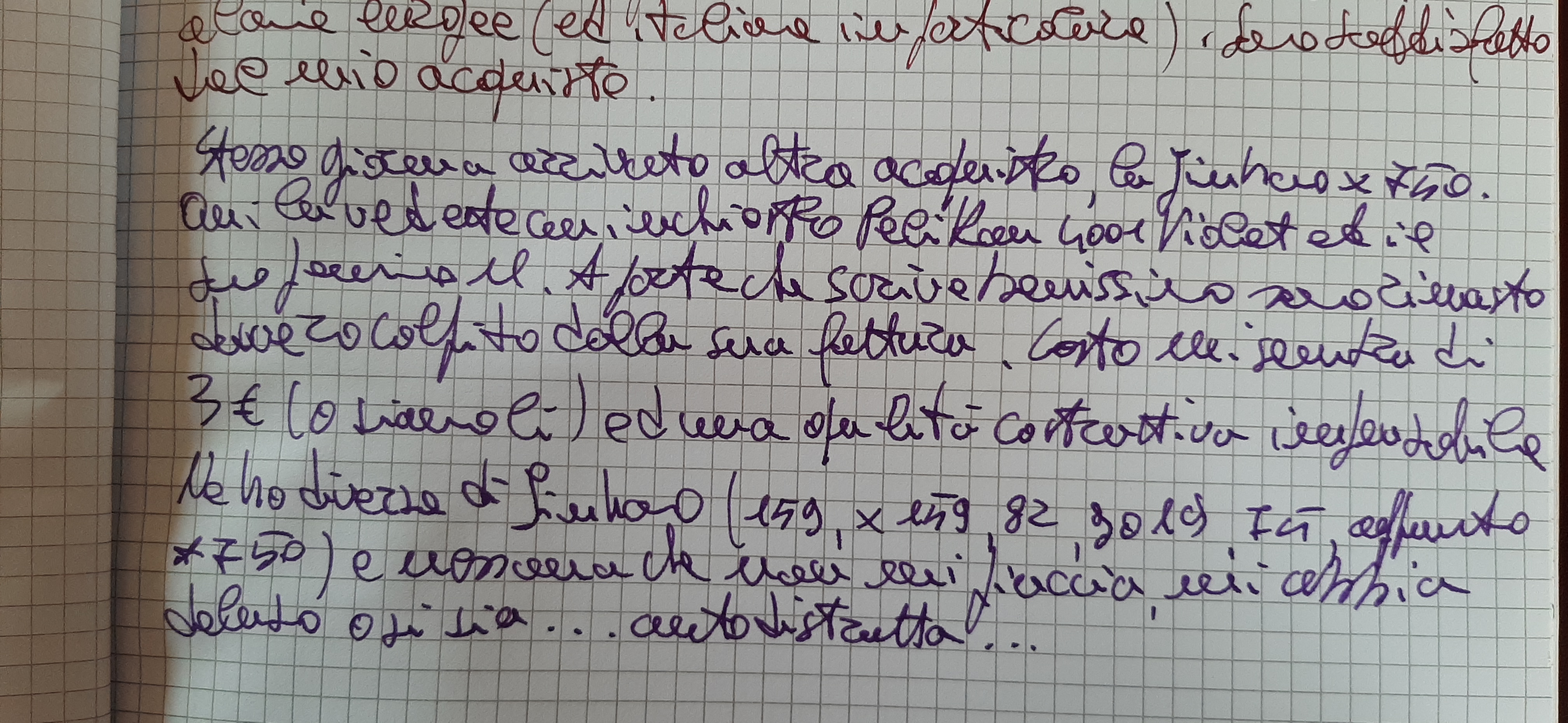 non si può, una extra extra fine, la 750 il contrario, una fontana. Ed io amo i tratti fini ma non finissimi. Stessa cosa con le due jinhao 159x,una stitica, l’altra esagerata. L’unica che si salva e la tengo ancora tra le mie preferite é il clone della parker 51, la 51a, che ha un tratto perfetto, l’ho dovuta incollare perché la ghiera del tappo si staccava, ma ora è perfetta. Non credo comunque che comprerò mai più cinesate