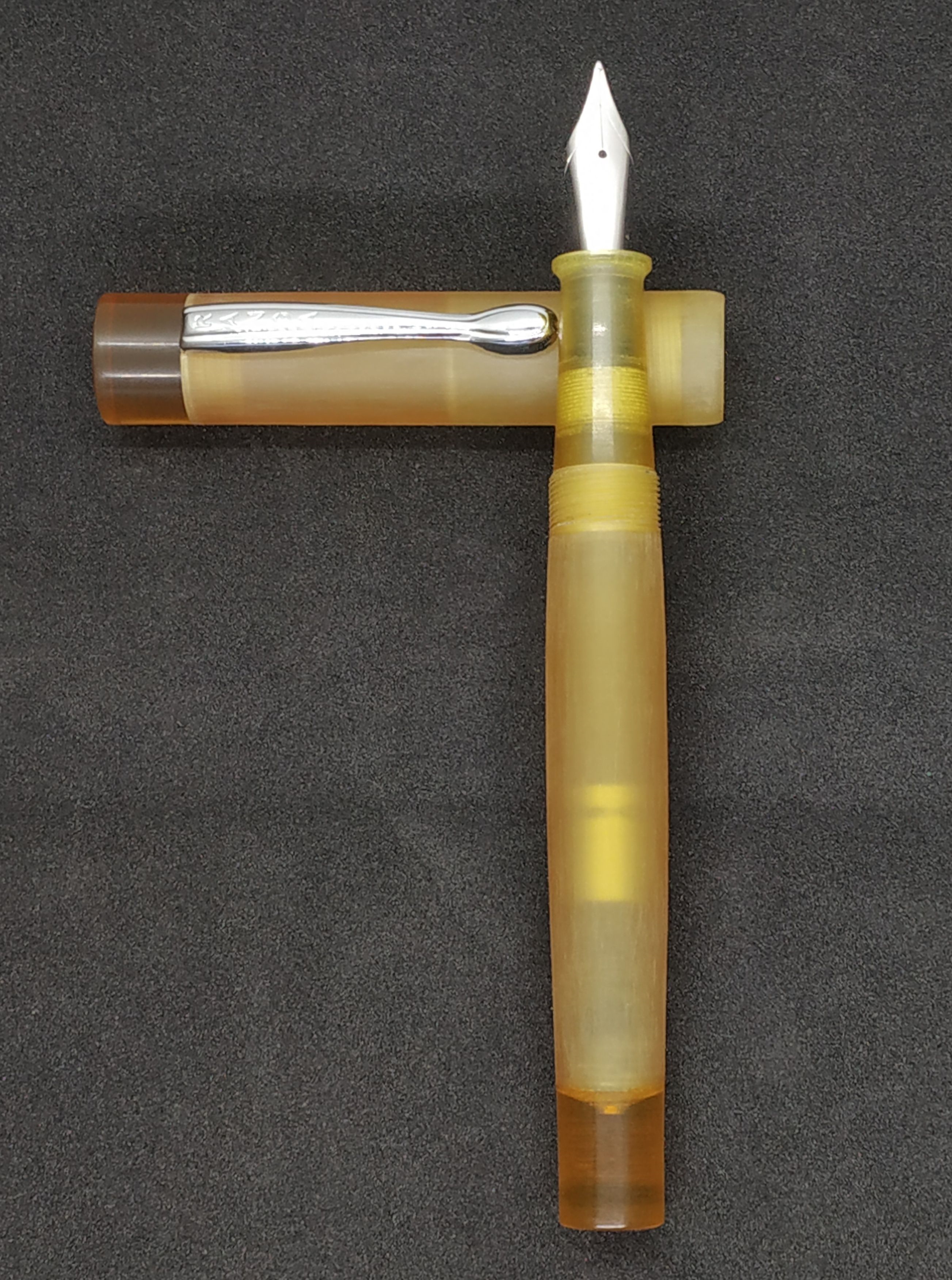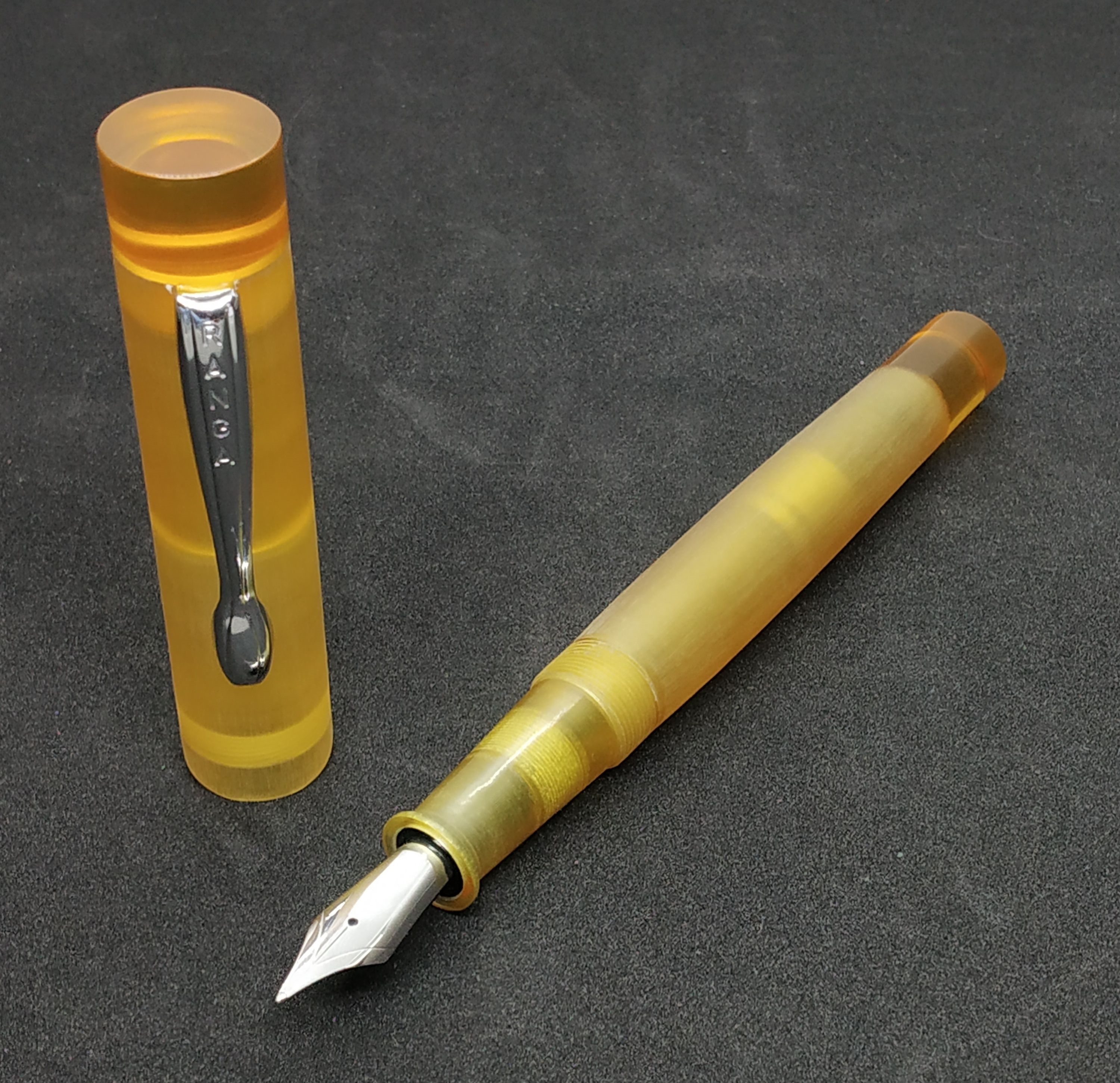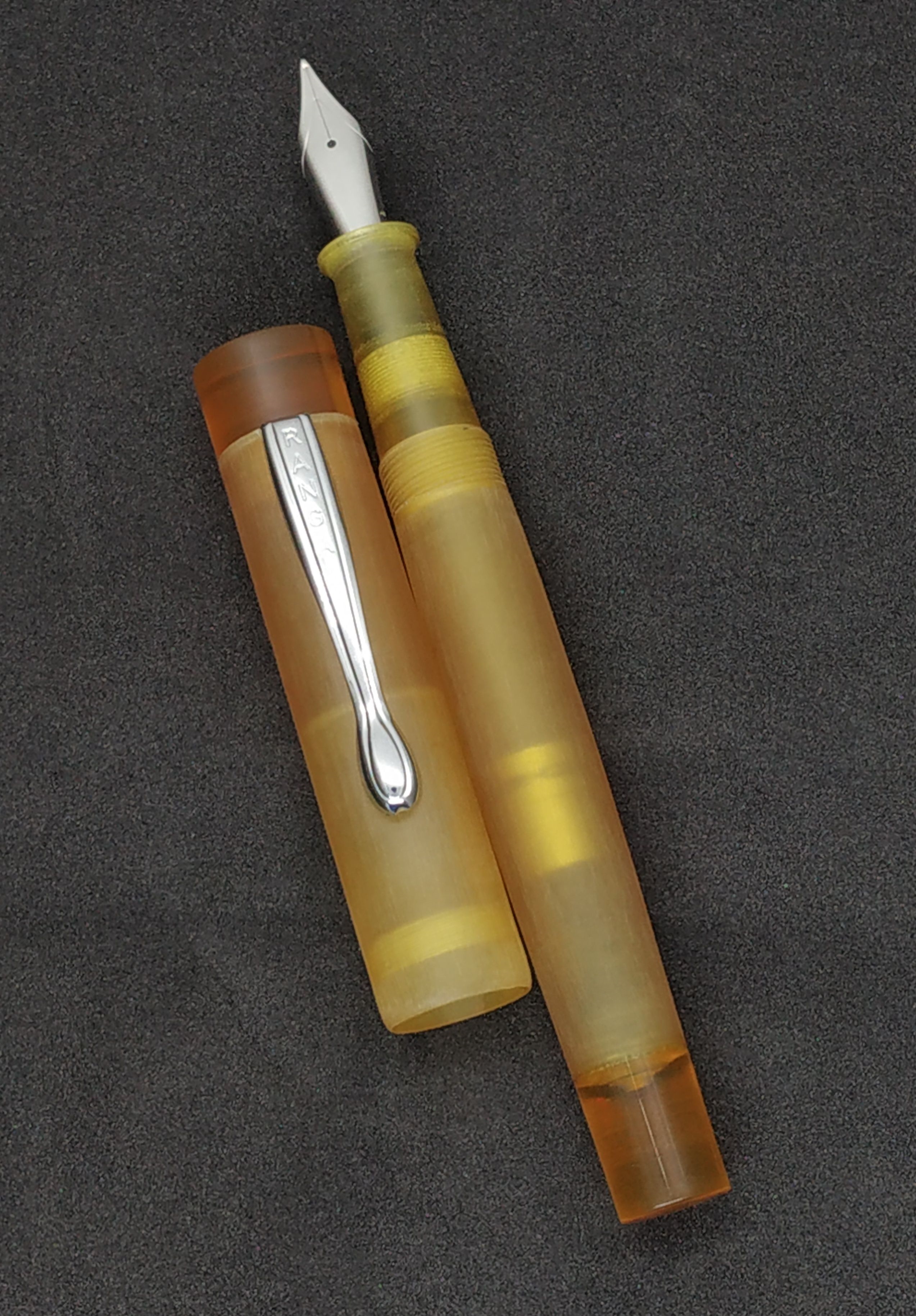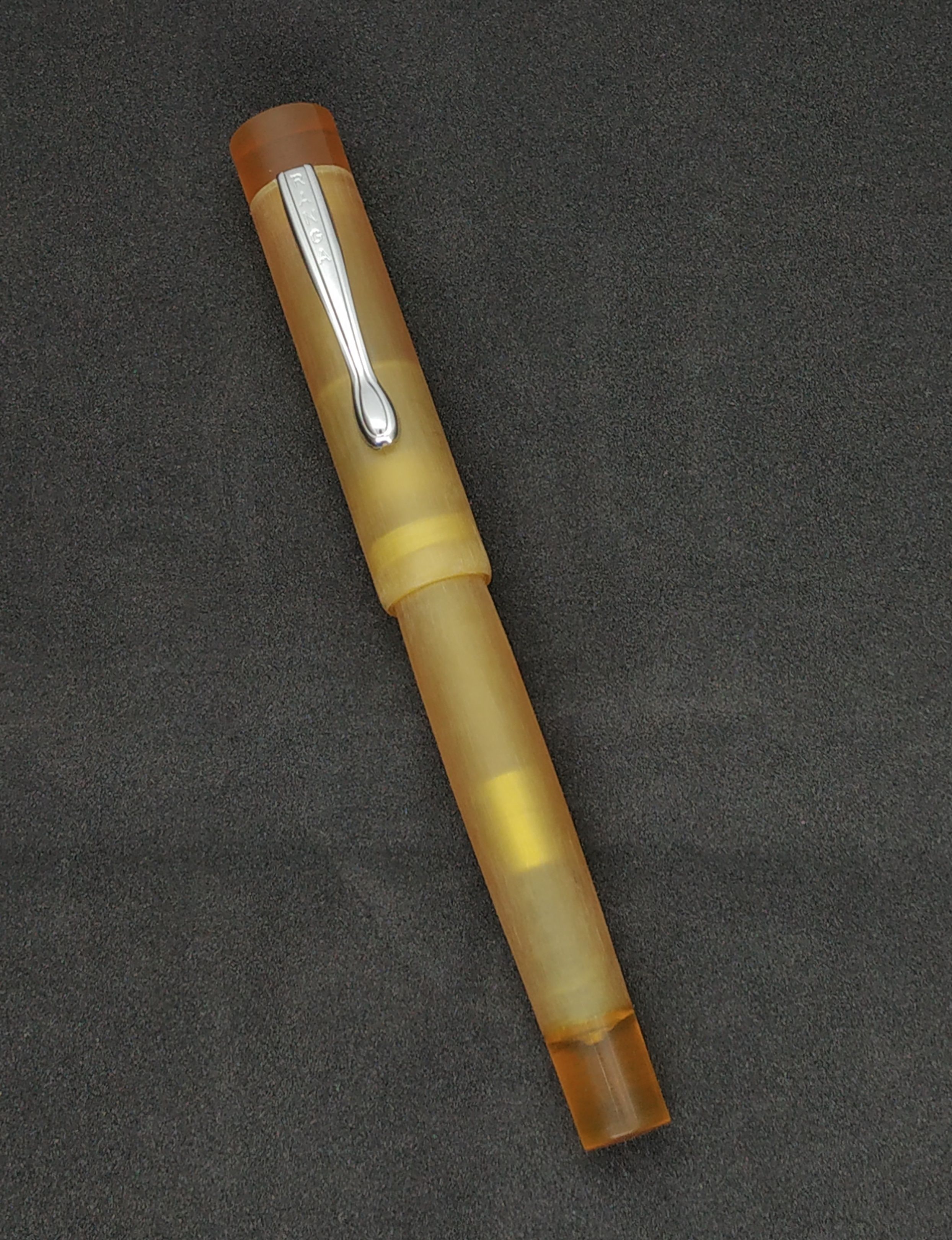 Ho notato che i puntali sono spesso lucidati - lo sono anche nella mia che è una ENSSO, ma forse è perchè sono pezzi interi e non cavi? Come si vede dalla foto, anche l'effetto trasparenza cambia a seconda di come viene lavorato il materiale. Personalmente trovo l'effetto della Ranga un poco più piacevole, anche perchè demonstrator lo amo poco.