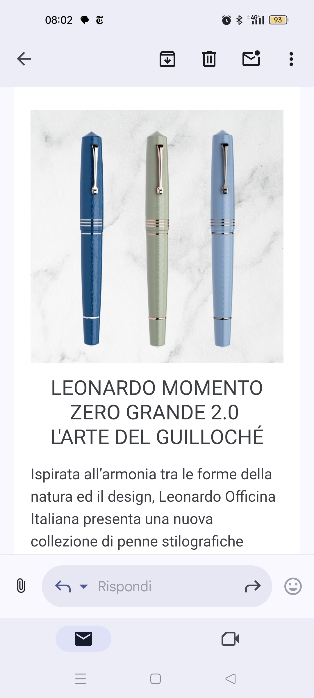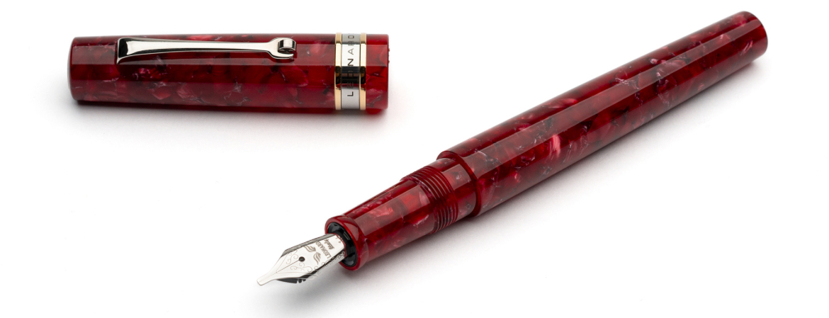 "La penna stilografica è disponibile in tre colori, ciascuno dei quali presenta una particolare trama decorativa: